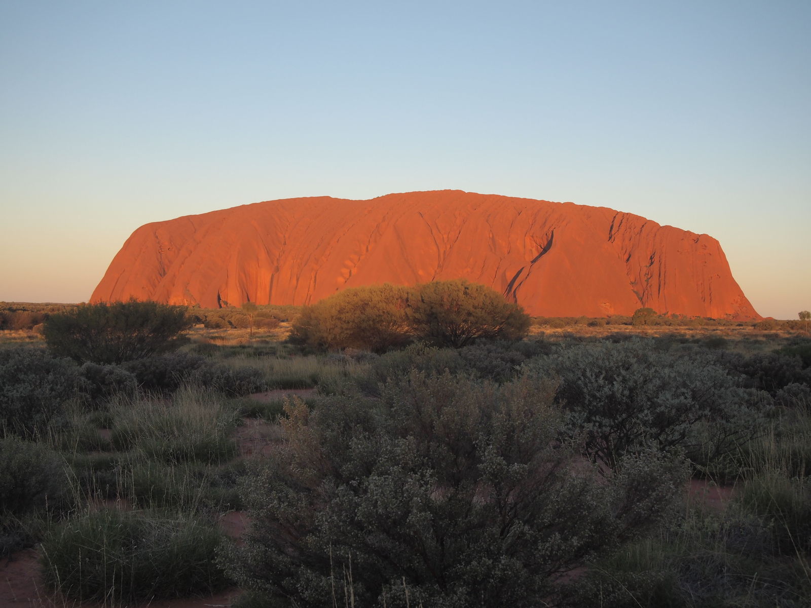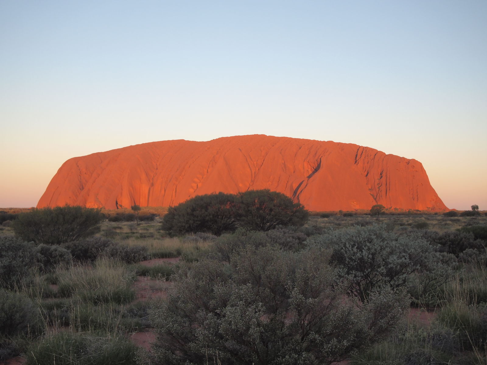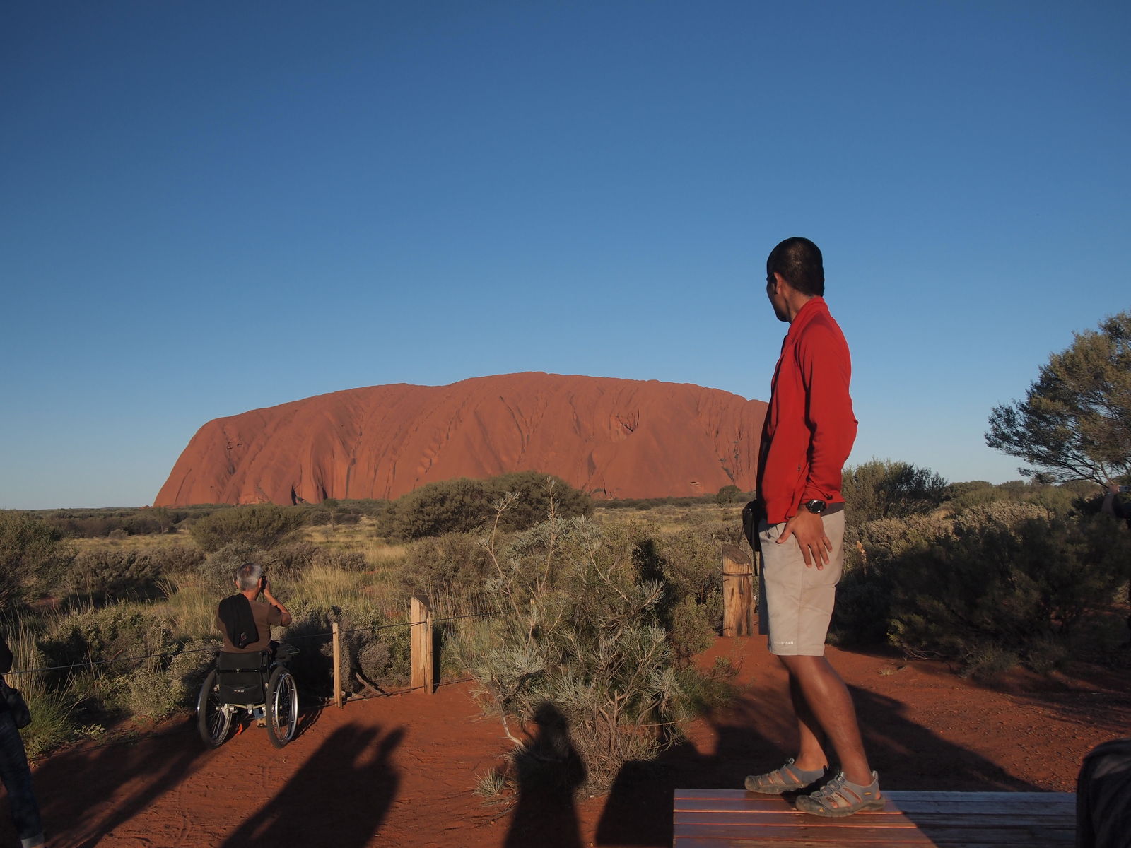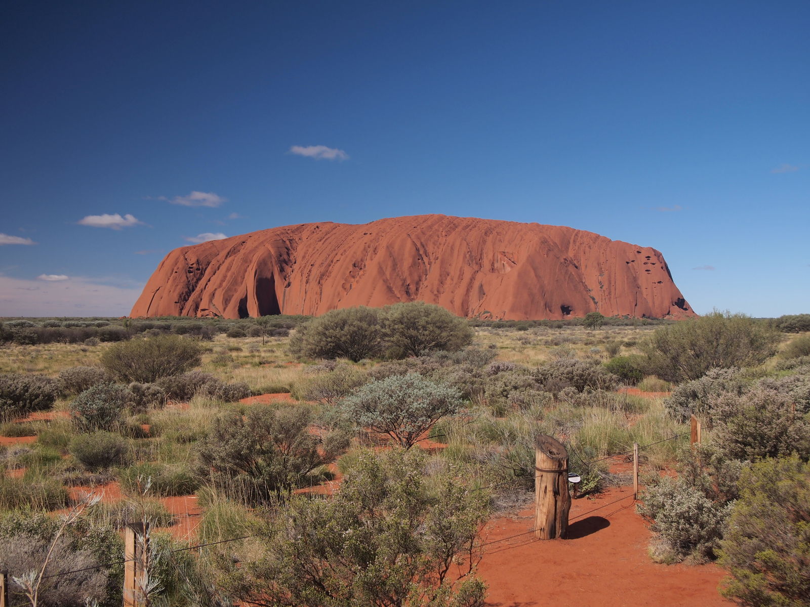高さ約300mほどの巨大な一枚岩で、その日の気温と降水確率次第では上まで登ることも可能。なお夏の時期は99%登ることはできず、登頂許可が下りるのは大体冬の時期に限られる。私が訪れた時には運良く許可が下りていたのだが、現地の人たちが信仰の対象としているウルルを登ることは止めてほしい・・・と思っていることから遠慮しておいた。気にせずガンガン登っている人もいるけれど。