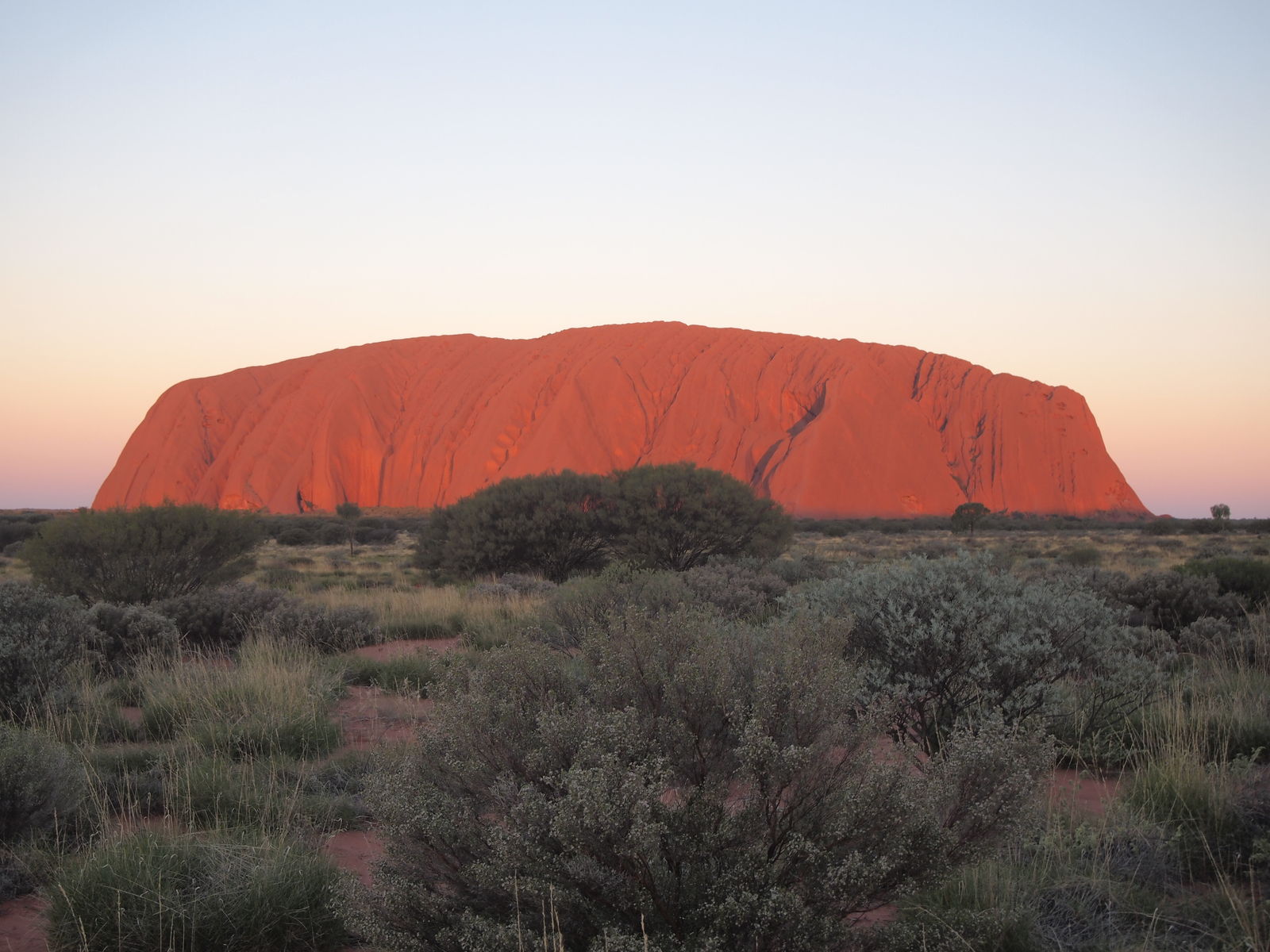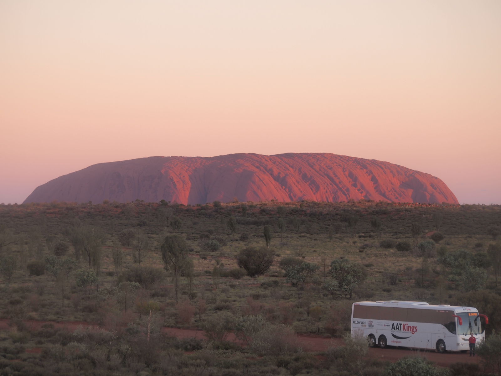 場所:大陸中央のアリススプリングスから南西に400km、またはユララから南に約20kmくらい。アリススプリングスからのツアーが多いが、ユララの町近くに飛行場もあるのでこちらを利用する人も多い。