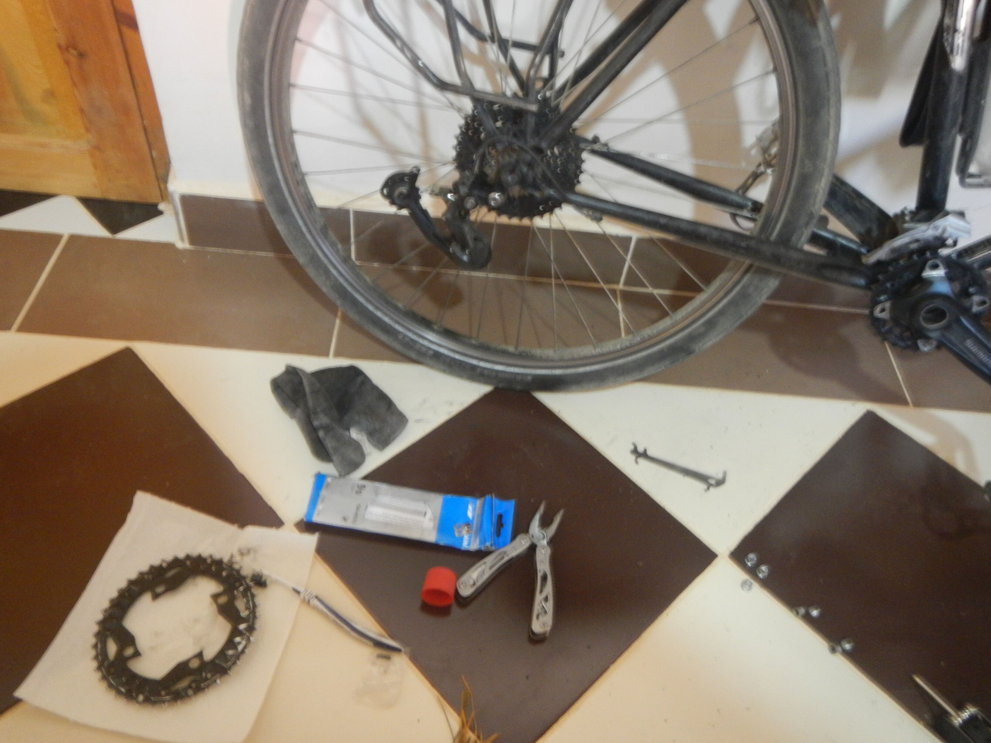 そのままチェーンの交換並びにスプロケットの掃除も済ませておく。チェーンに関しても同様にスペイン滞在時に購入したものであるが、こちらは「消耗品」として扱っているので、ある程度距離走ったら常に予備チェーンは1セット荷物として運んでいる。