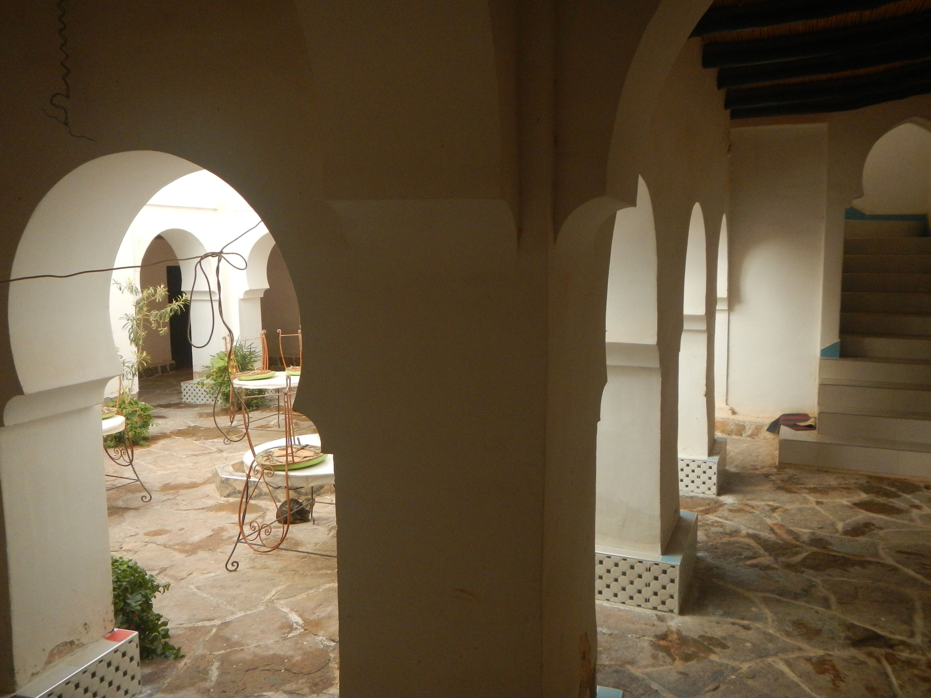 利用してる宿がやたらと広くて作業するのも気軽でよろしい。モロッコの住宅様式で家の中に中庭が存在する方式をリヤド(リアド)と言うのだが、一般家屋だけでなく宿泊施設でもこのリヤド建築は多く採用されいる。