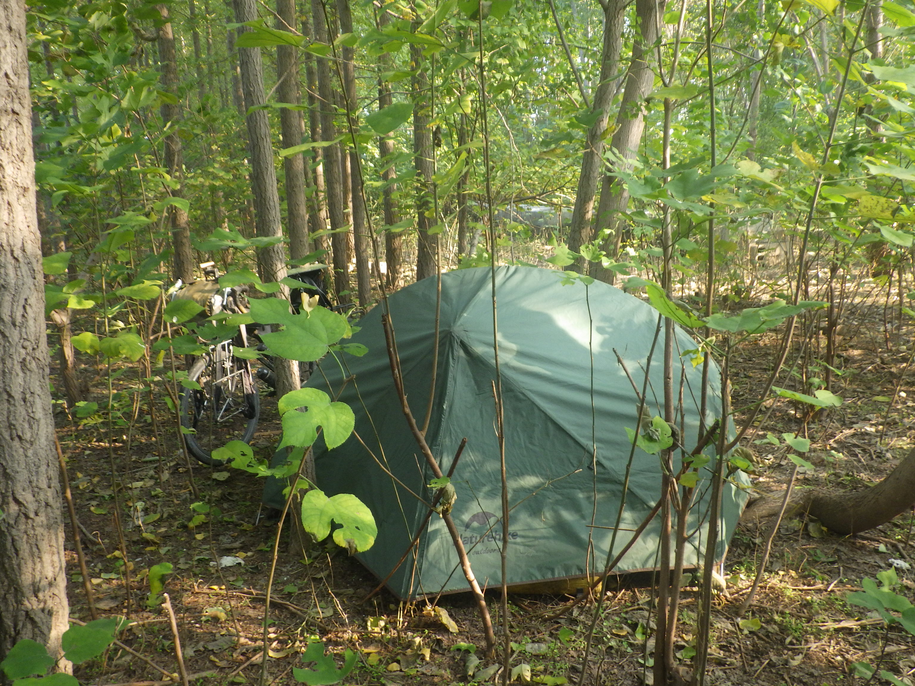 そして毎度の如く真っ暗となってしまった状況でテント張れる場所を探す羽目に。最近は真っ暗になるの17時半くらいと時間早いからねぇ。ちょっとでもロスするとこうなるワケですよ。