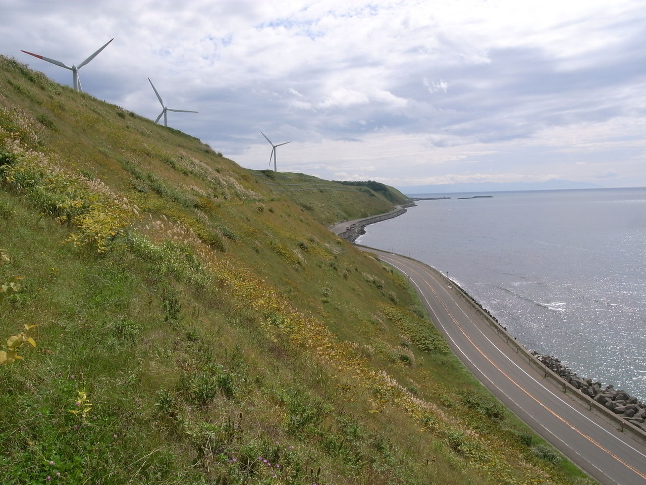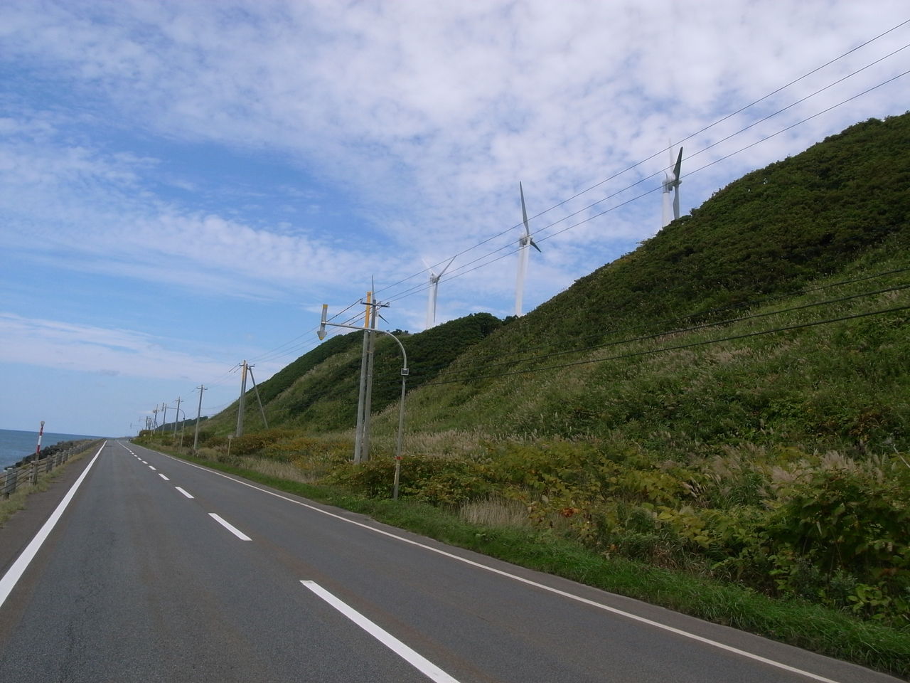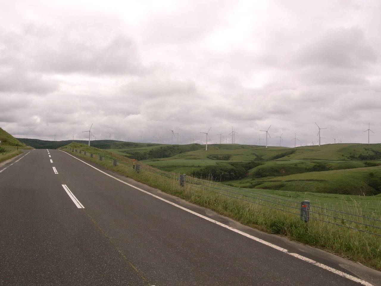 日本で1番風力発電機が多い宗谷丘陵の丘を走りながら南下を始める。日本1周でも有数の光景が広がっているのだが、惜しいことに天気は曇りでありイマイチ爽快感を感じられないのが難しいところだ。