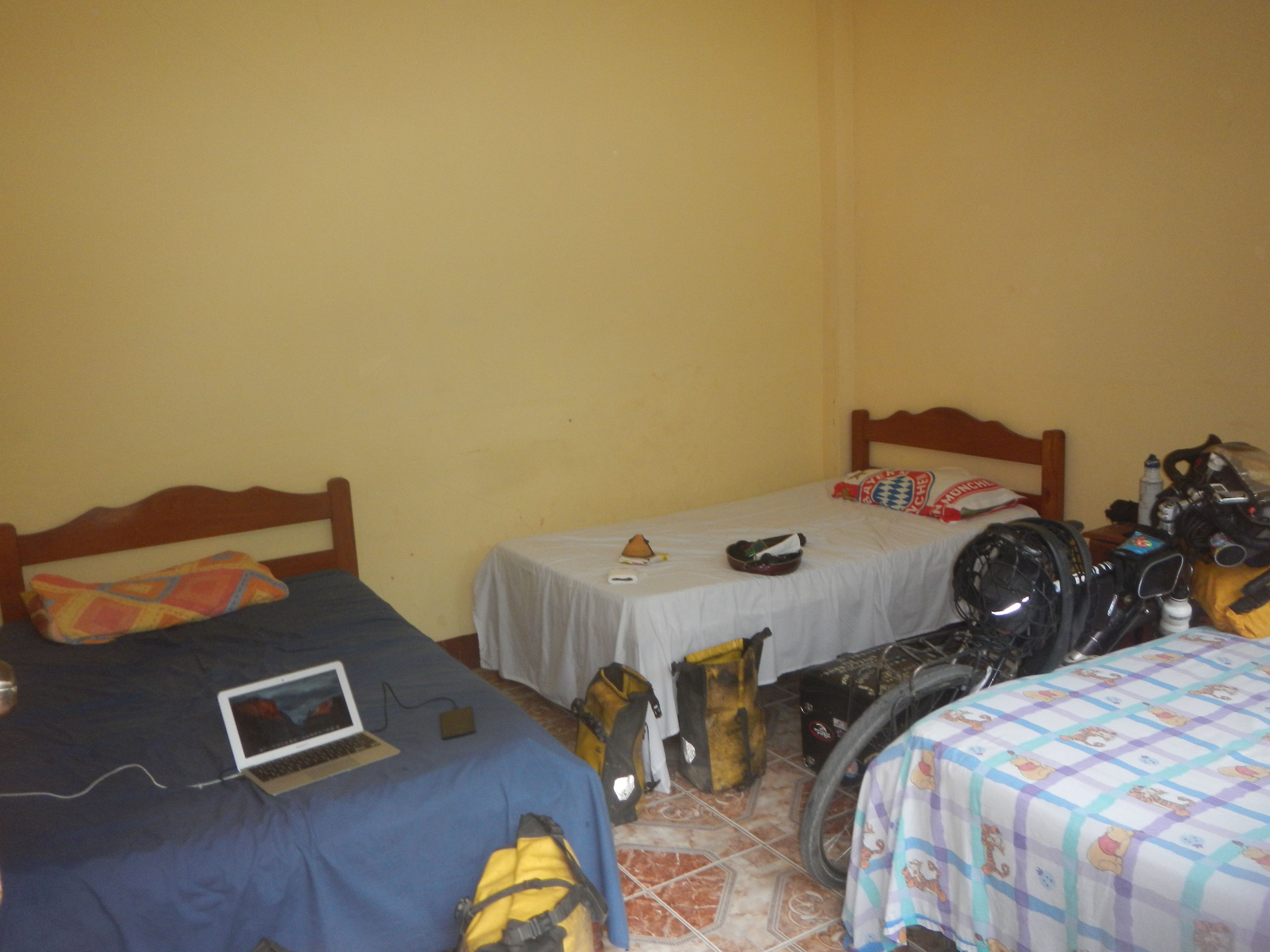 特に問題もなく15時にはグアヤラメリンの町へと到着。町が縦に長くて安宿あるエリアが分かりにくかったのと、ボリビア最後の町だし!という勢いと相まってパルケ脇のやや高めの宿に泊まってやることにした。といっても1泊70ボリ(約1120円)程度だけど。