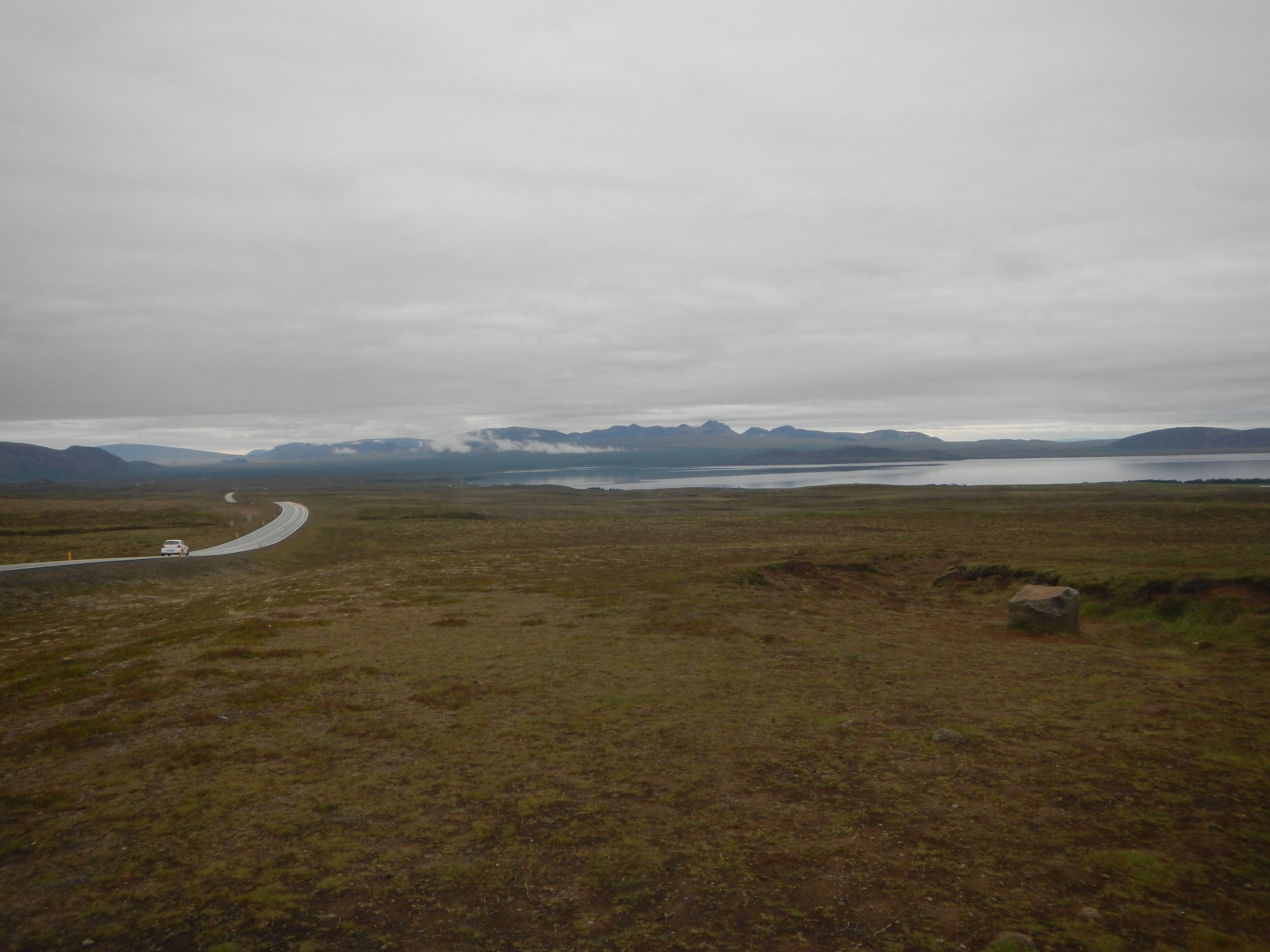 写真のポイントまで下っていったのだがこれが海から通じている入江であり、つまりは標高40mに満たない低地帯。フィヨルドって海沿いに切り立った崖がある、まぁそれだけの地形だと思ってたけどこんな凄まじいスケールだったとは。