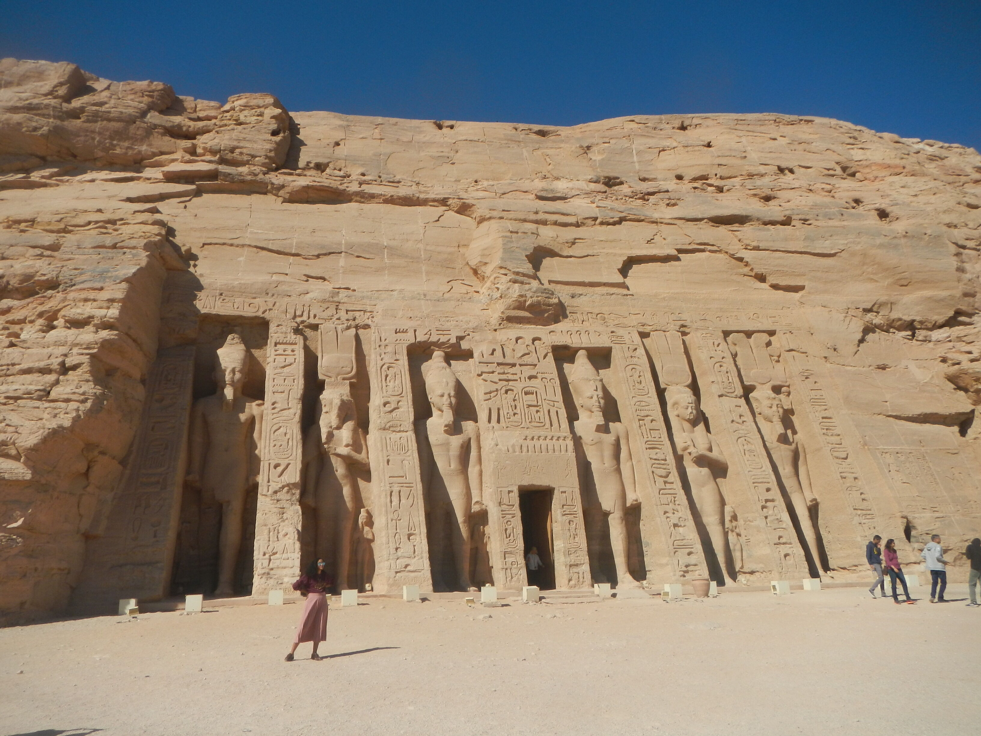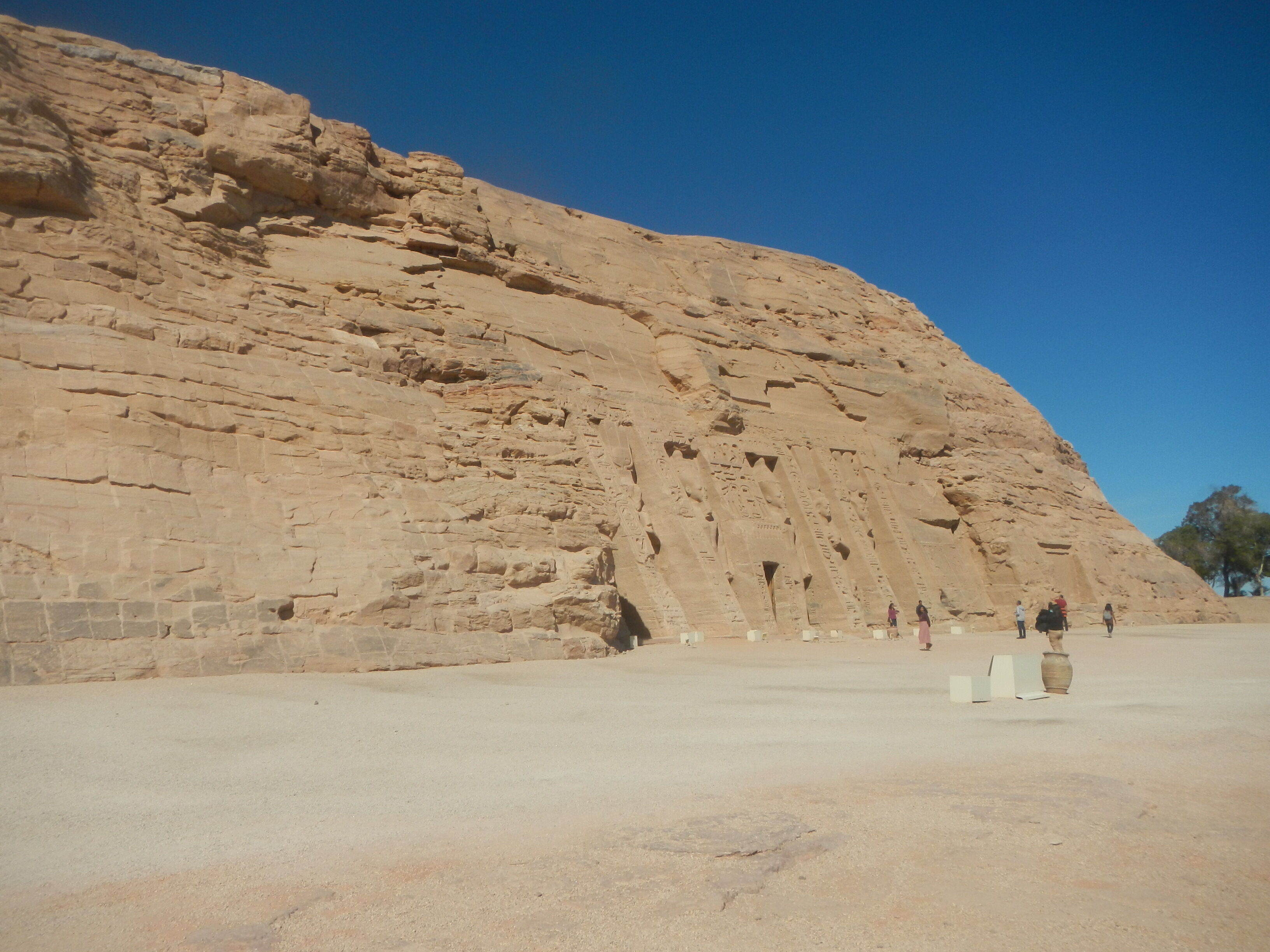 場所:アスワンの町から砂漠を280Kmほど走った先にアブシンベル神殿観光のために作られたといっても過言ではないアブシンベルの町があり、その町の最奥に神殿は位置している。ここまでのアクセスは完全1本道なうえにアブシンベルの町がエジプト最南端に位置してるわ、アブシンベル以南は道がナセル湖で断絶されてるし、隣国となるスーダンは入国に日本大使館のレターとスーダン大使館でのビザ取得という手順が必要になるため、アブシンベル神殿のみを観光するなら他のルート選択肢(除く空路)が実質存在しない。というかアブシンベルだけを観光するような外国人はまずいない。