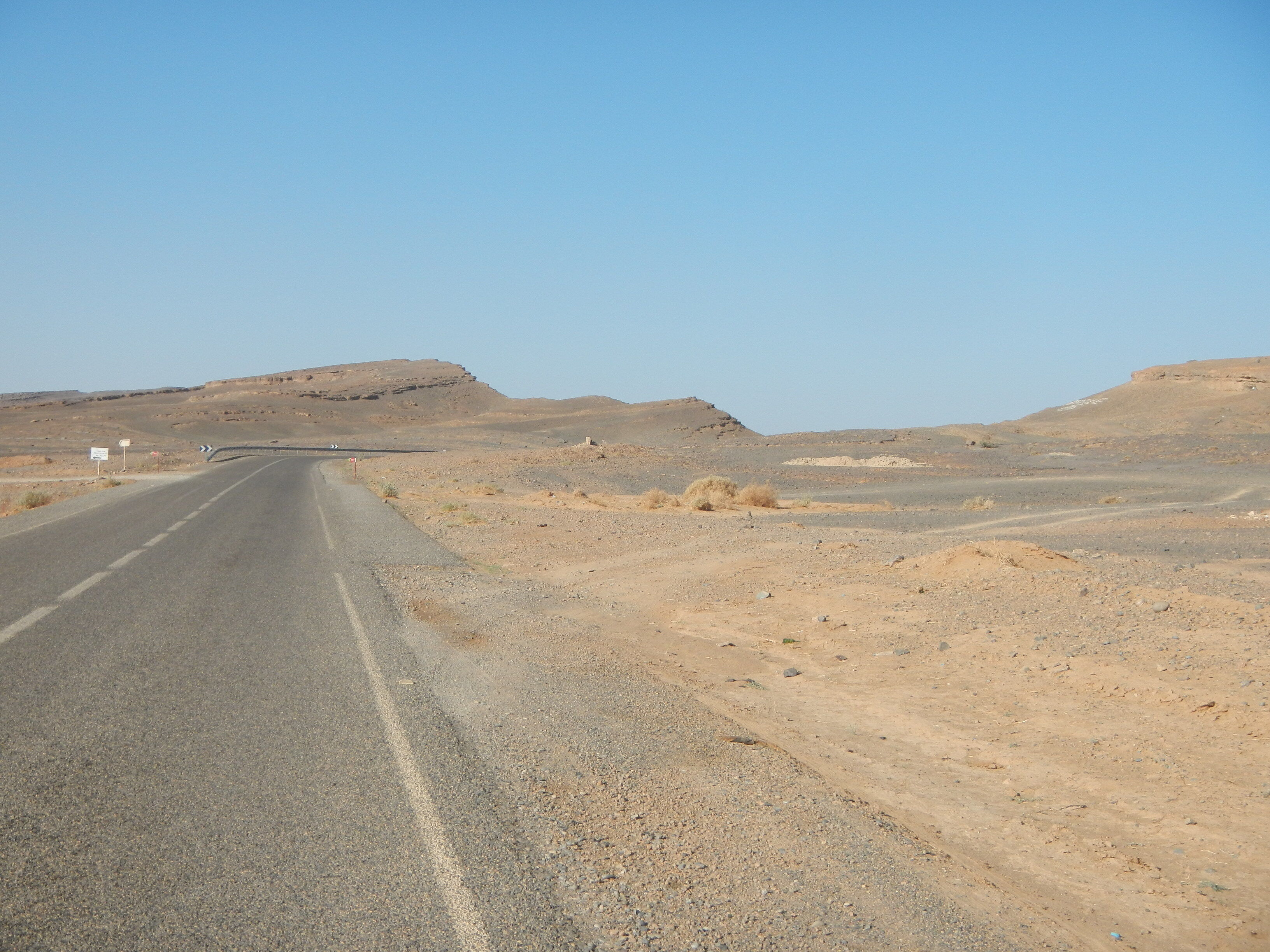 国によっては落石防止とかでネットを貼ったり色々対策してたりするものだが、モロッコは男らしく何の対処もせず堂々としているのが常。怖いので走っててもなるべく道の左寄りを走ってしまいそうになる。