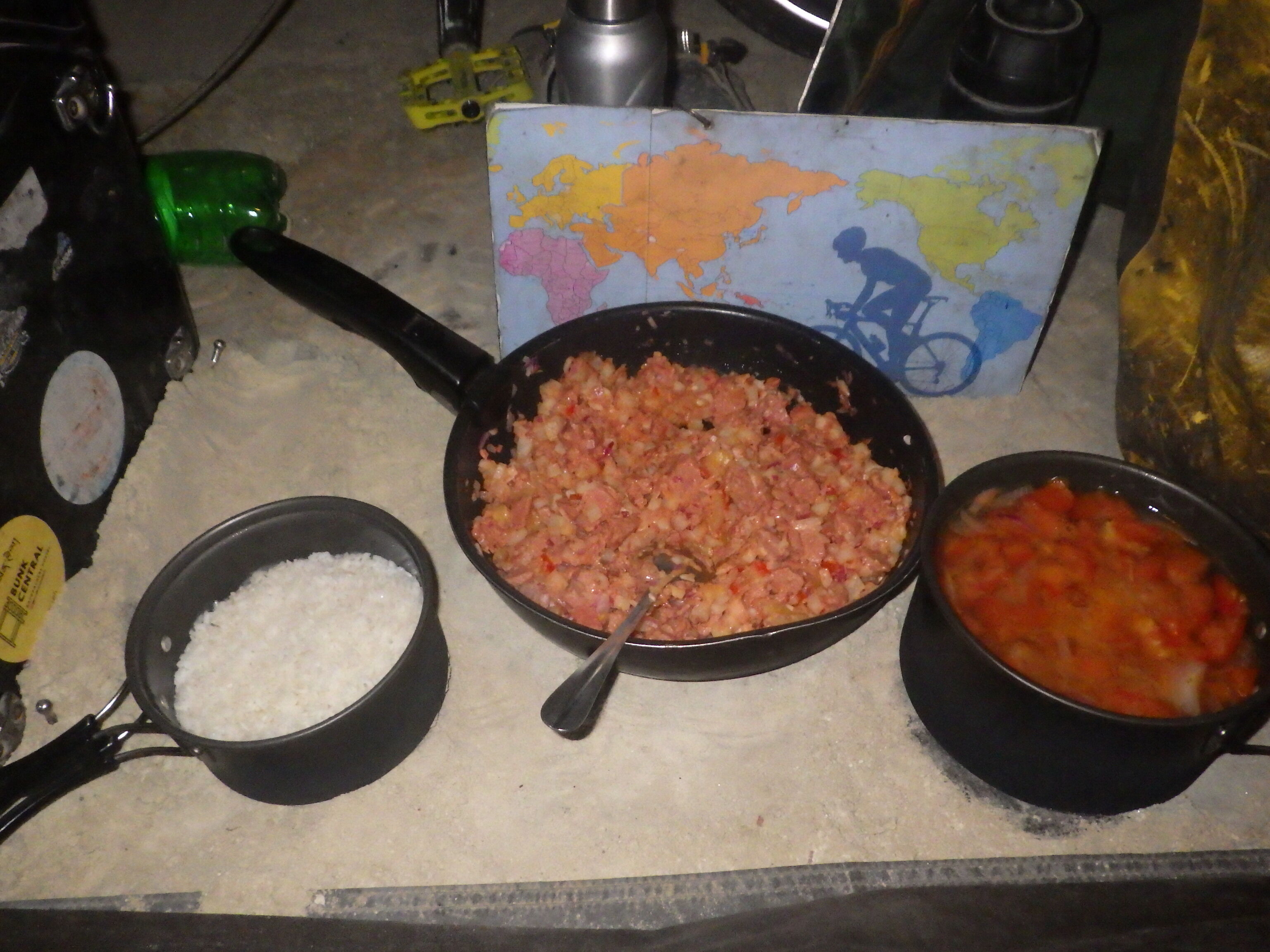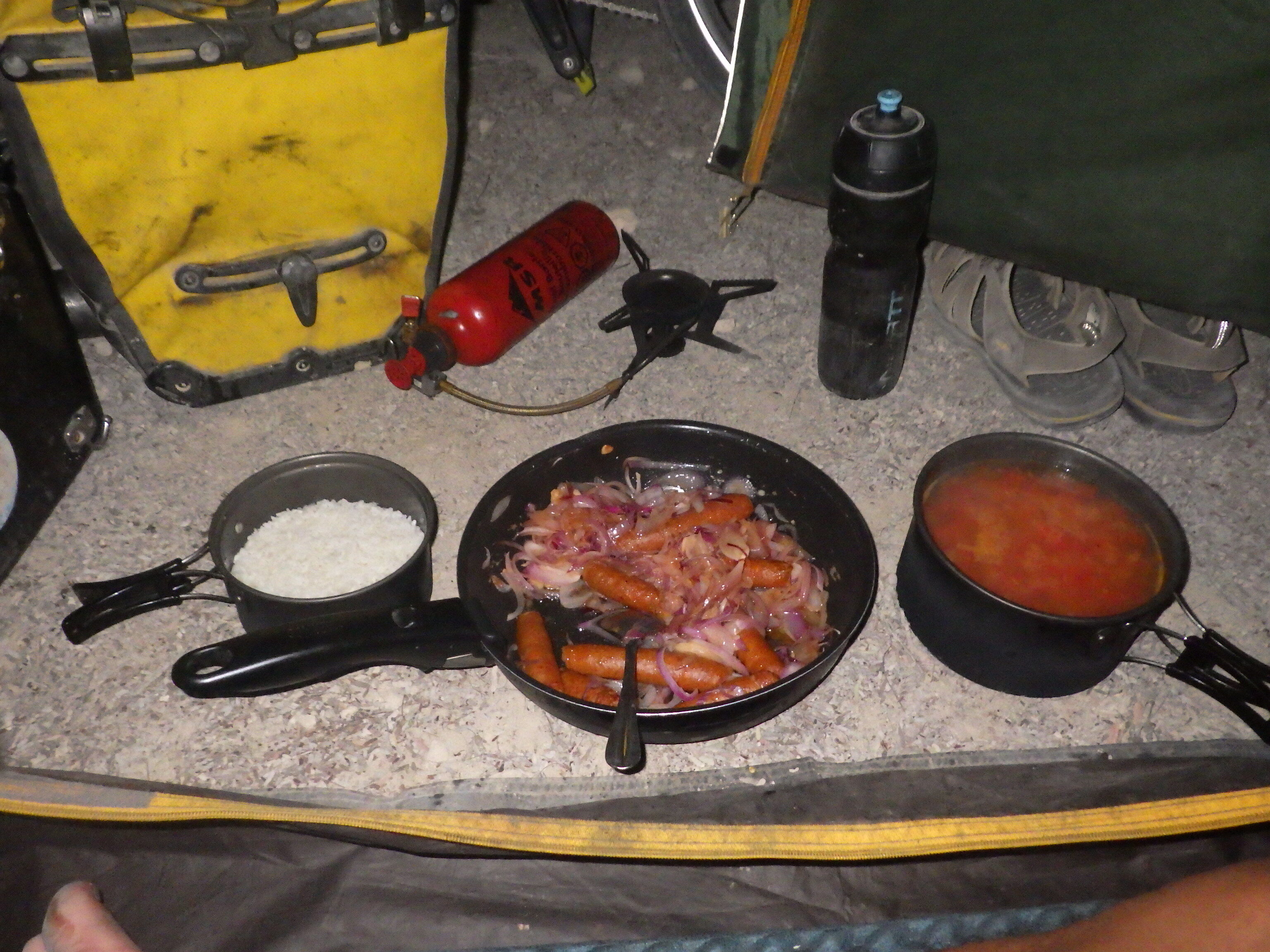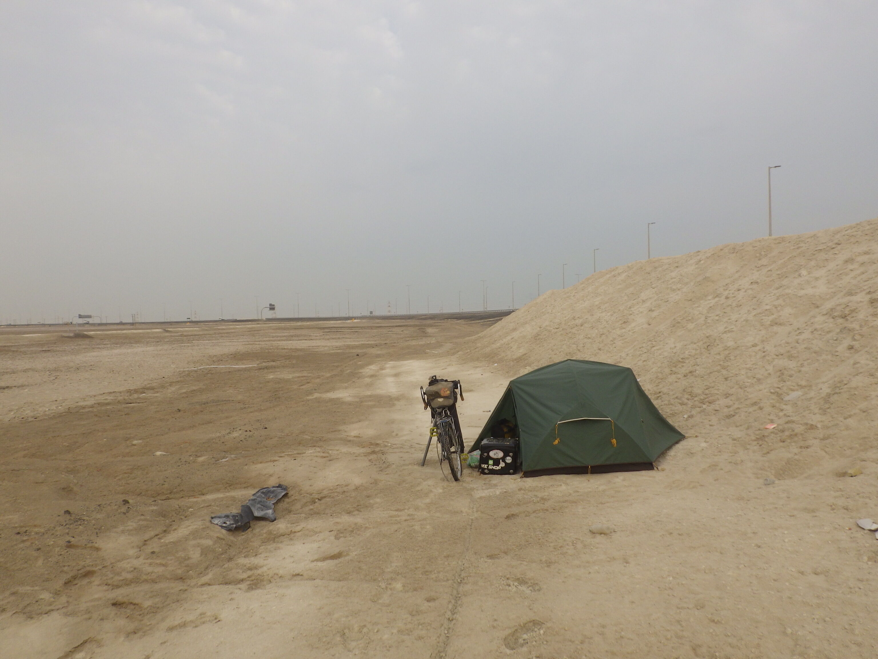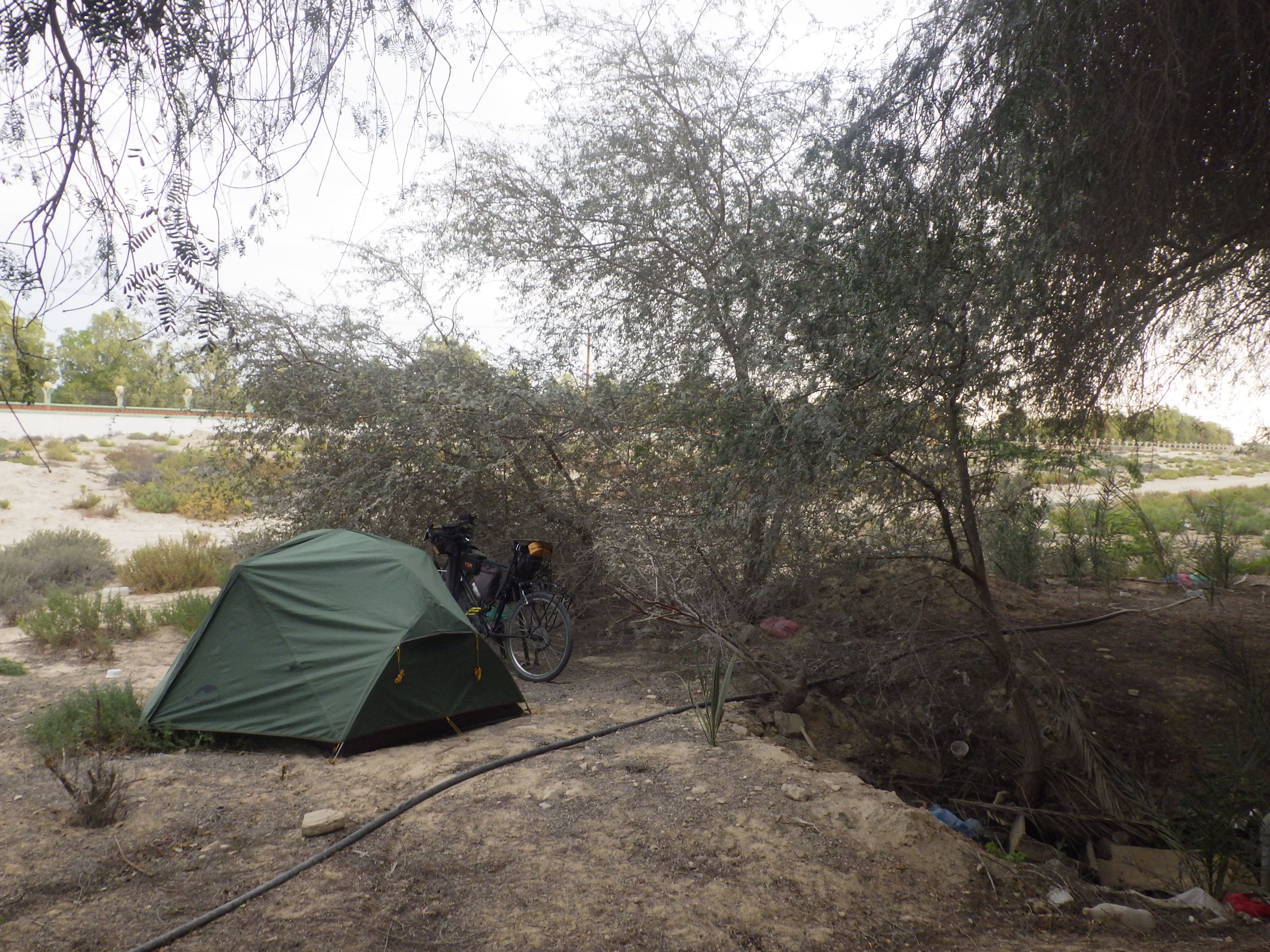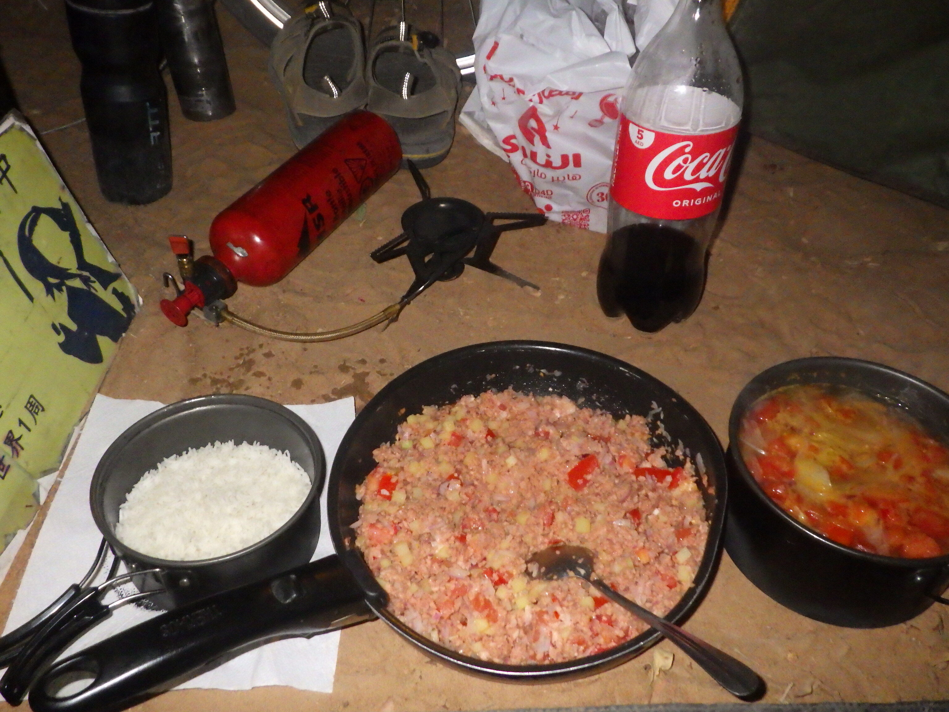 途中で食事振る舞ってたモスクにお招きされたりとかありつつも、19時過ぎに何とかテント設営してひと段落。ネット使えたついでに今日の気温調べてみたら36度だったらしく、朝日が当たる場所に野営してしまったことに恐れ慄いていたりする。