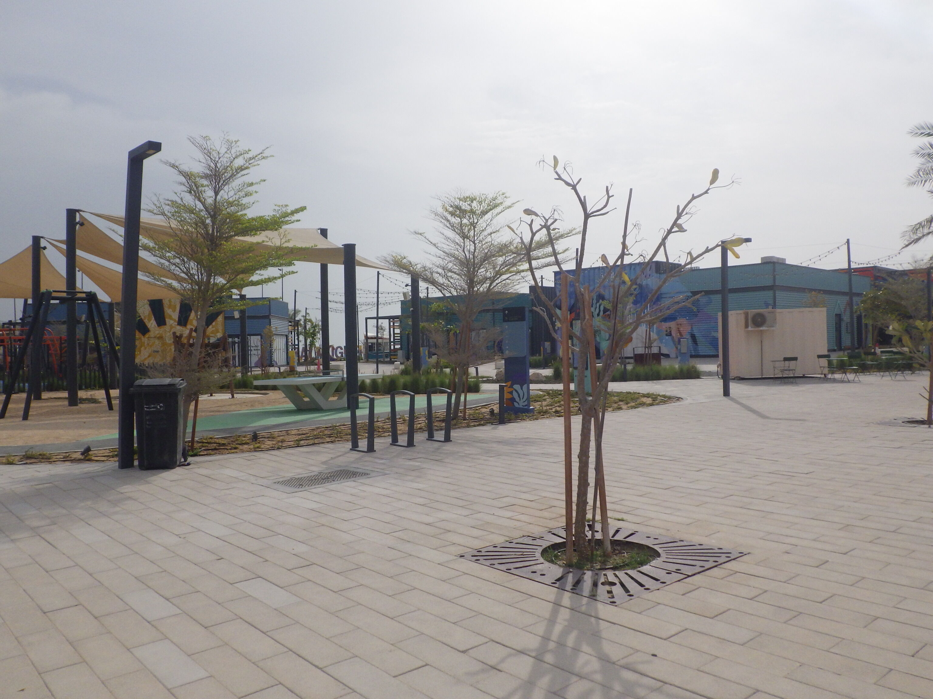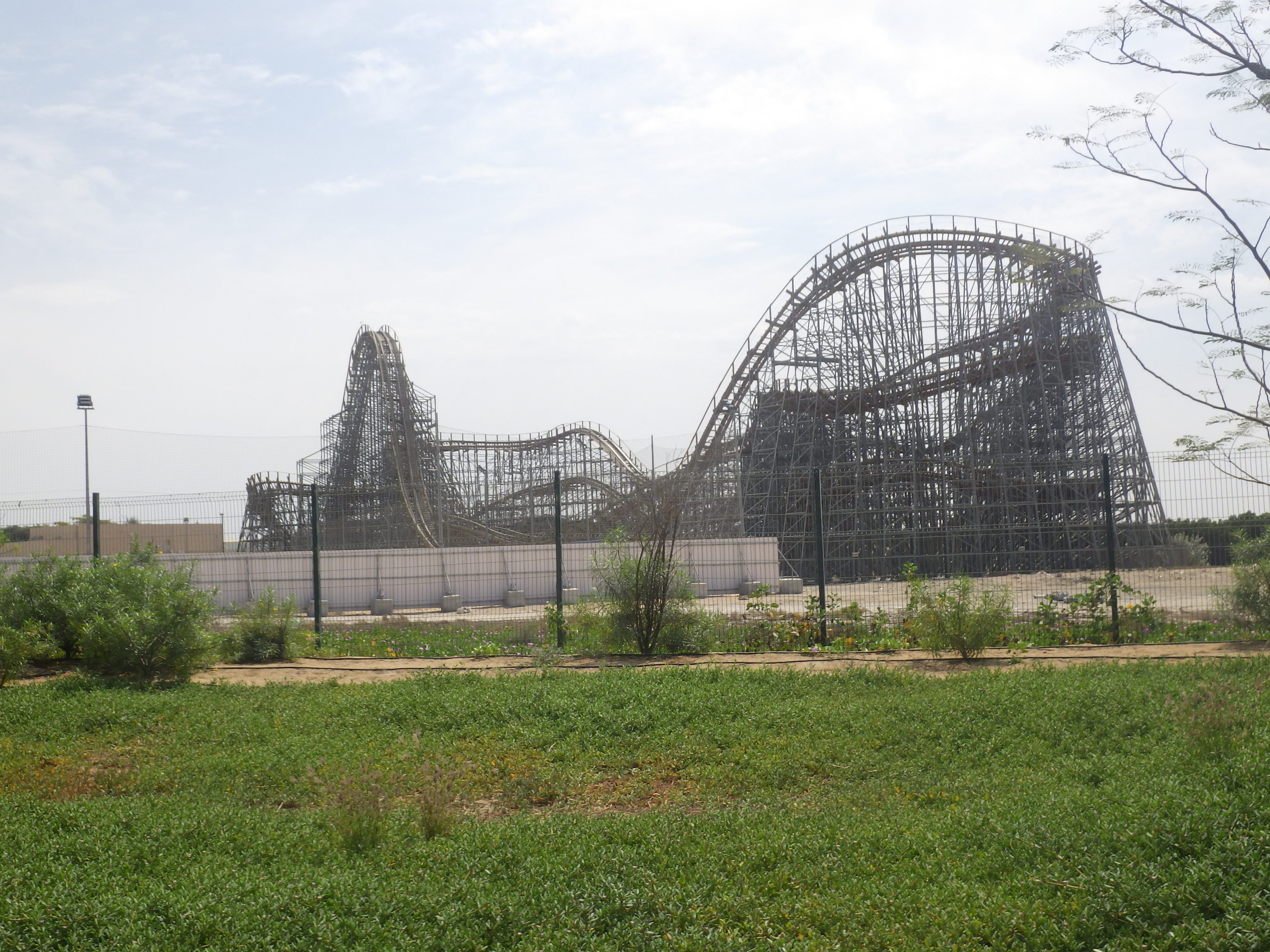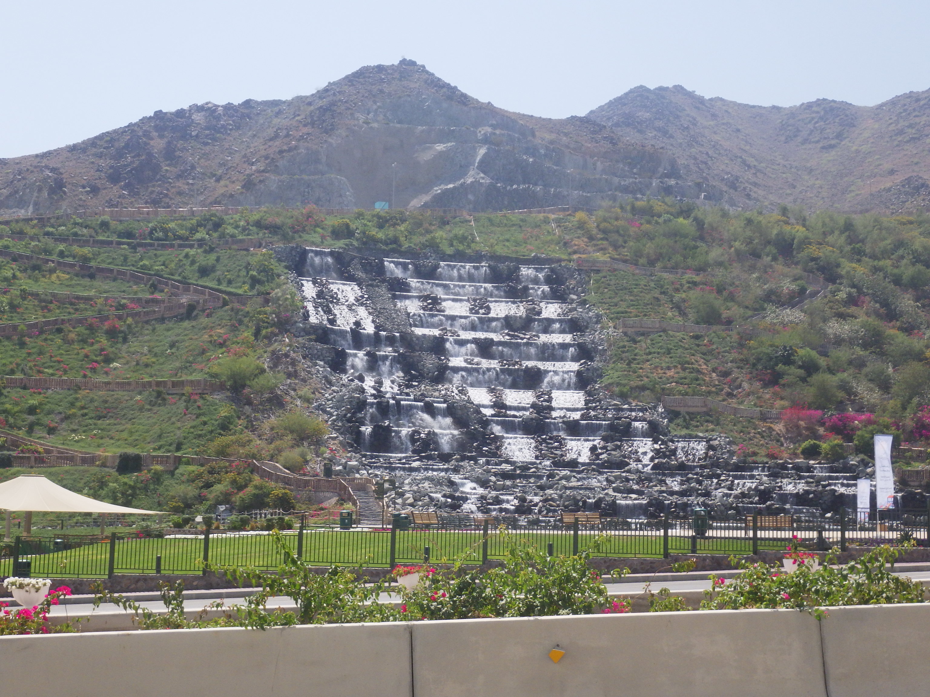 写真だと一見森深いように見えるかもだが、精々幅1〜2m程度の列に植えてあるのみで、その向こう側は砂漠の景色が続いている。よくよく木の根本を見れば水を運ぶ黒いホースが張り巡らされており、この景色を作り出すのに相当苦労してることが窺えるな。