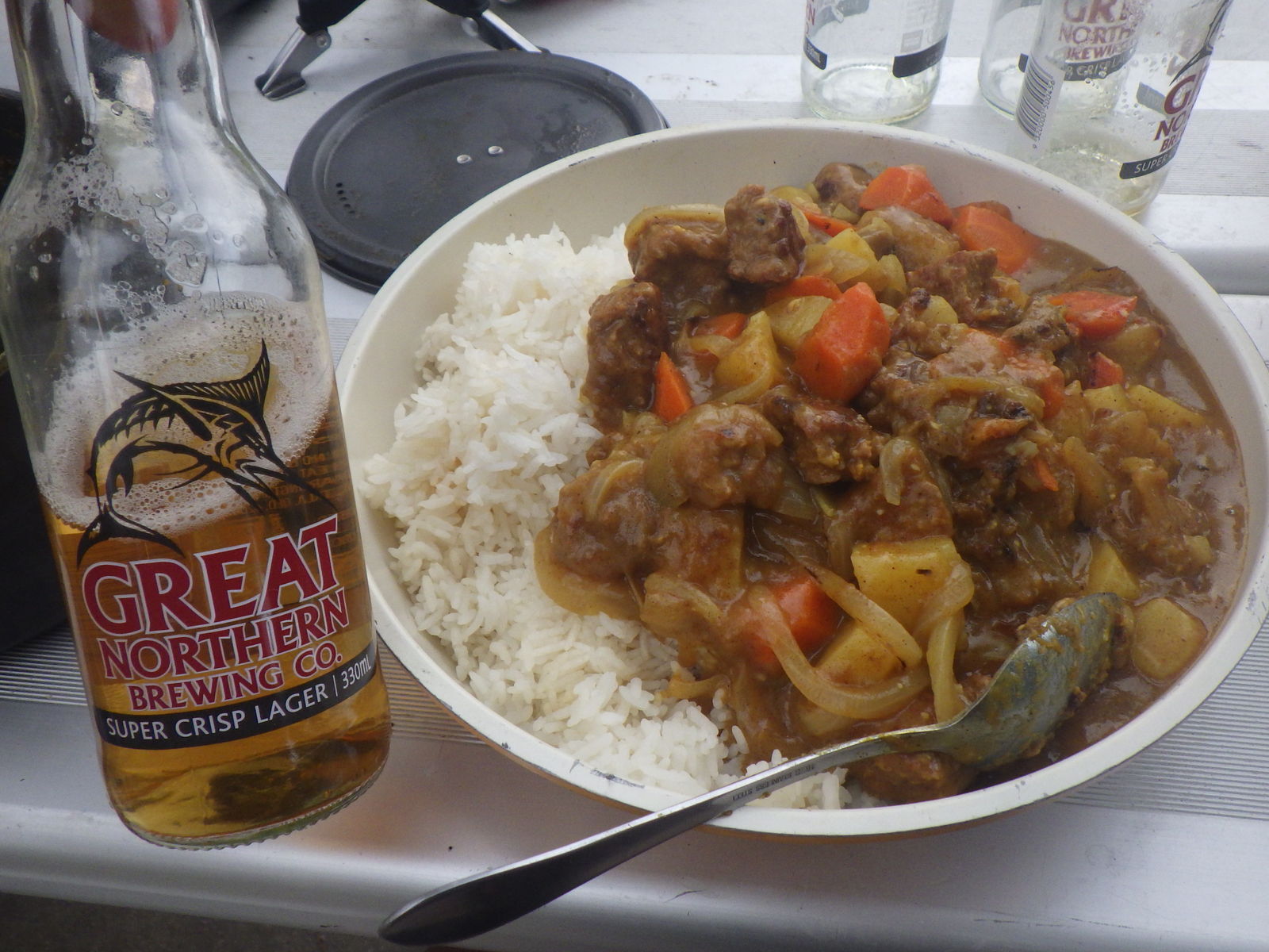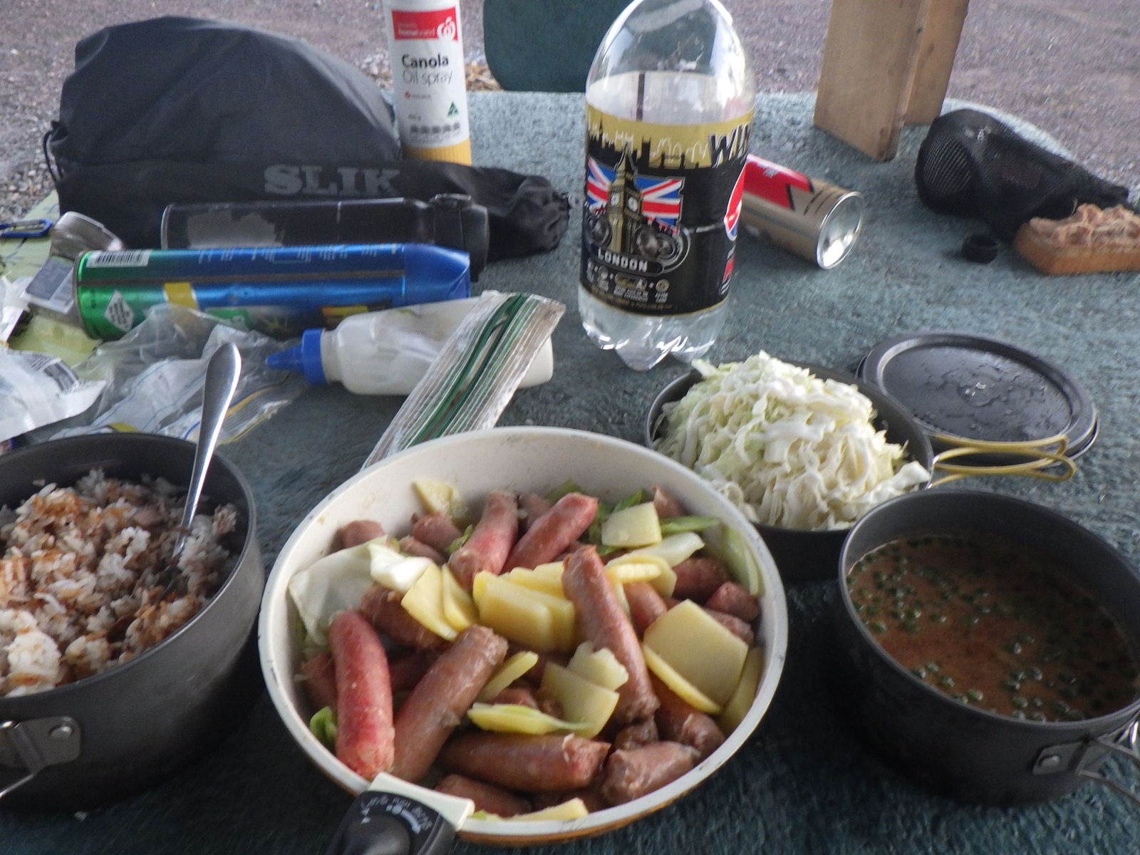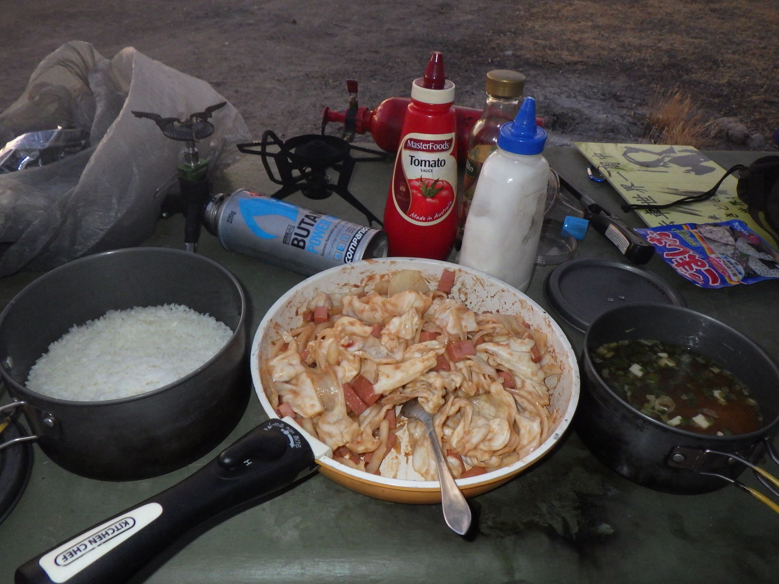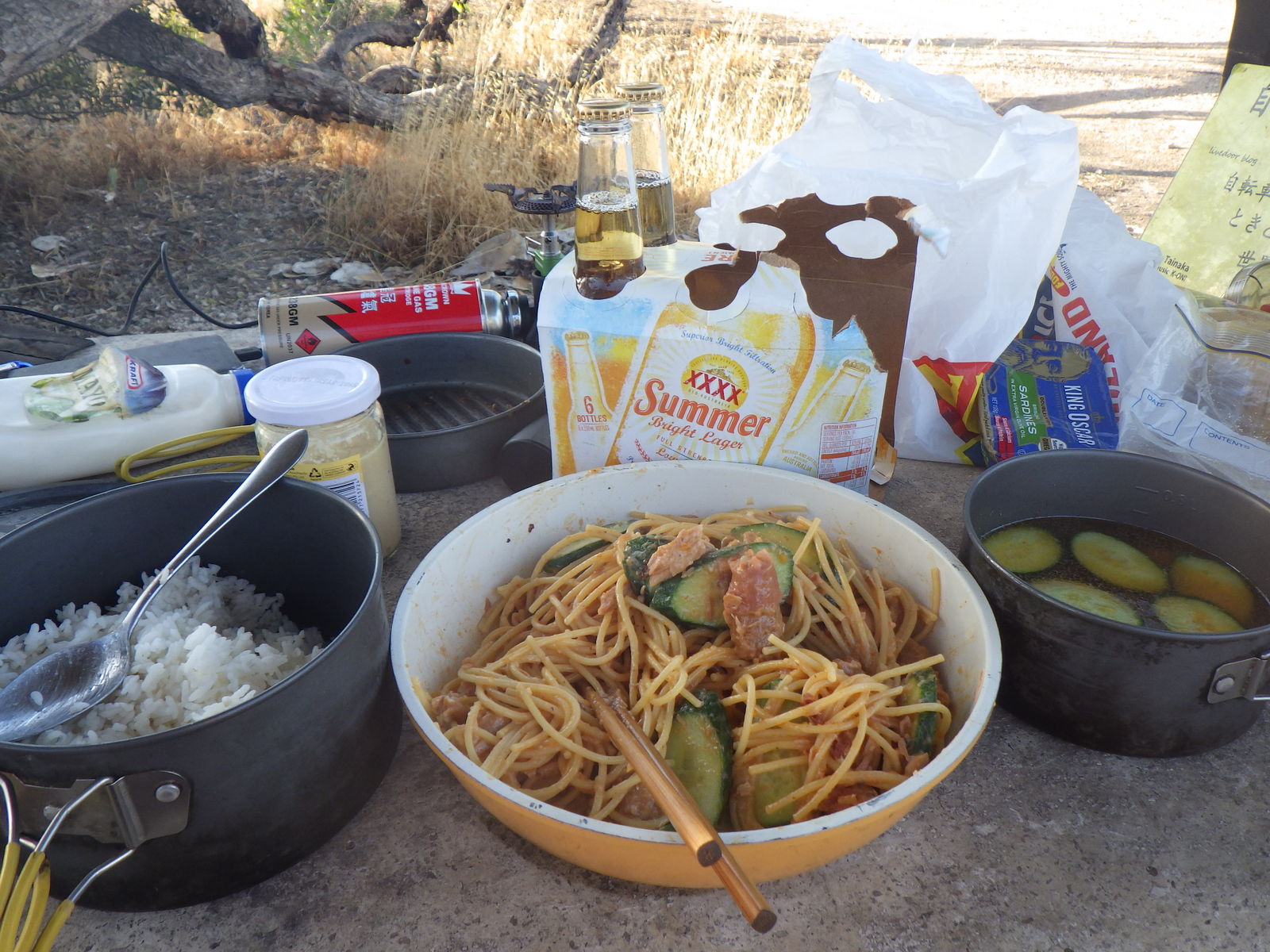食料の数自体は問題ないのだが、いよいよ野菜が傷みだしてきてドキドキである。本日人参から酸っぱい臭いがしてきたので、こりゃヤバいと思って今日全て使ってしまった。考えてみればエスペランスで買いだめしてから既に11日。冷蔵するでもなく毎日炎天下を走っているのだし、仕方のないことだとも思うのだが。