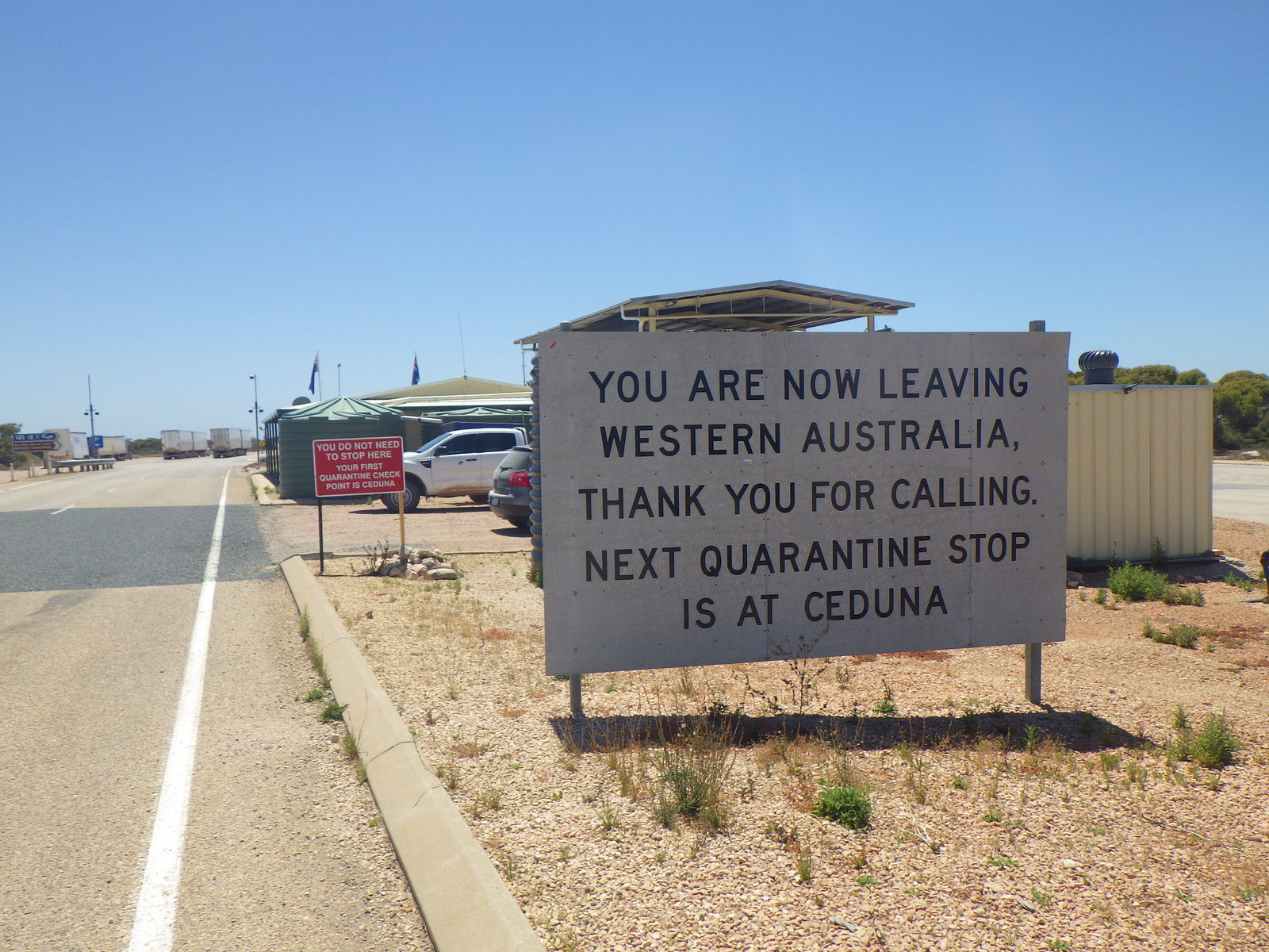 10kmほど走ればサウスオーストラリアとの州境ポイントであり、他のどの国より長期間滞在したウエストオーストラリア州ともついにお別れである。いやぁ実に楽しかったよ、蟻以外は。