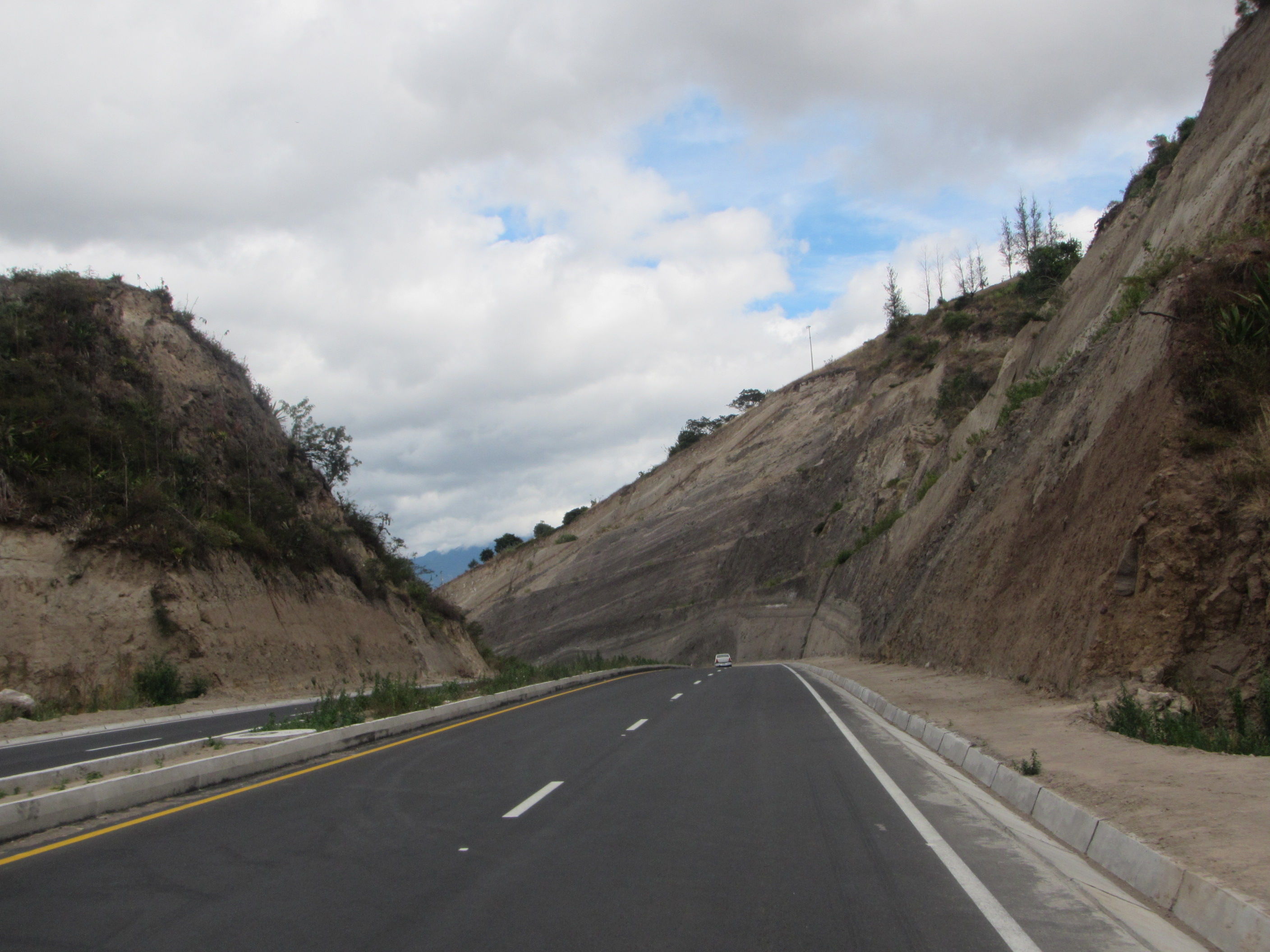 この先からが怒涛の道。具体的には山々を切り崩し、無理矢理道路を開通させたことが一目で分かる山岳ルートとなっていた。エクアドル政府がそんな道を作ってくれたおかげで、個人的には最高の景色を見ながら下り坂を楽しめるのであり最高だわこの道。