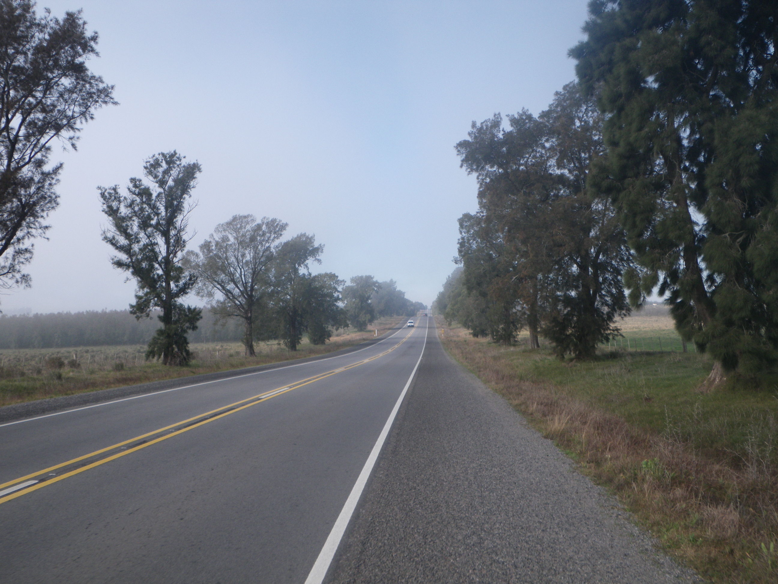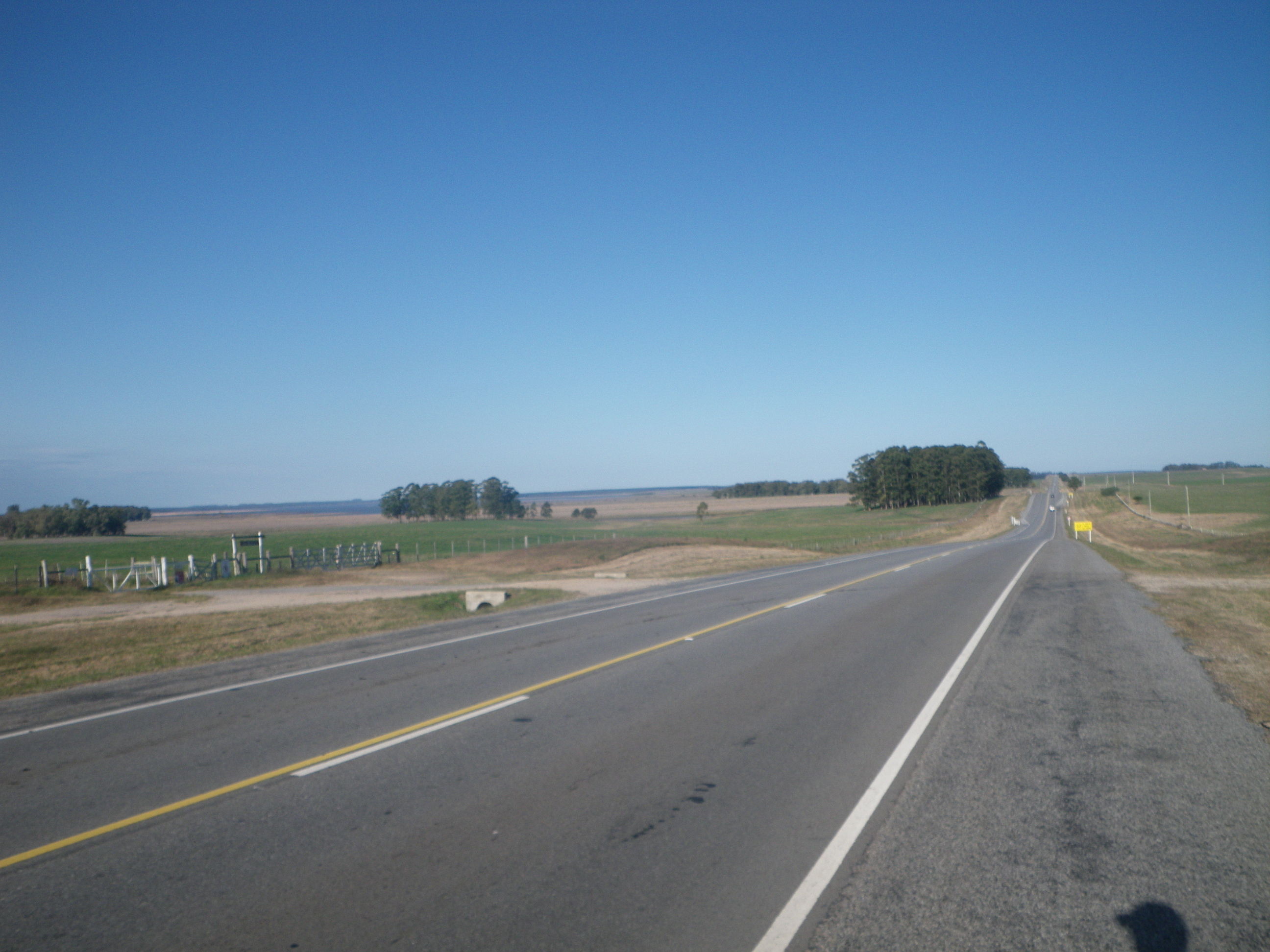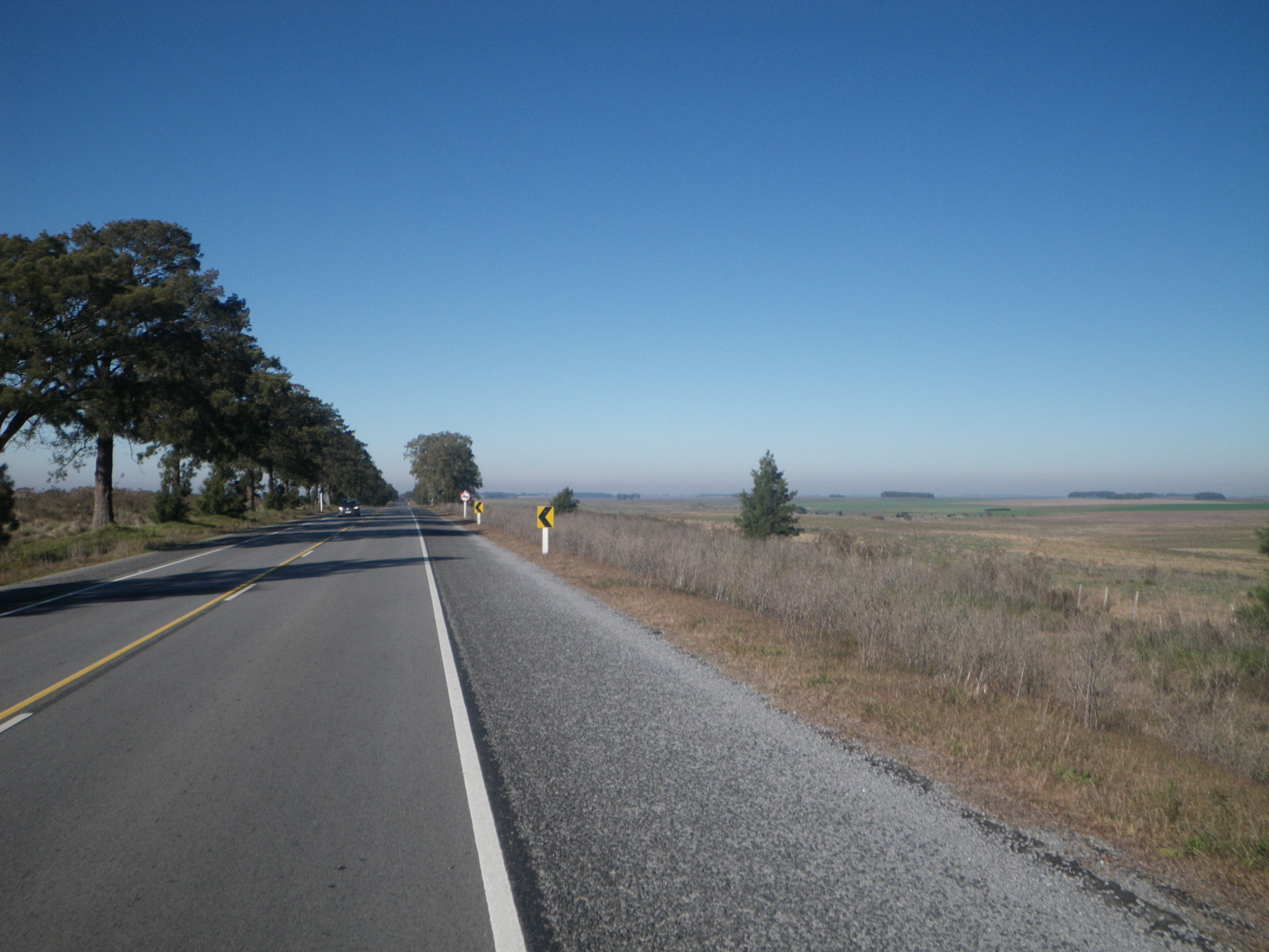 まだ20kmも進んでない時点で私はウルグアイが好きになった。アルゼンチンとは微妙に異なる木々が混じるパンパの大地に波打つようにして進む1本の道路。道路脇の側道はフルパッキンの自転車でも何ら不安を覚えることのない広々としたスペースが確保されており、走行に際してストレスを覚えることがない。