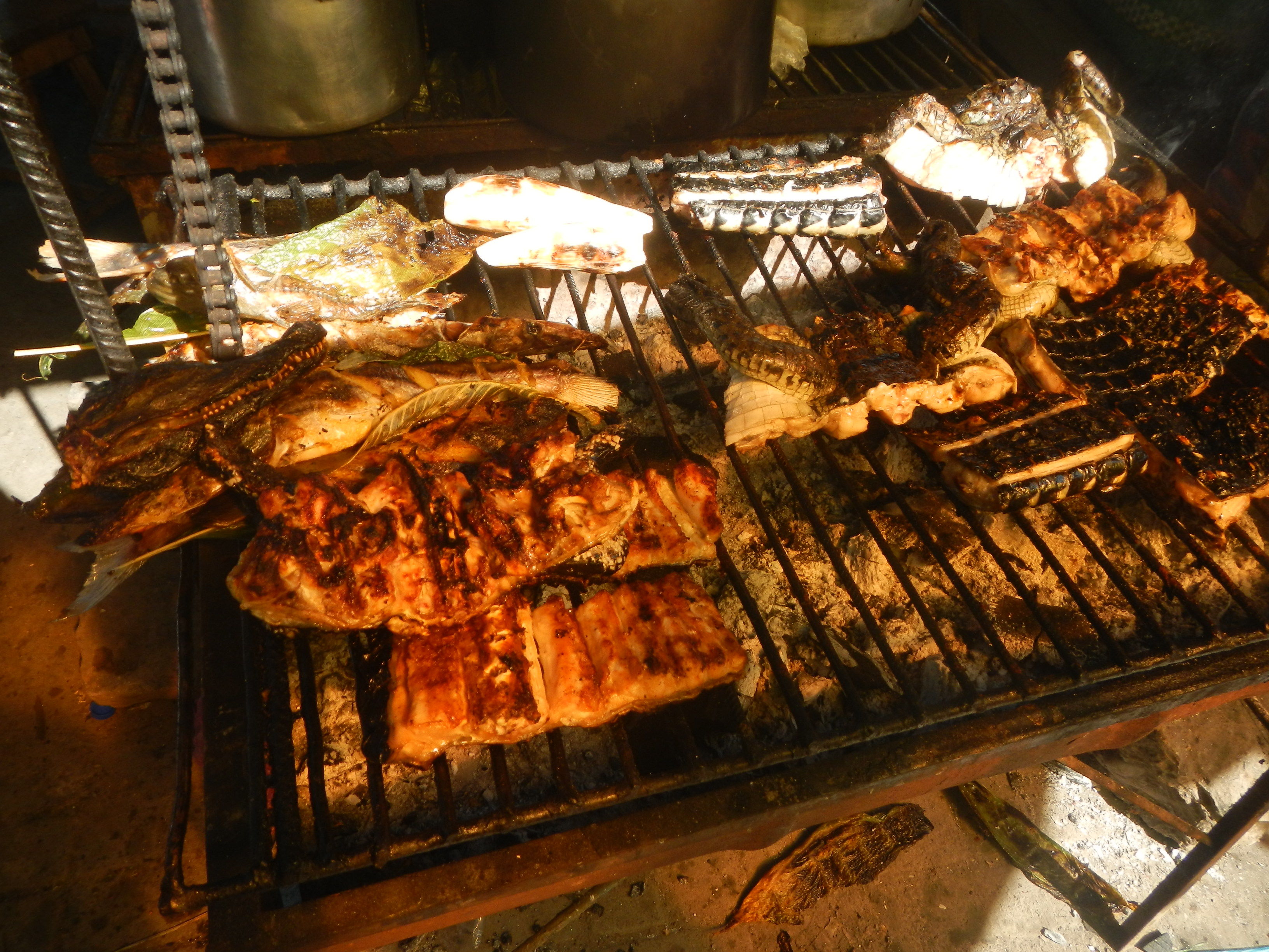 同宿者の人たちと一緒にワインやウイスキー飲みつつ話する。偶然にも私たちとは別のルートでアマゾン川筏下りを実行し、見事に沈没してここに戻ってきた2人組がおり色々筏下りについての話を聞いたりしつつ。