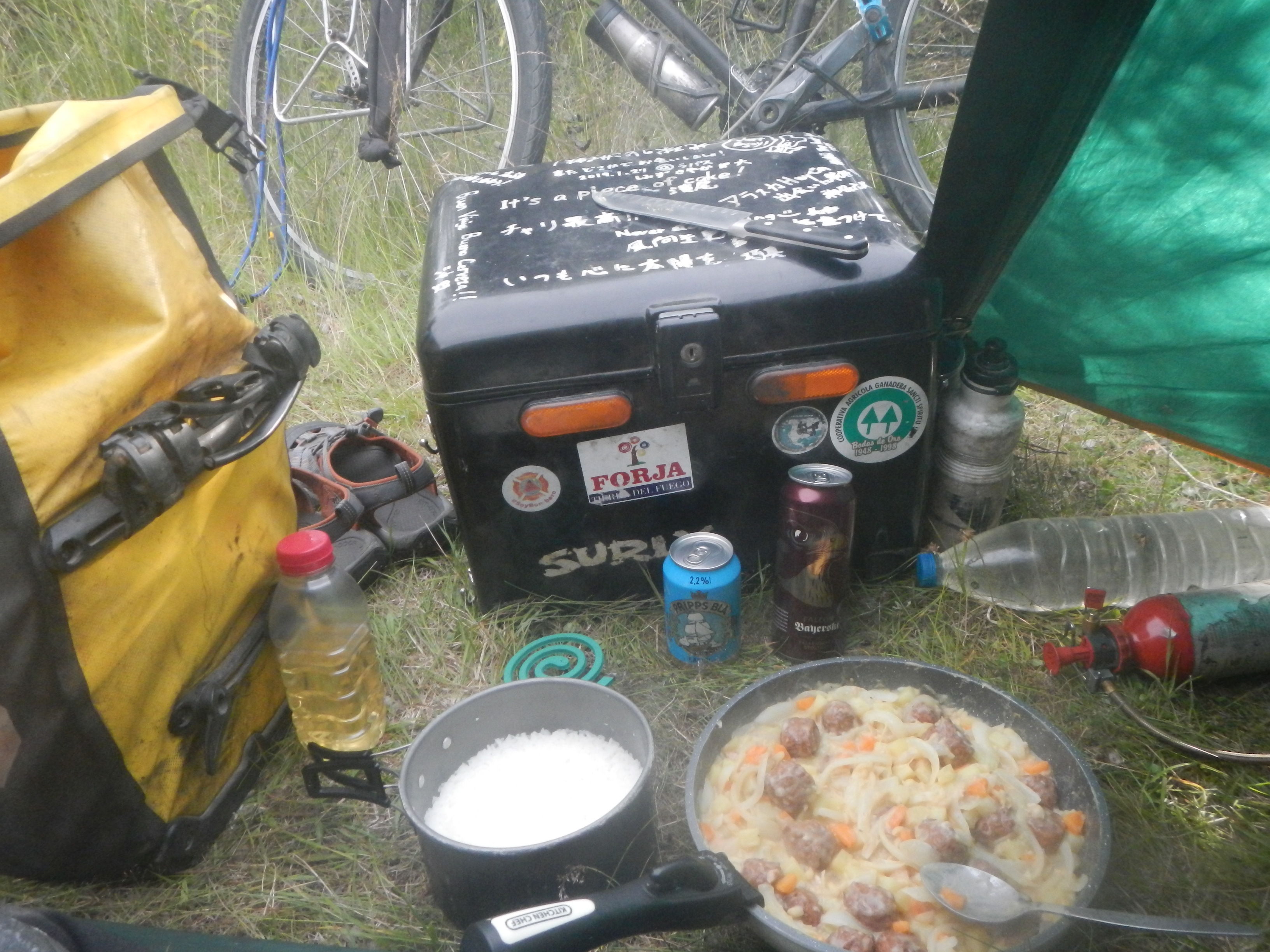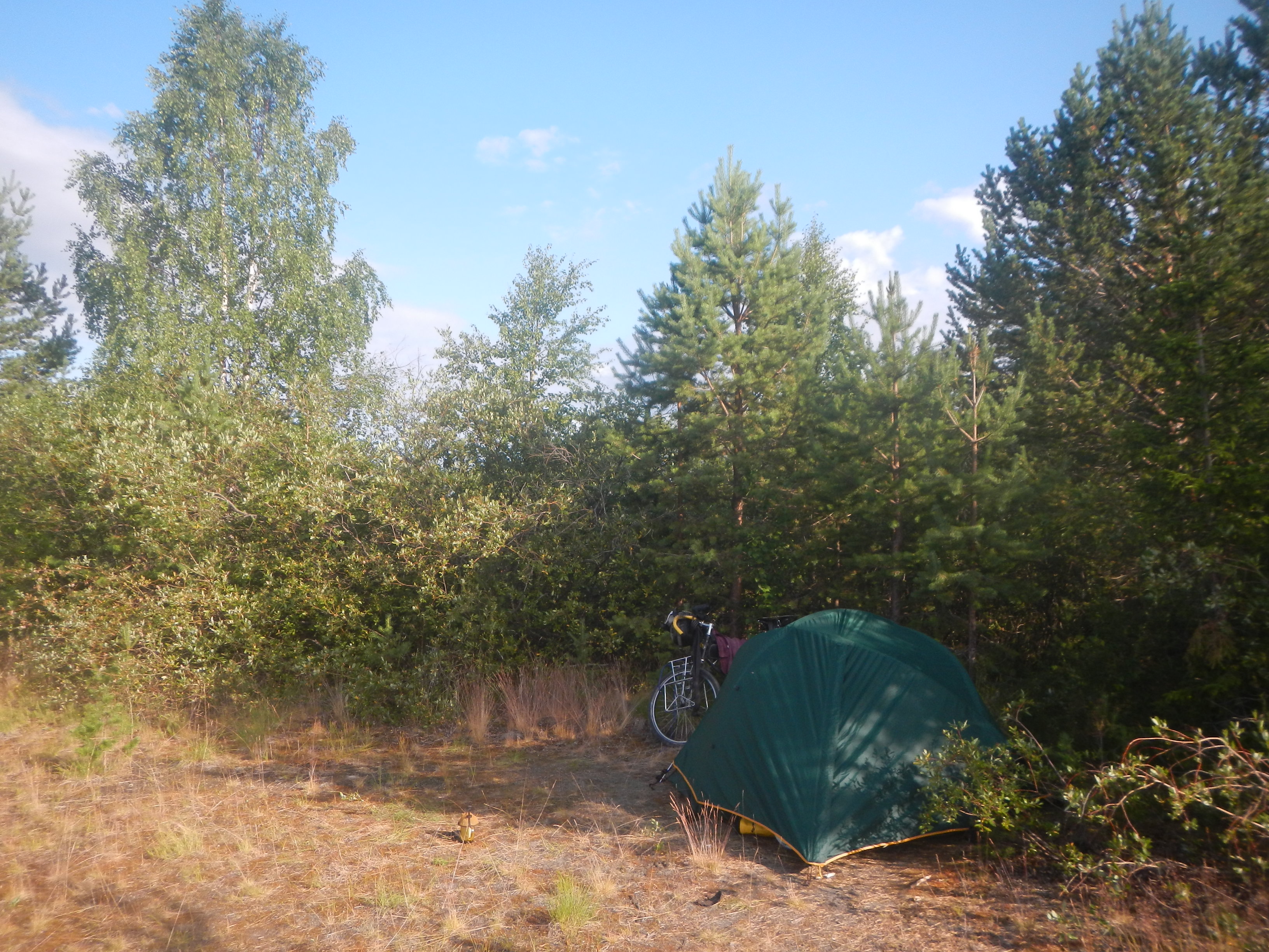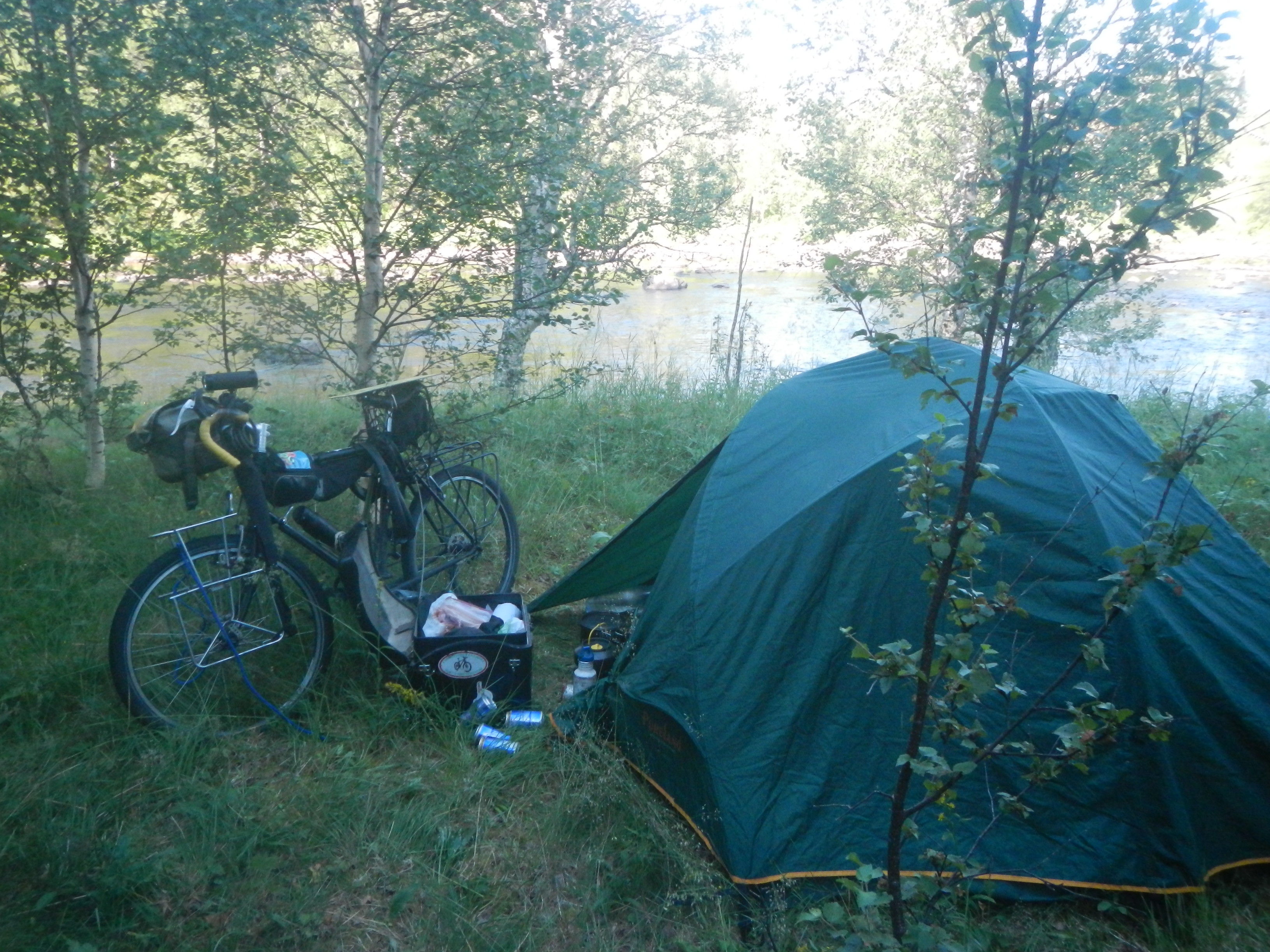 川沿いの森林地帯って野宿するのに素晴らしいポイントだとは思うけど、同時に蚊やアブの巣窟でもあるのが困り者。夕食や朝食のタイミングでは蚊取り線香焚いてるので被害はほぼないが、テント収納して自転車に積載し道路まで移動するまでがキモ。今朝もこの僅かなタイミングで3ヶ所も刺されてしもうた。