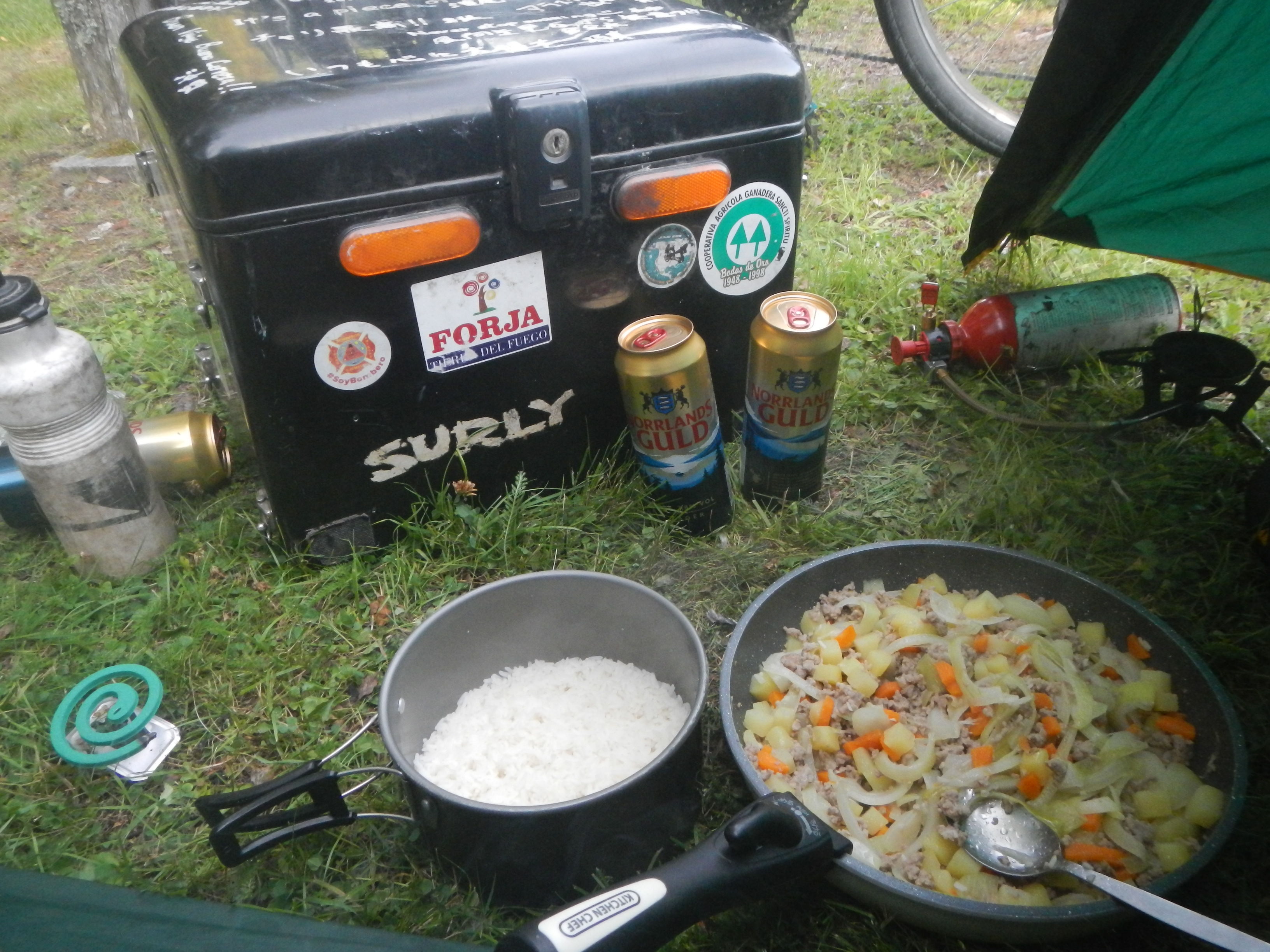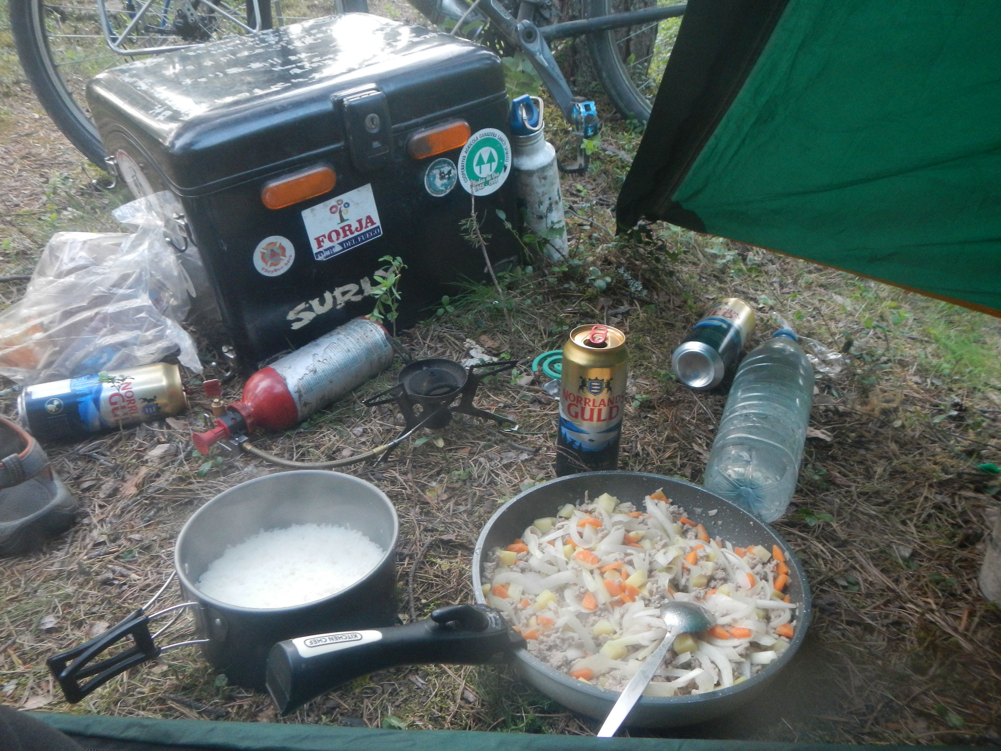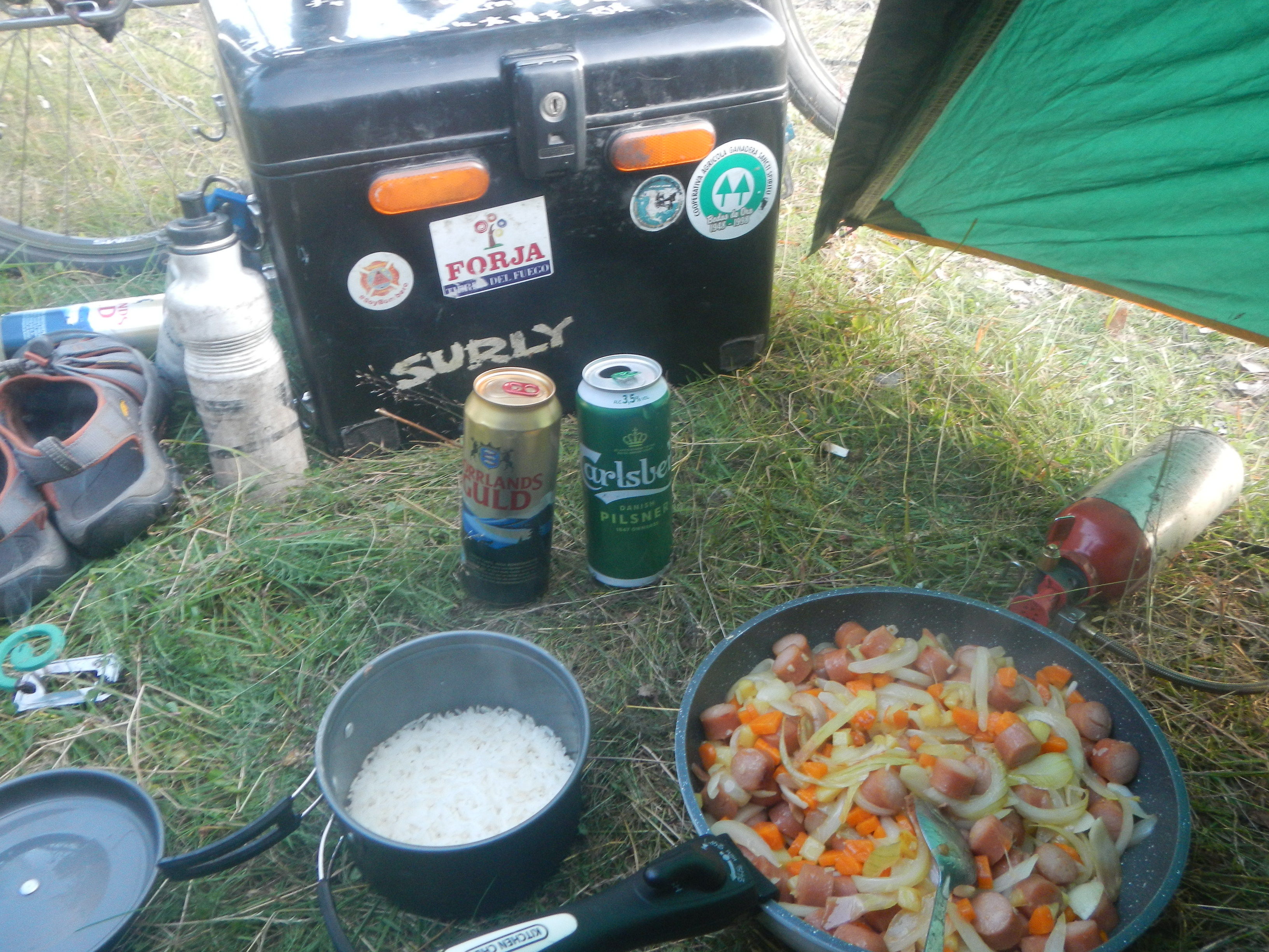川沿いの森林地帯って野宿するのに素晴らしいポイントだとは思うけど、同時に蚊やアブの巣窟でもあるのが困り者。夕食や朝食のタイミングでは蚊取り線香焚いてるので被害はほぼないが、テント収納して自転車に積載し道路まで移動するまでがキモ。今朝もこの僅かなタイミングで3ヶ所も刺されてしもうた。