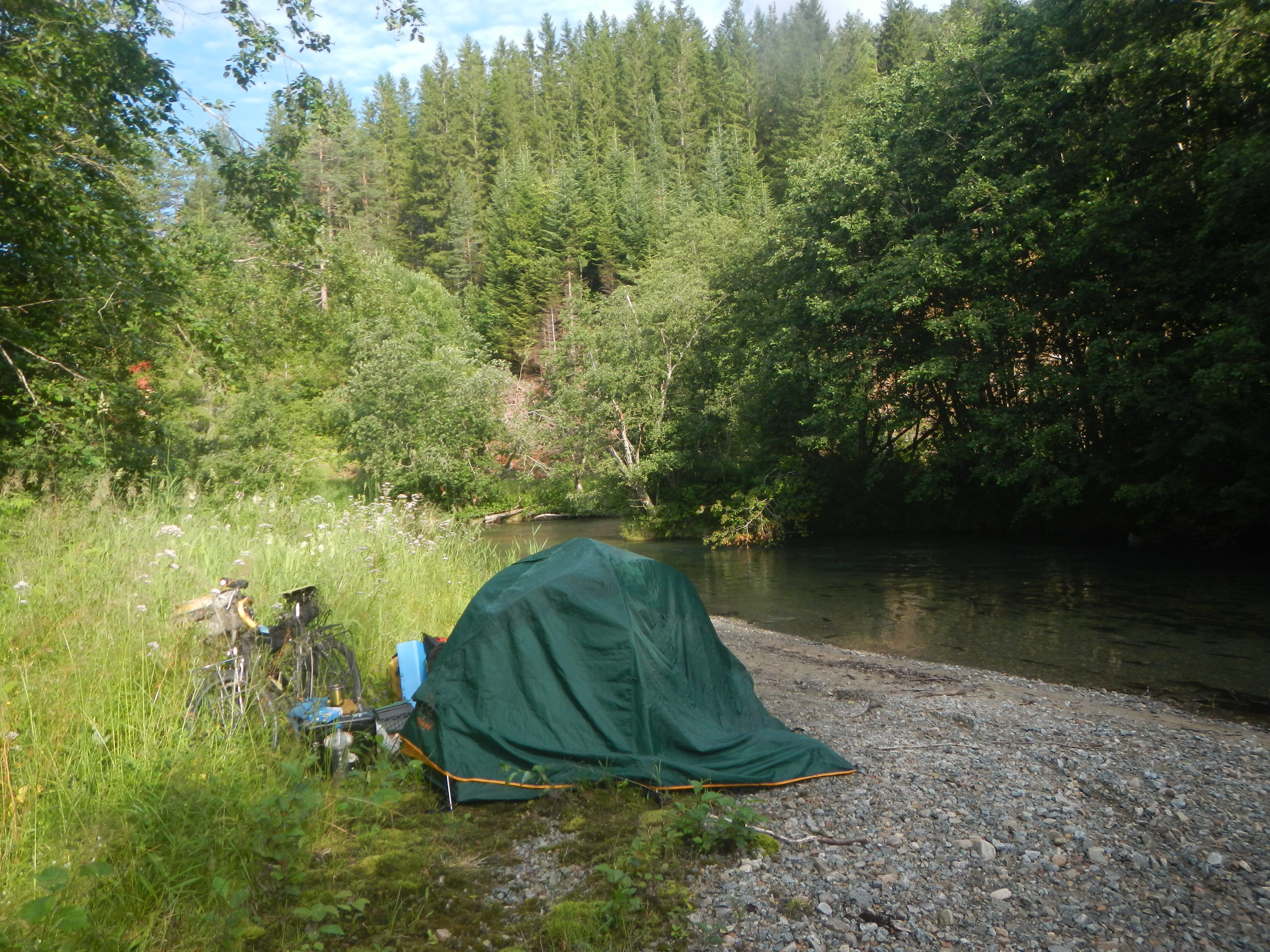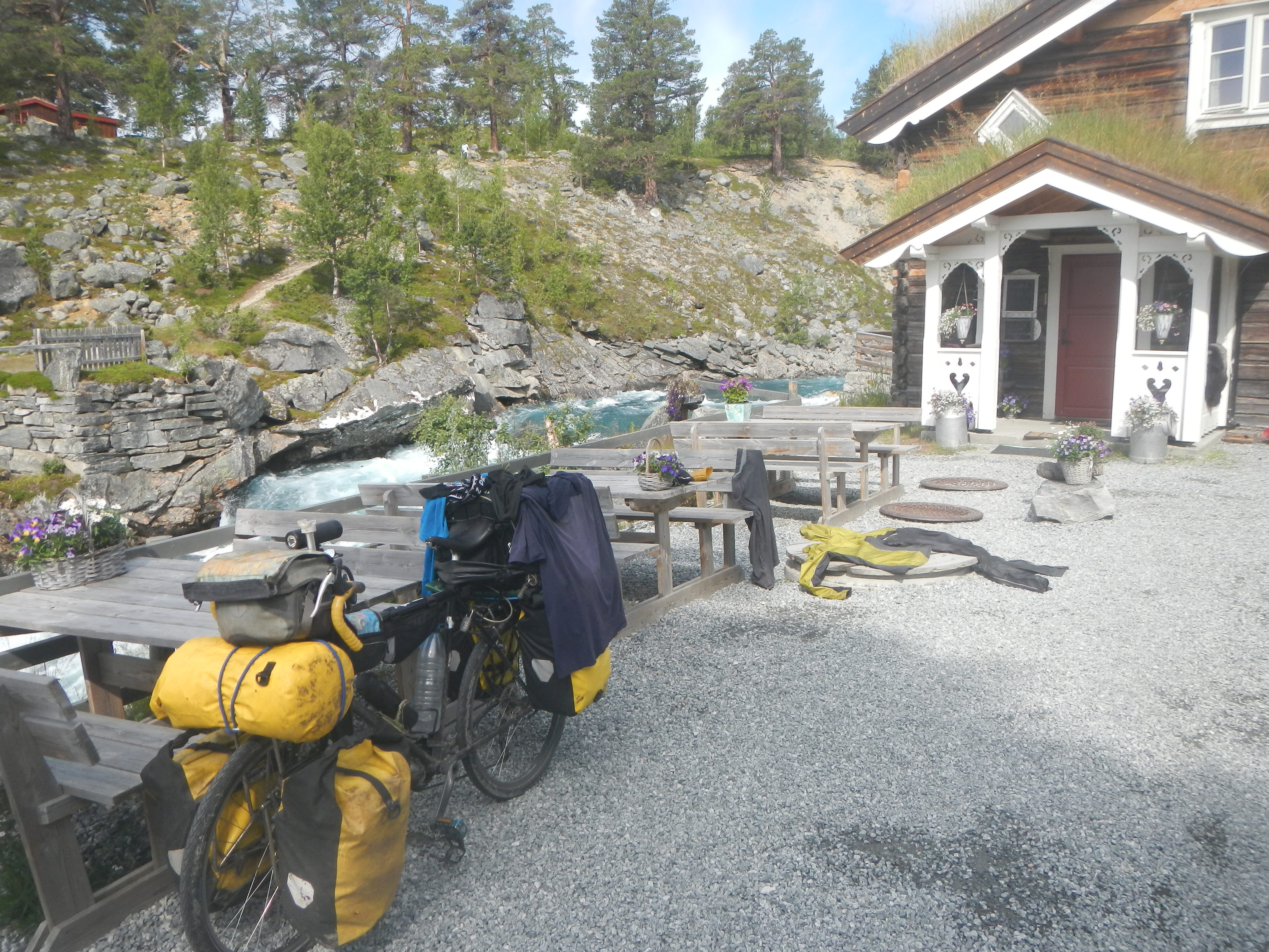 とにかくアップダウンが厳しいと聞いてたノルウェーだが、川と湖沿いばかり走っているためか大変だと感じるような坂道は出てこない。むしろ物価調査でスーパー入ってその値段の高さの方がよっぽど大変だという気持ちに。