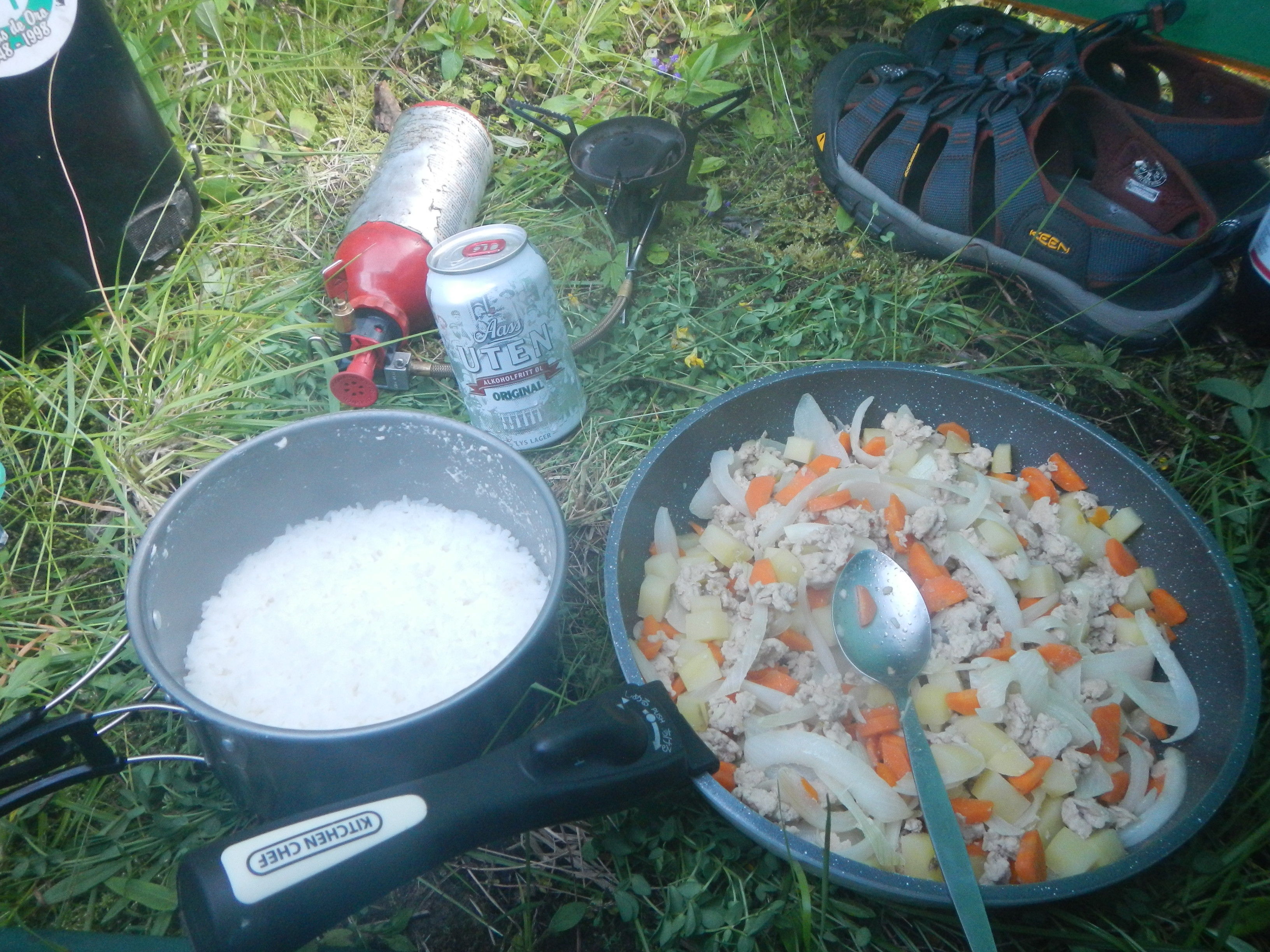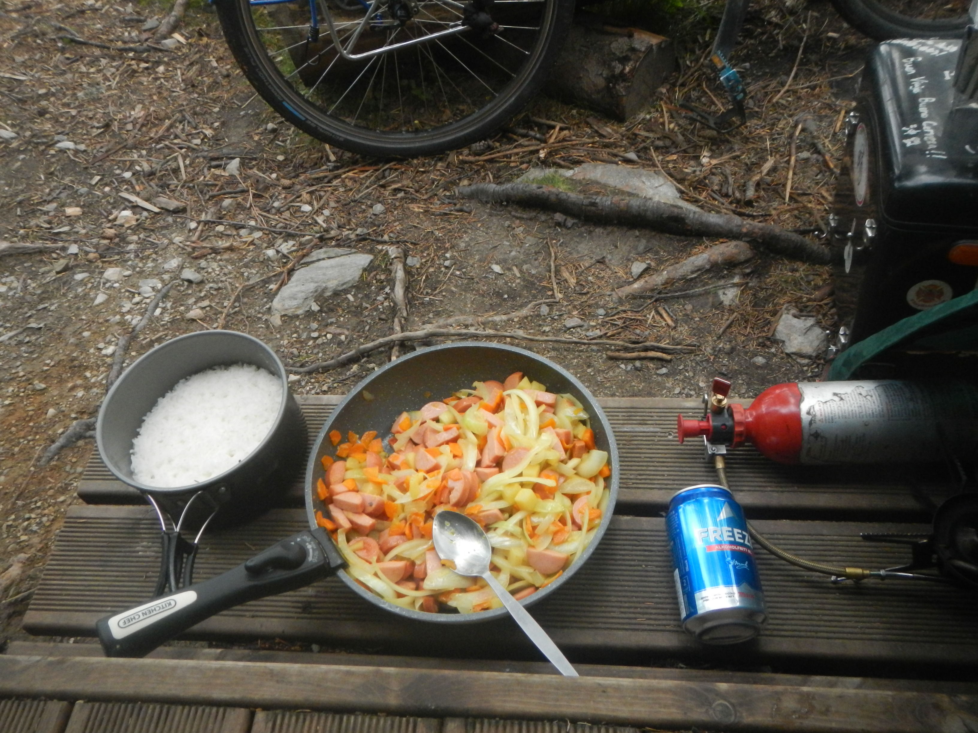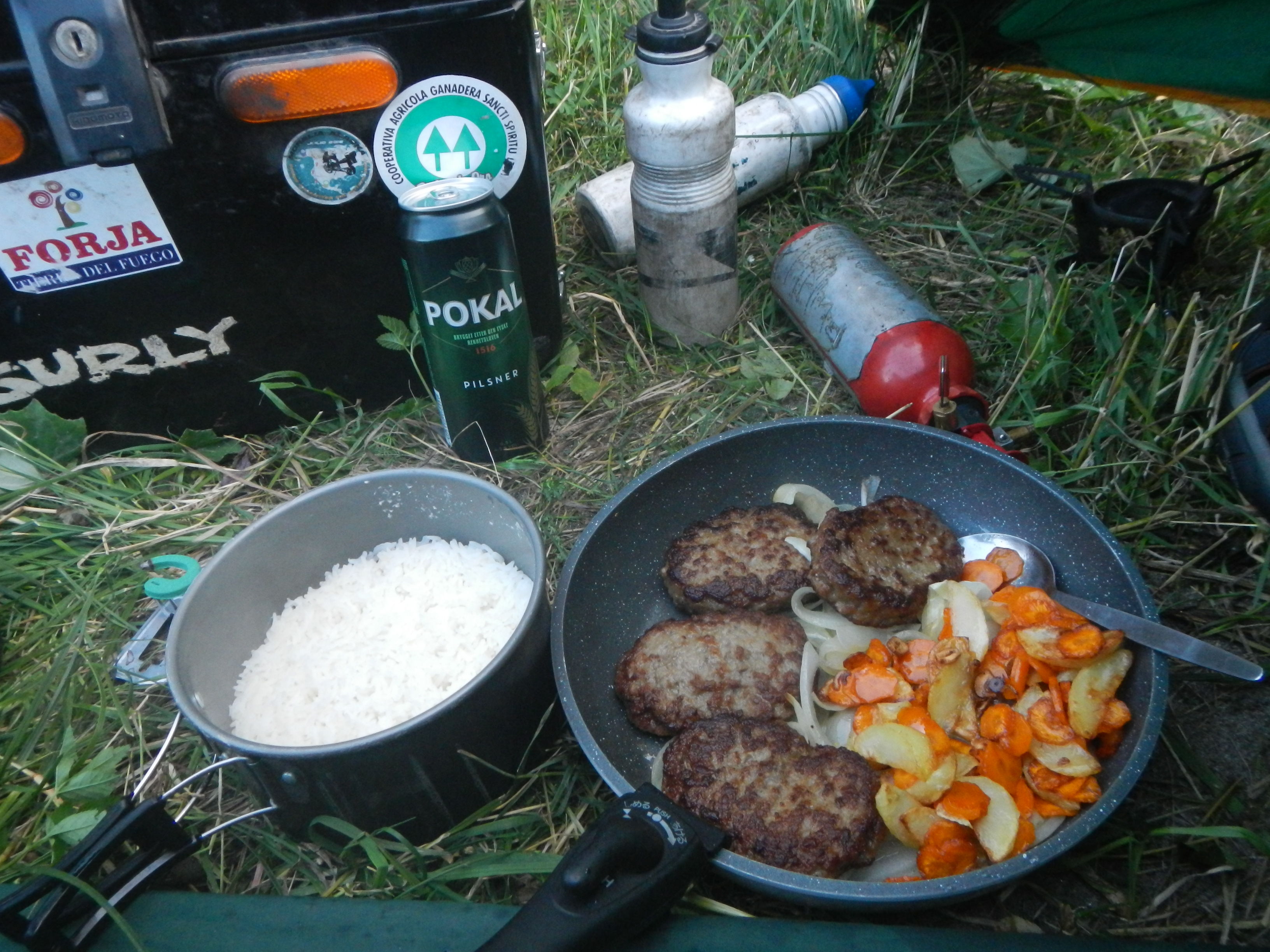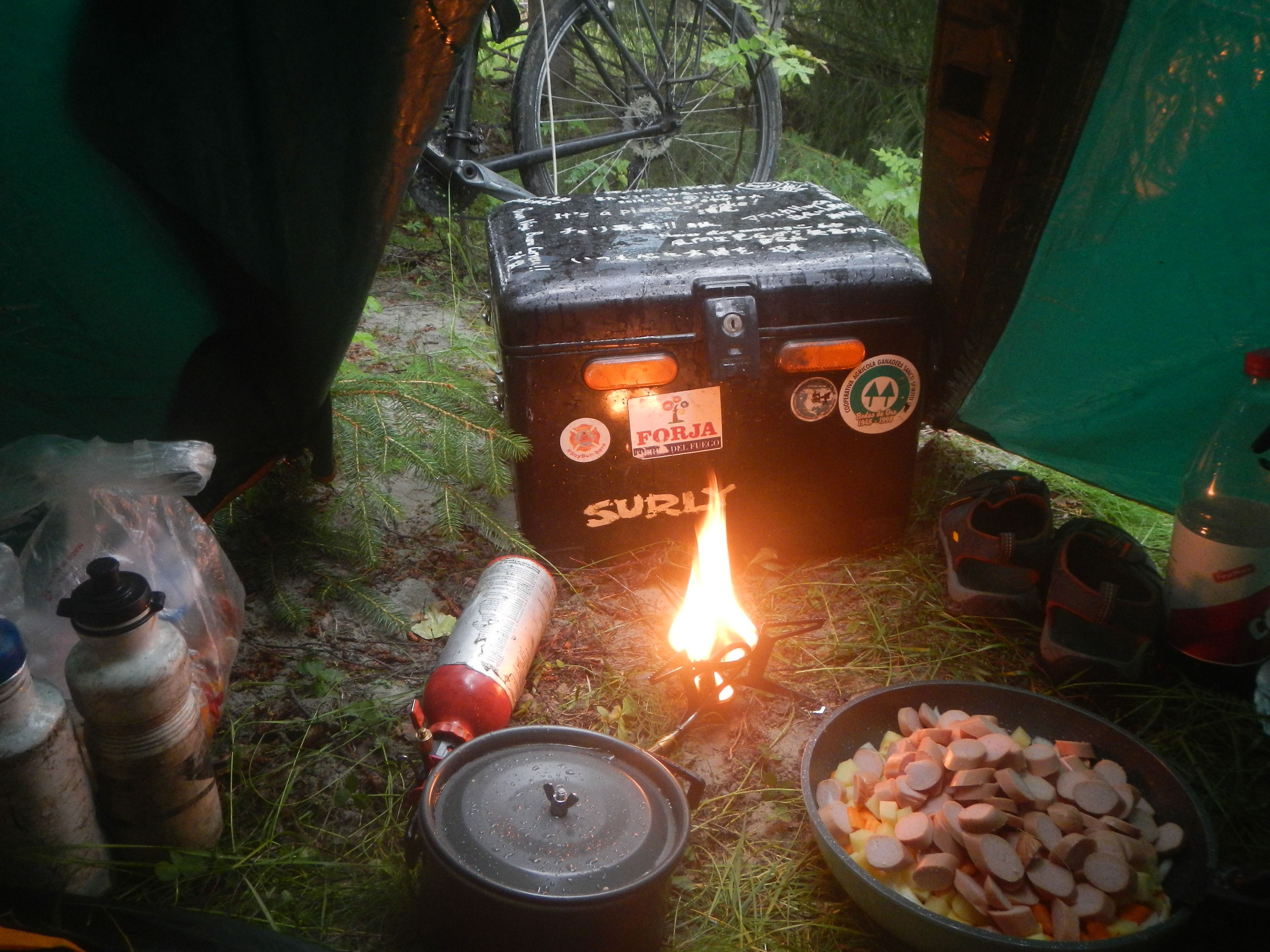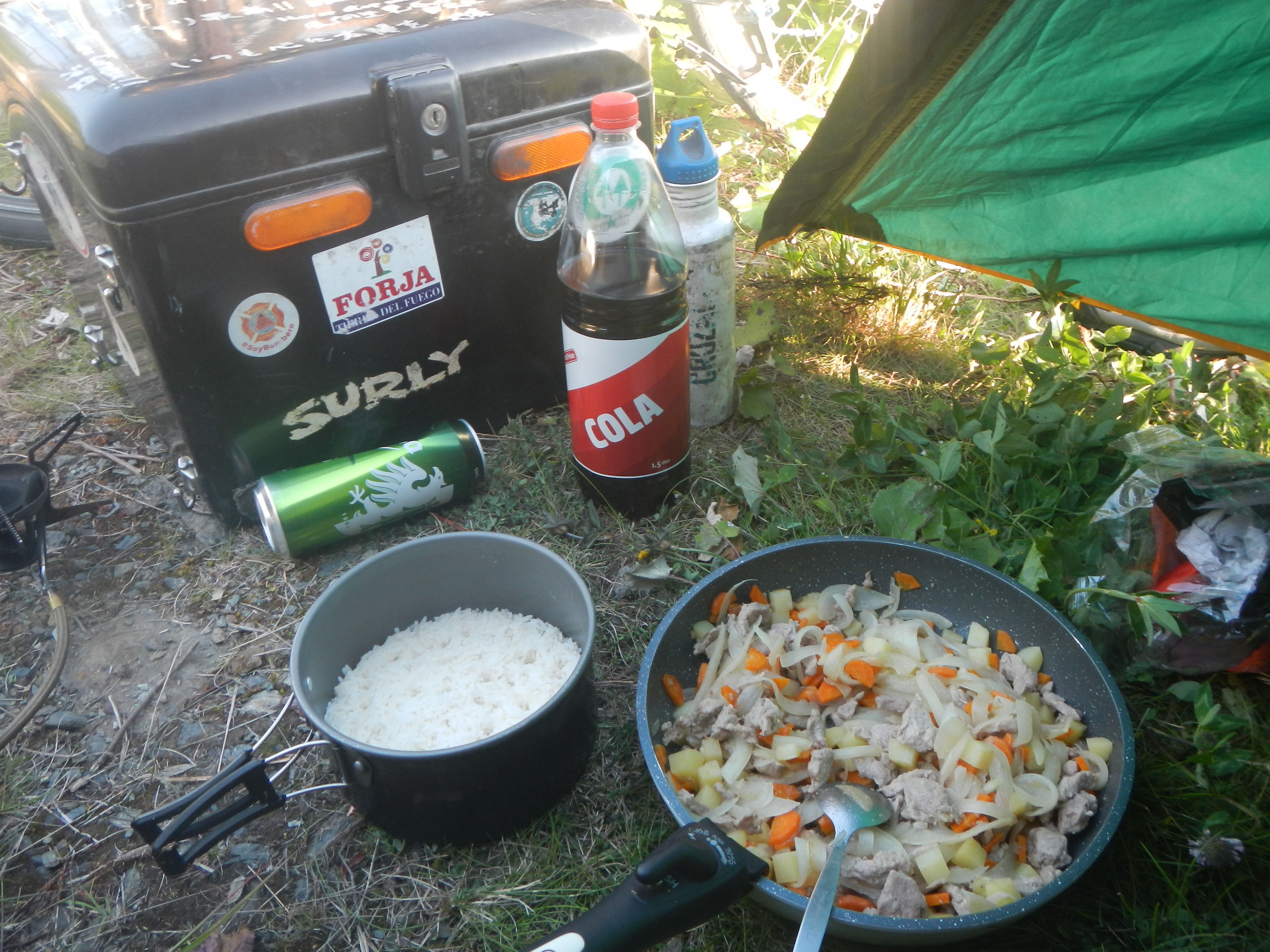 泣く泣くボトルだけ携行して麓の町まで自転車走らせ、今度こそガソリン購入して戻ってくるまでに約1時間半。早めに休むとかそういう目論見が全て潰えた瞬間である。