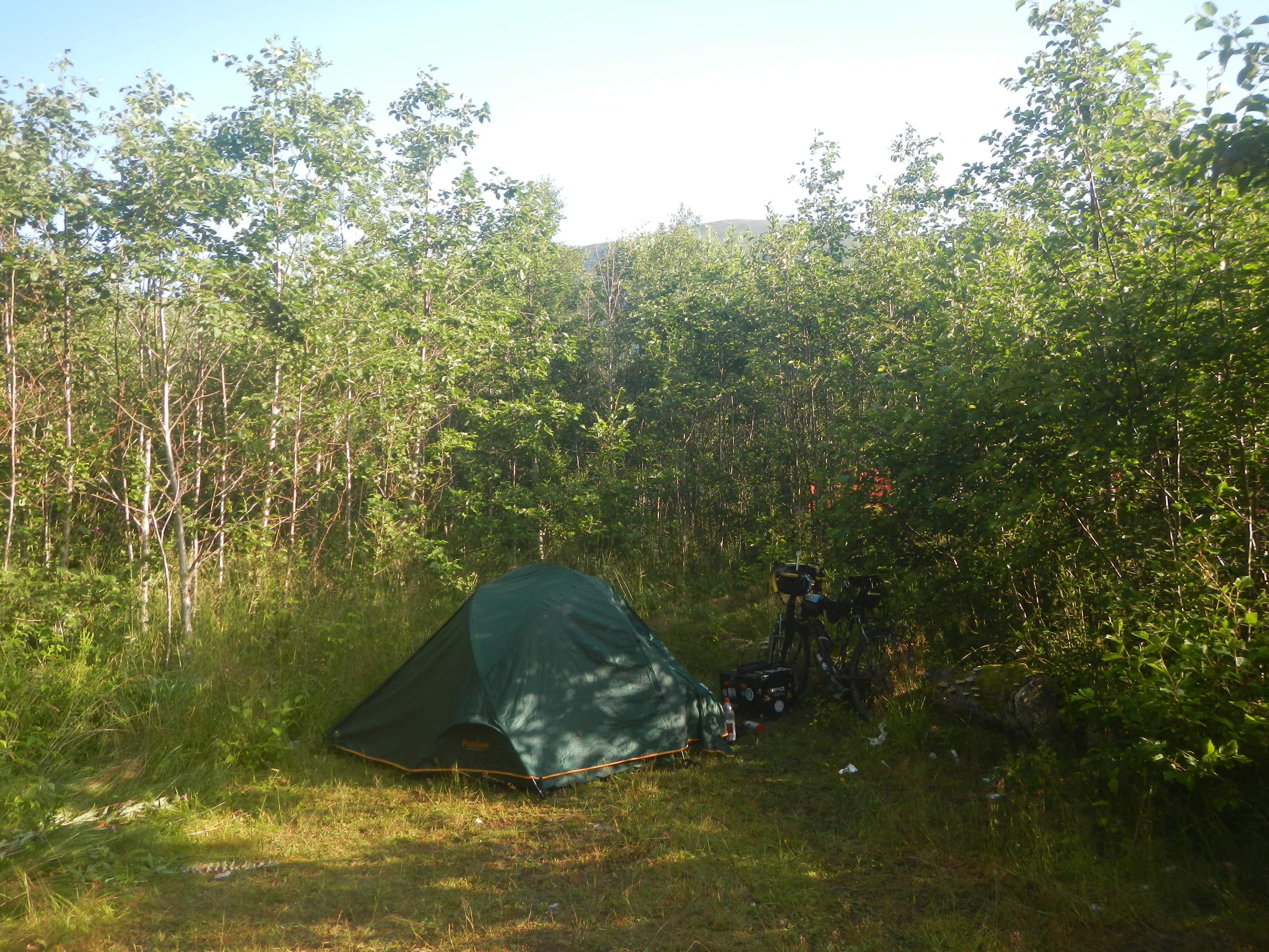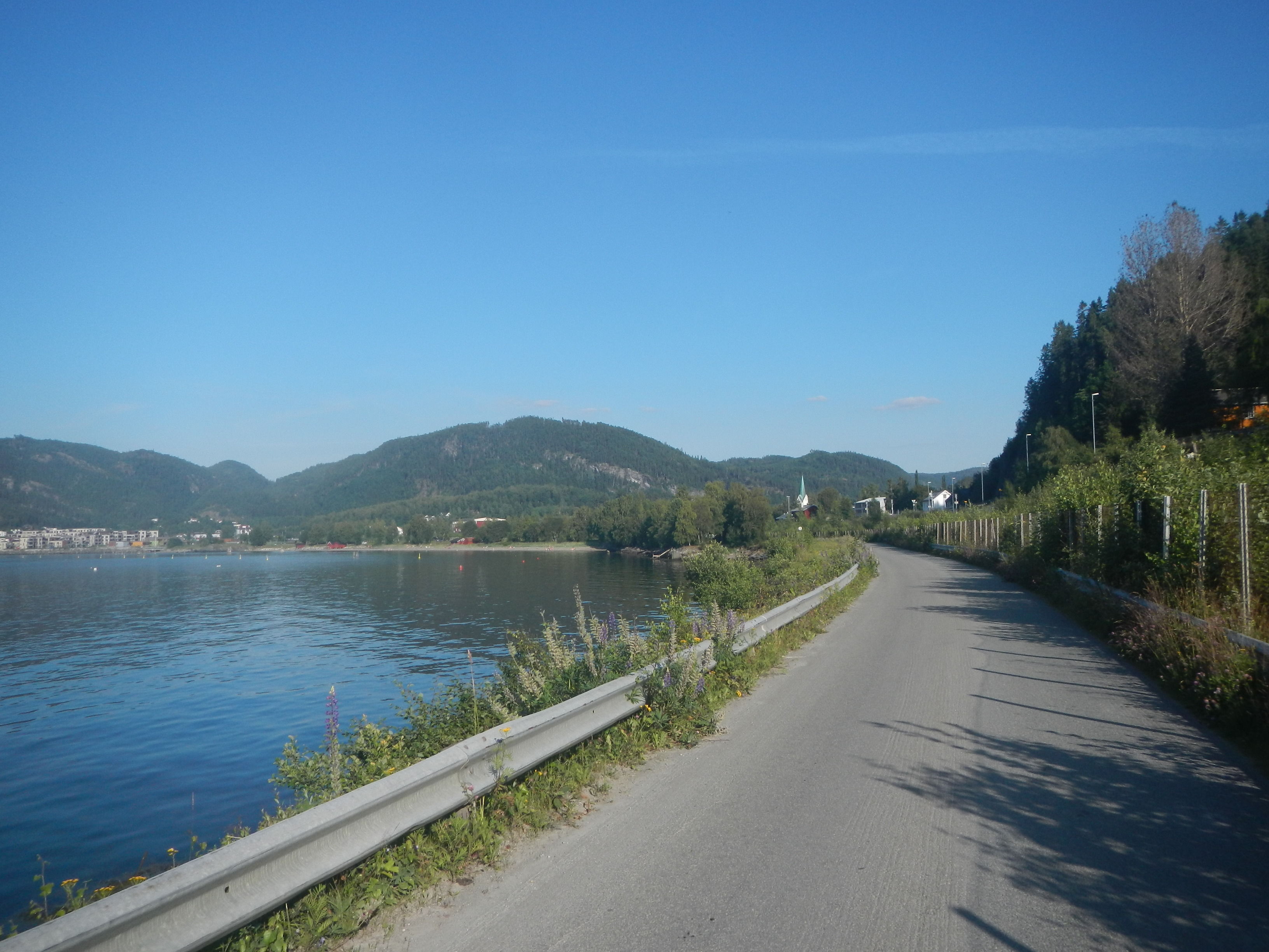 多少は緯度も下がったからか、流石に夏の今の時期なら朝のノルウェーでも寒さはない。まだ朝の冷たい空気が残ってる中で陽光が降り注ぐ気持ちよさ。これはノルウェーの自転車走行が楽しみになってきた。