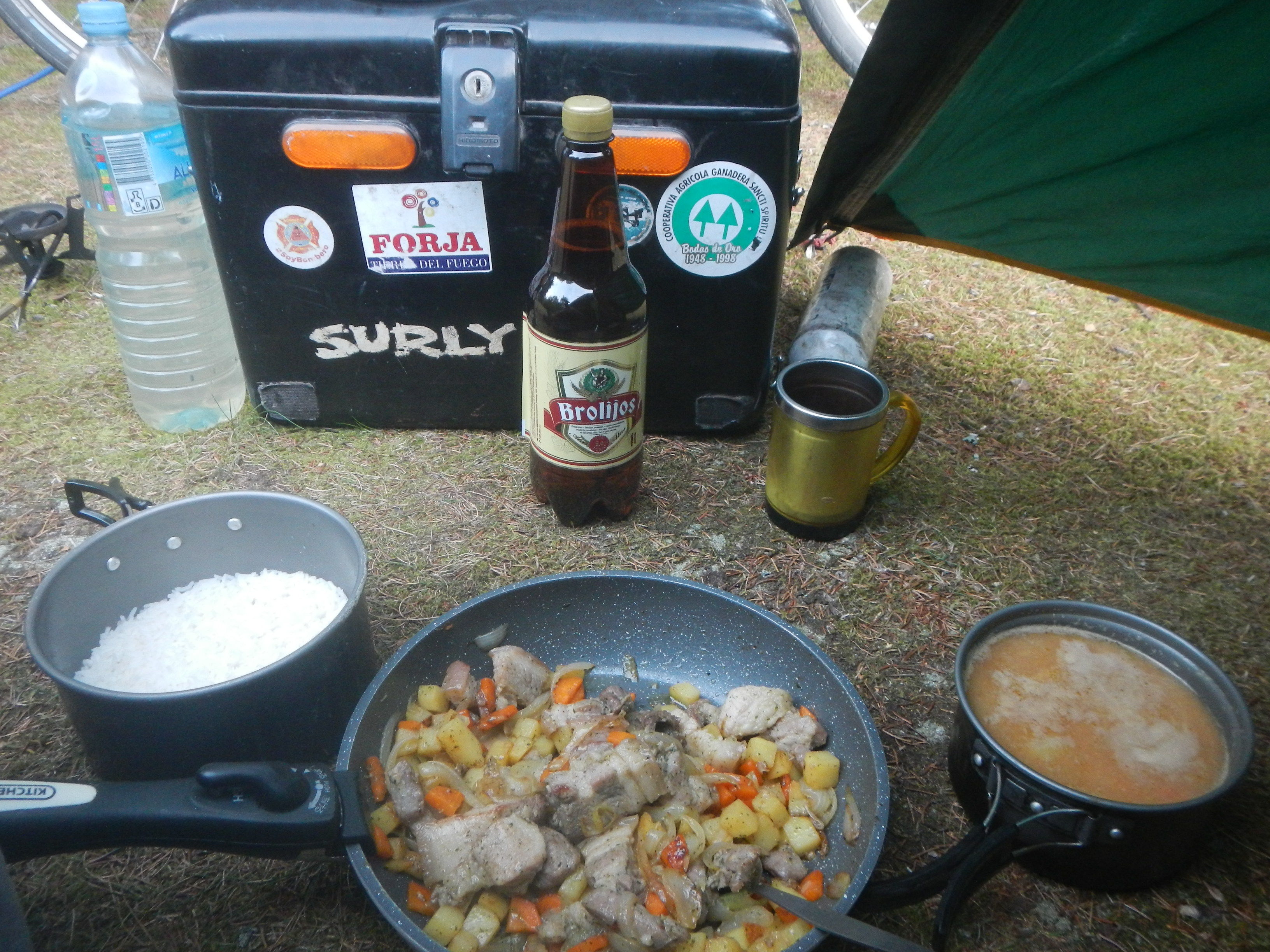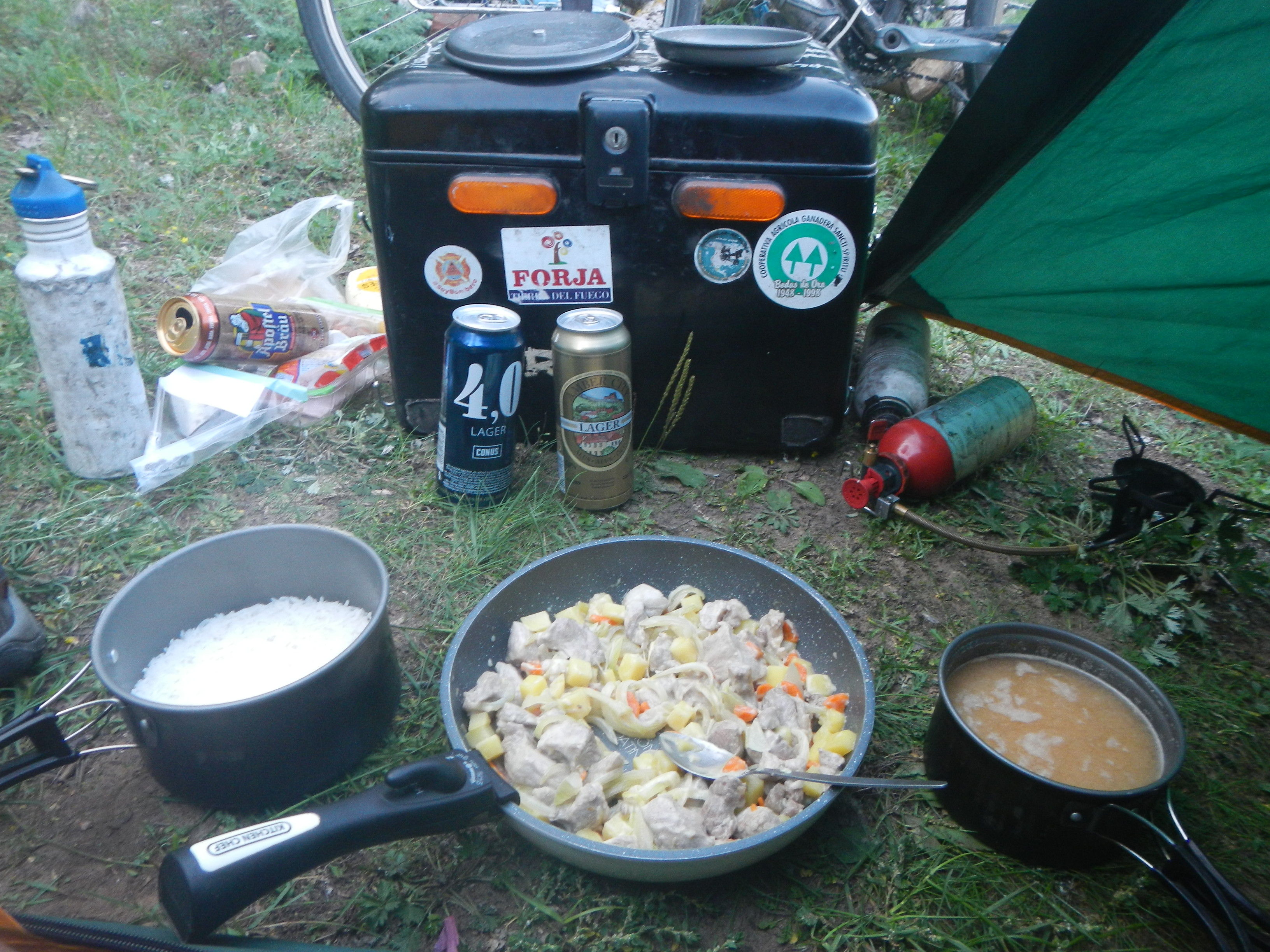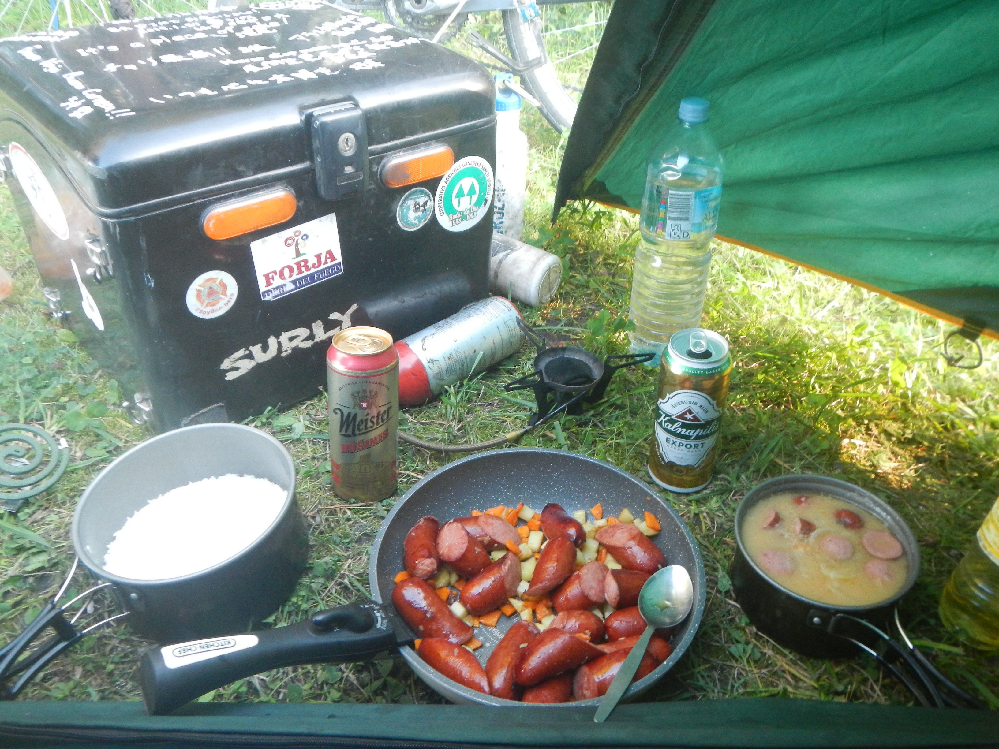 やっぱり海水浴場になってて何人かいるのだが、昨日のことを反省し明るいうちから迷うことなく隅っこにテント張って夕食作り始めた私。とりあえず北欧抜けたらもうちょっと慎重に野宿地選んでいこうと思います。