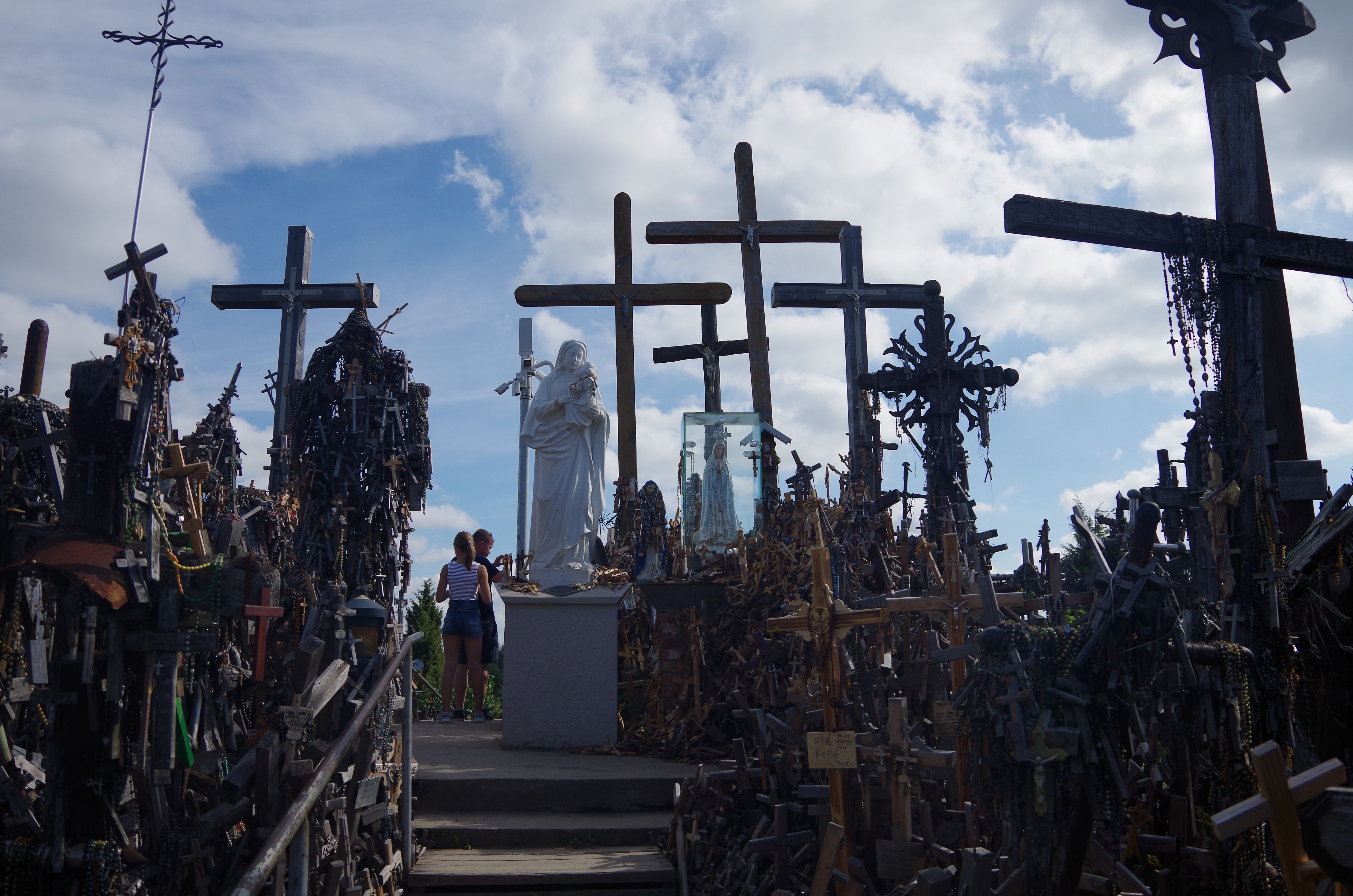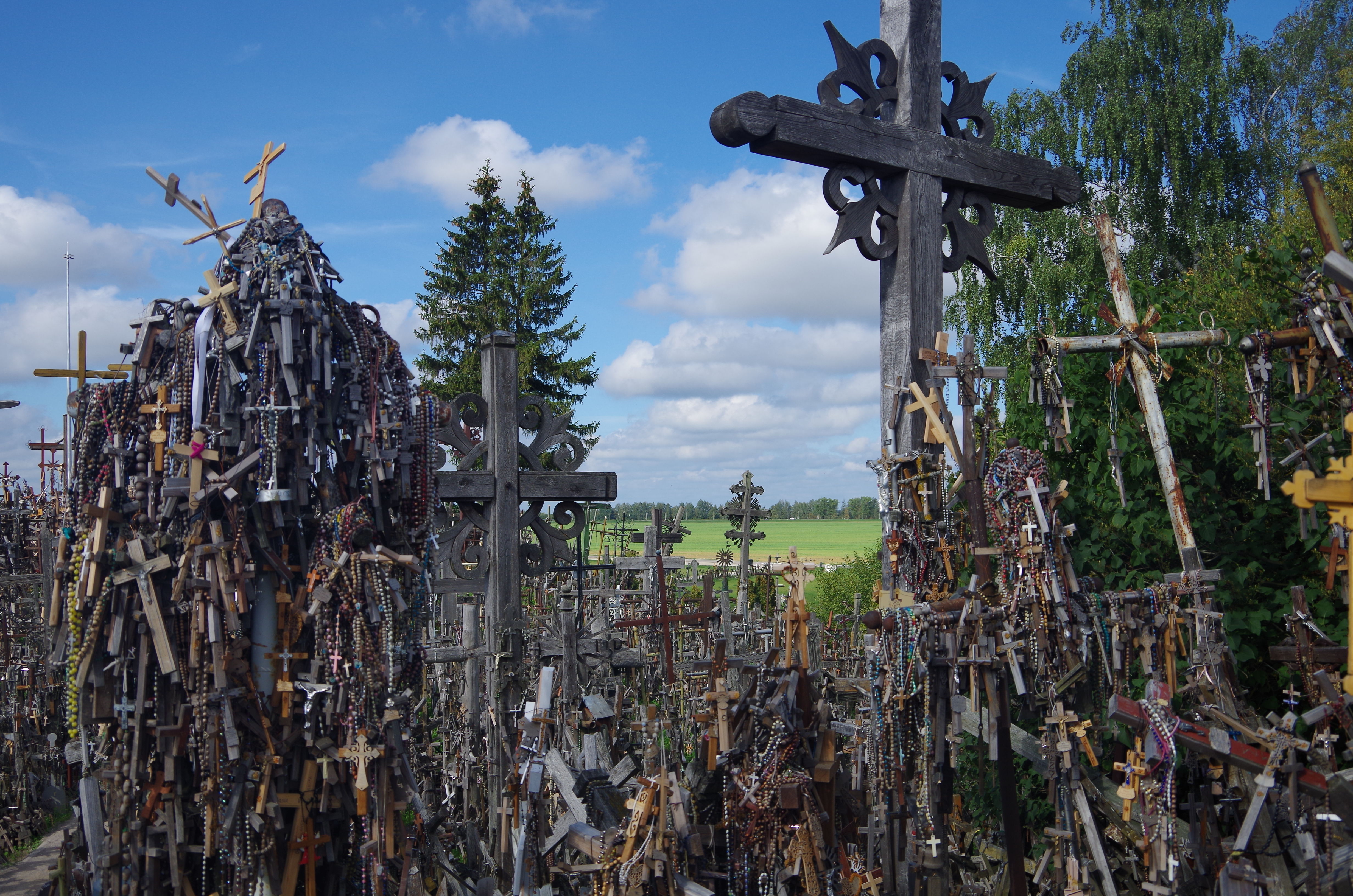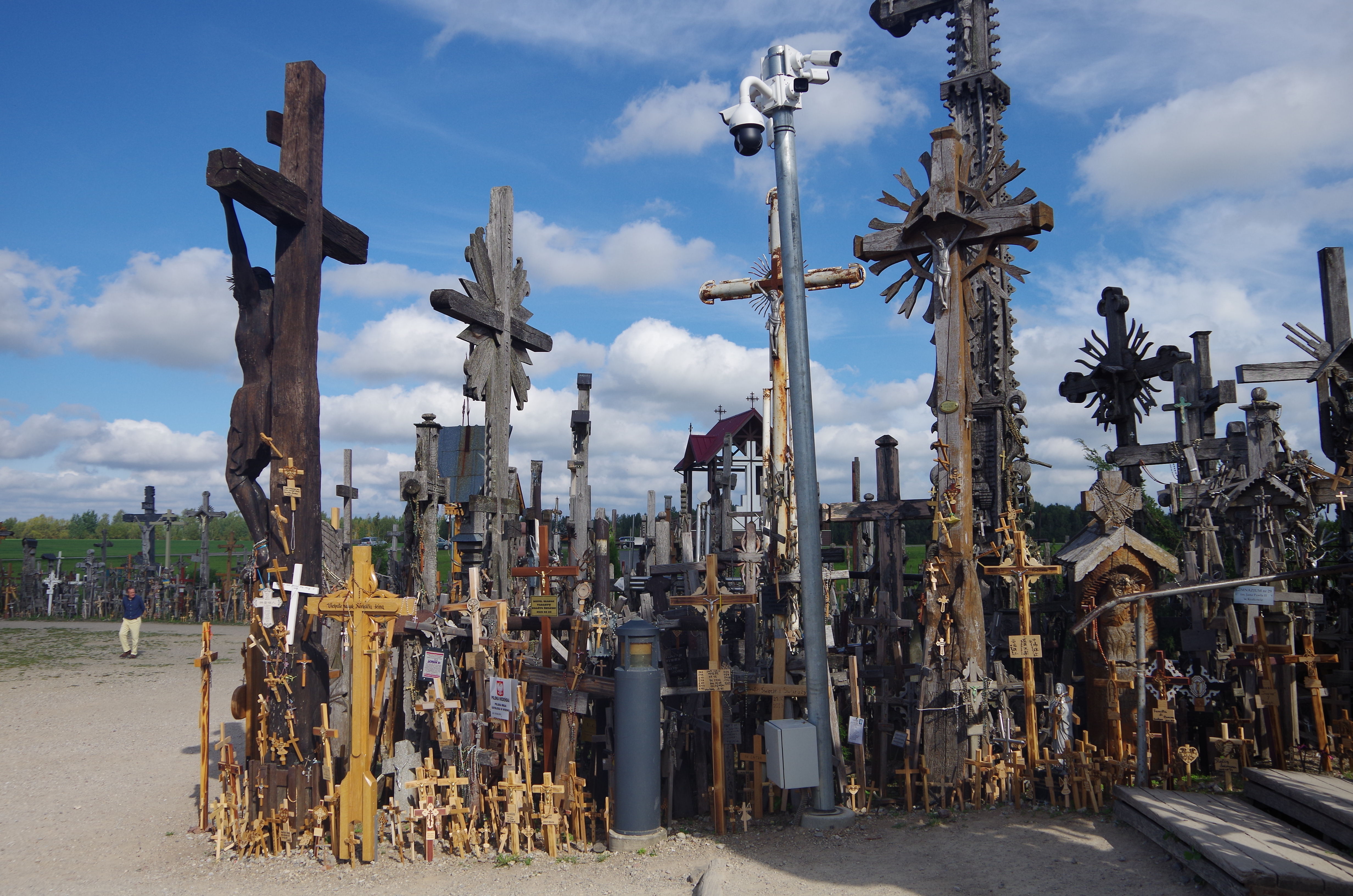 さて曲がり道がないまま30km。ちょっと別の道に入ってUターンした先に待つは十字架である。いやまぁキリスト教圏で十字架なんぞどこ行っても見ることできるがここの丘にはそれこそ無数に十字架が刺さっており、それが高じて無形文化遺産になってしまったレベル。