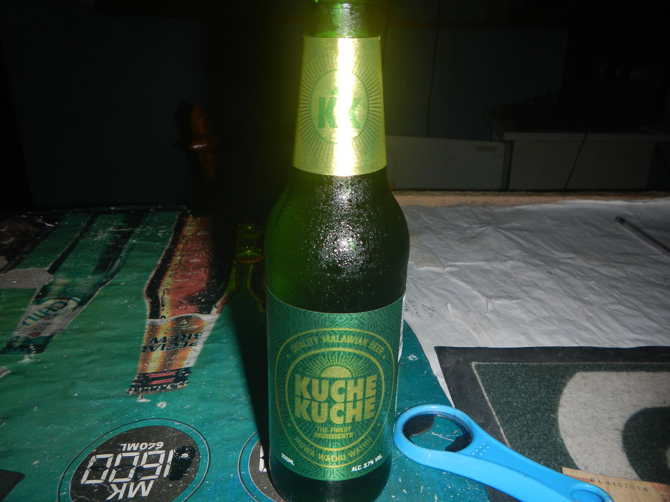 ようやく出てきた宿にチェックインして今日がマラウイ初ビール!クチェクチェという名前のビールは軽過ぎて水っぽくイマイチだったが、カステルビールはガツンとしてるお味で「男らしいビールだろ!」というのは隣のオッちゃんの弁。