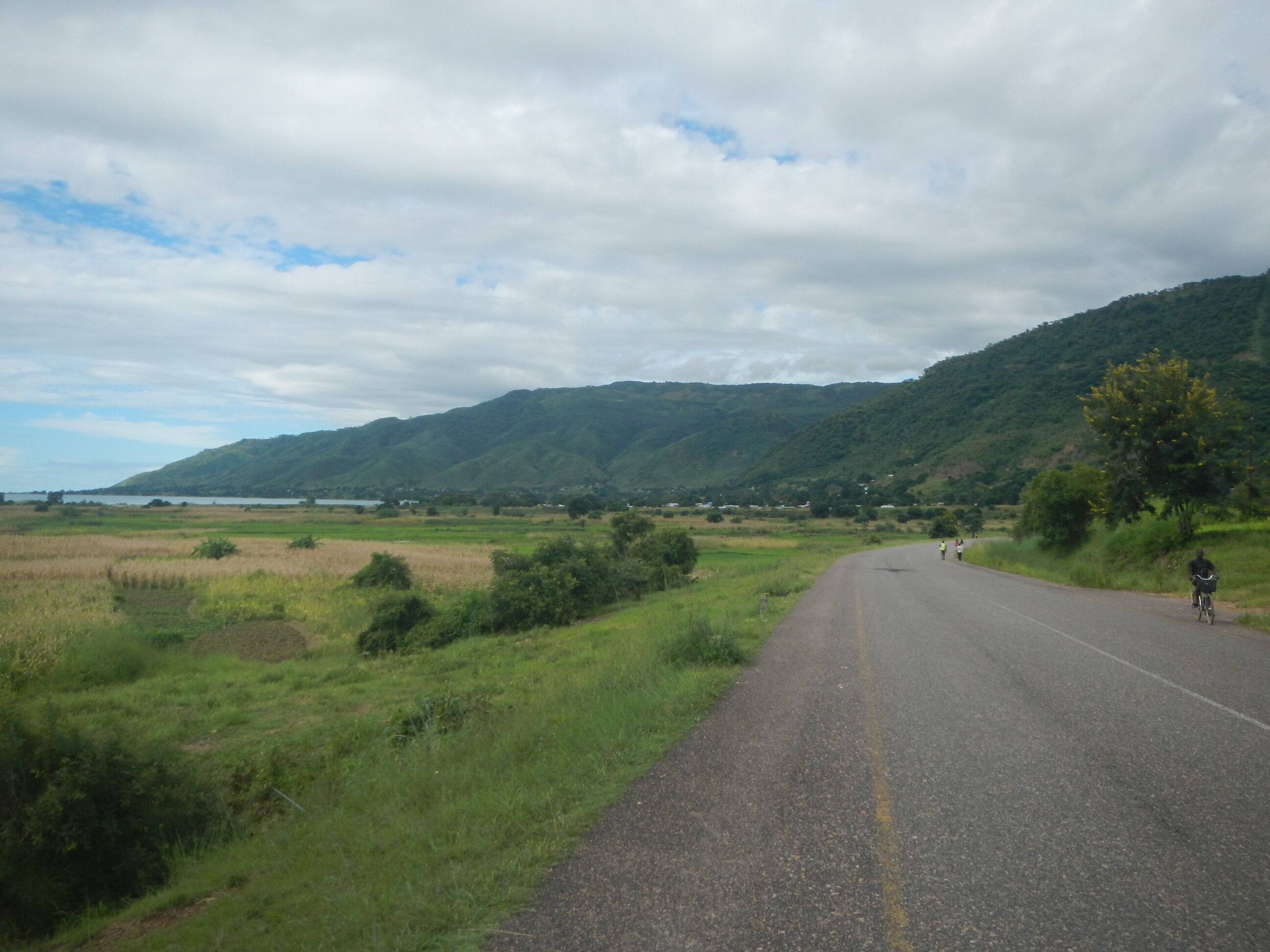 マラウイ湖の湖畔に程近い場所を走っているためかほとんど平坦路の道。車両の数はガクッと減って、その割に道路がしっかりしてるためノンストレスで快適に自転車が走ることができる。