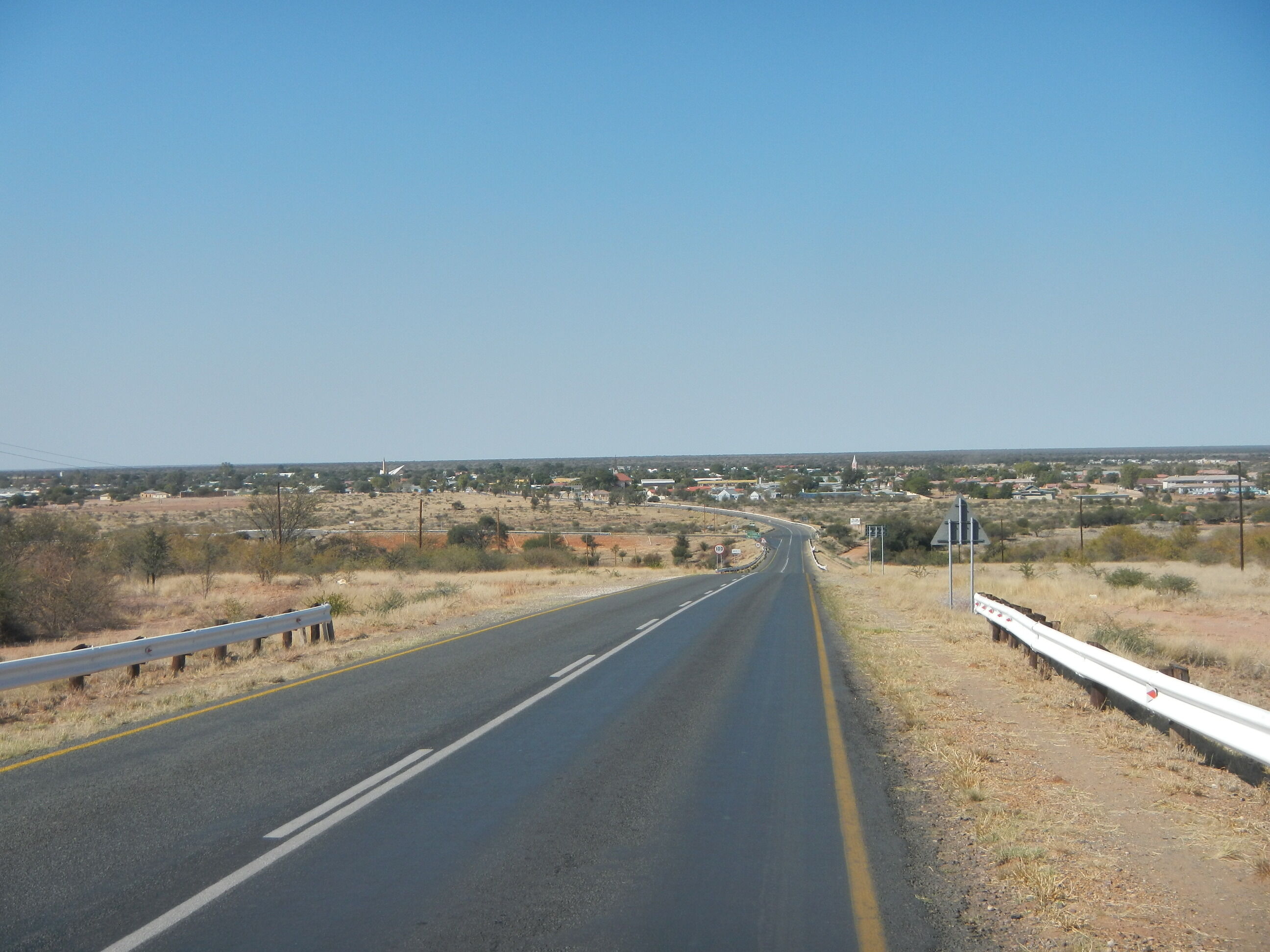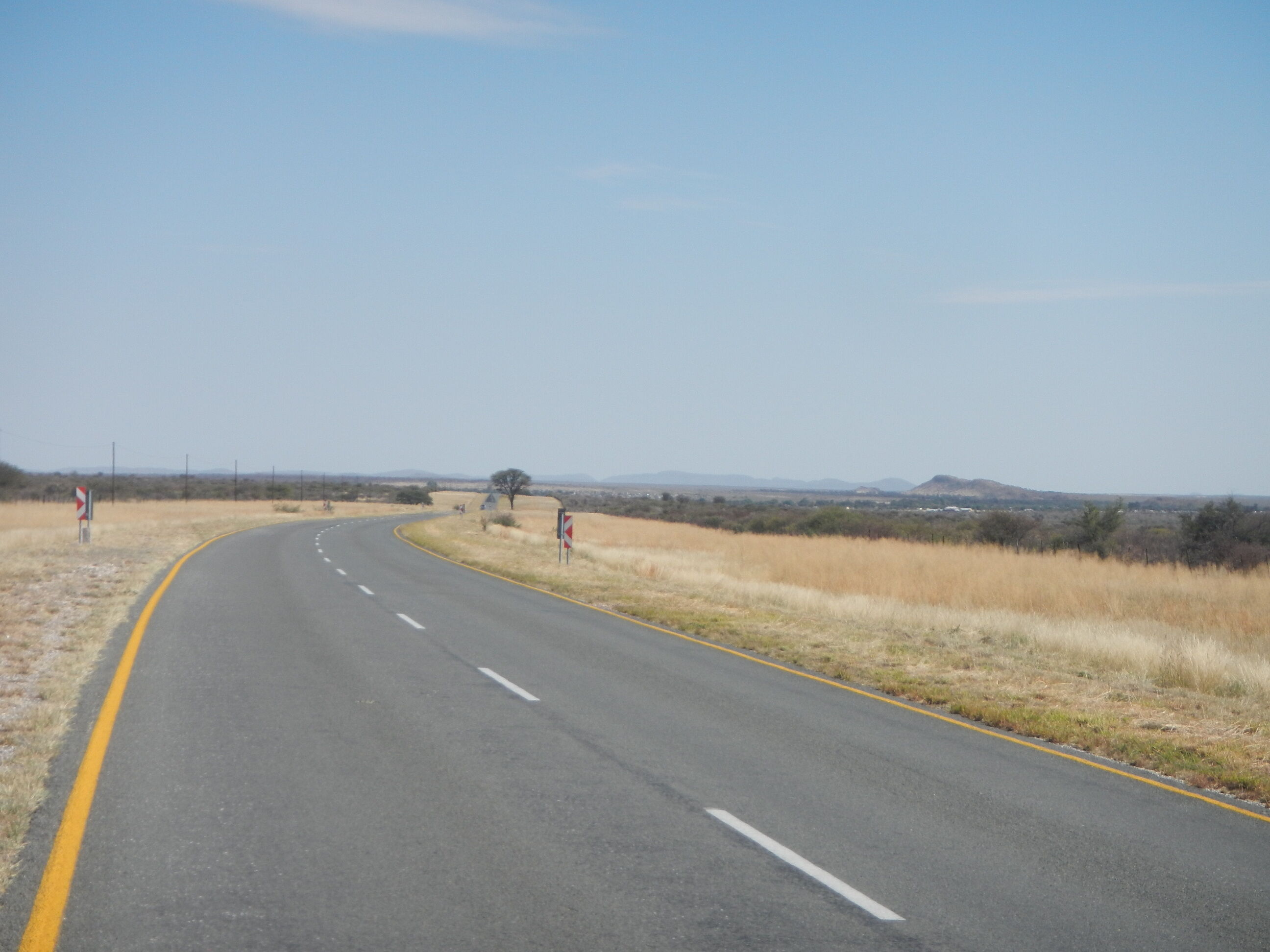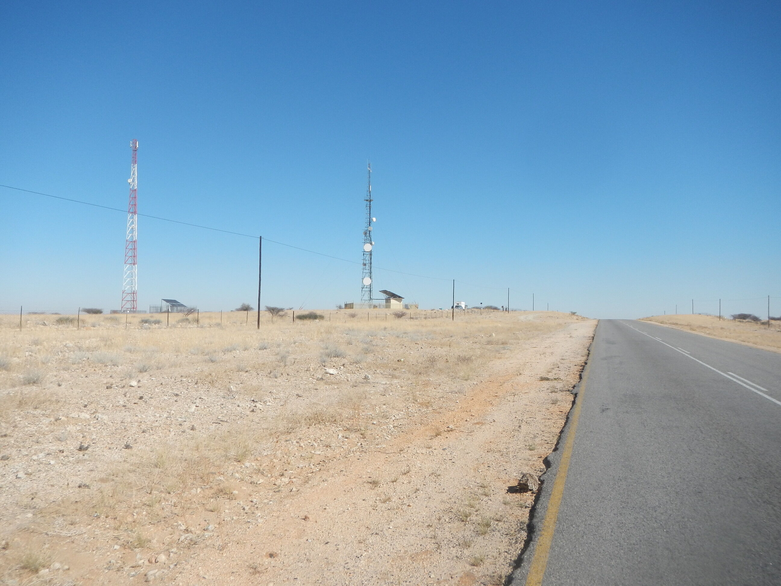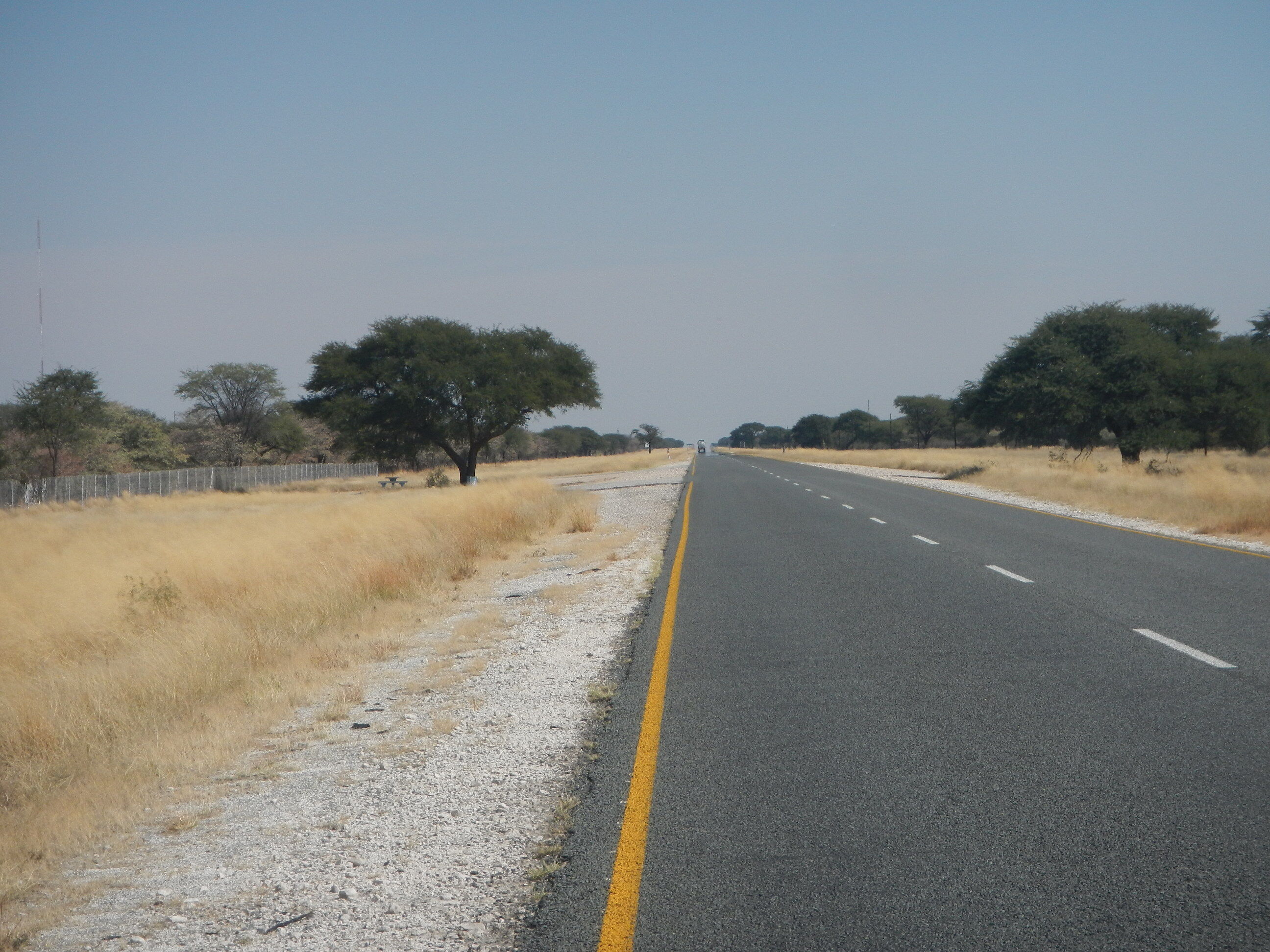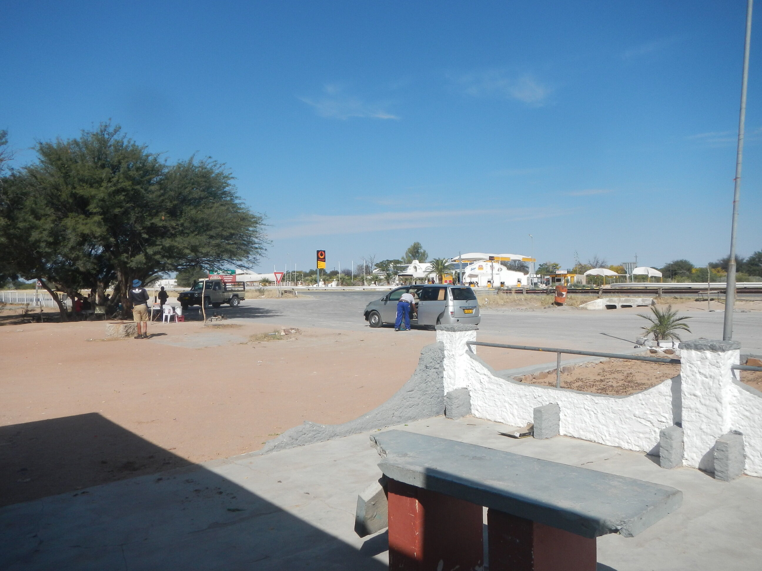 20kmほど進んだところで、ナミビア方面へと向かう道路が出現する三叉路に差し掛かる。こうした主要道路同士がぶつかる交差点というのは大きな町だったり様々な施設が立ち並んでいるのが常だけど、ボツワナじゃそうはいかない。