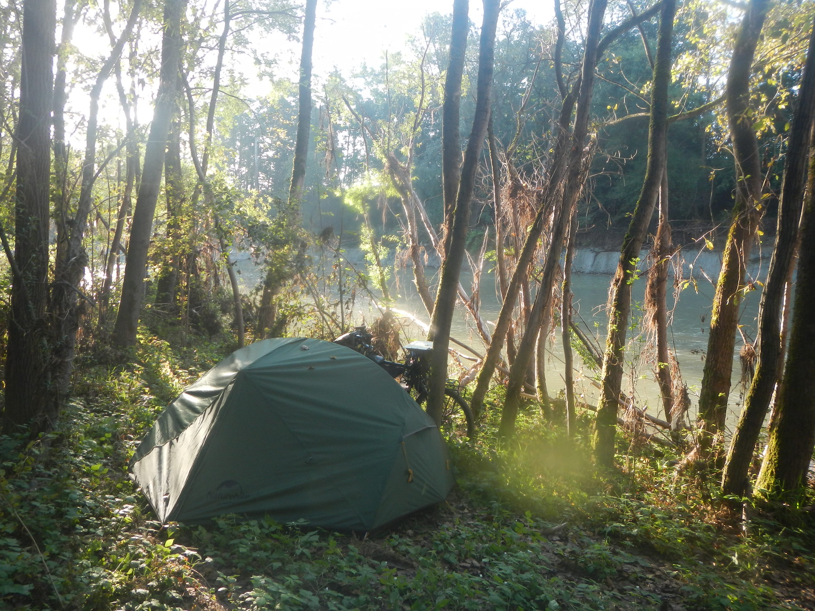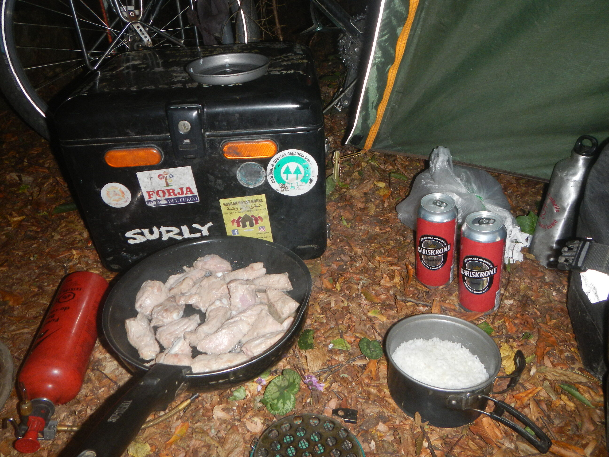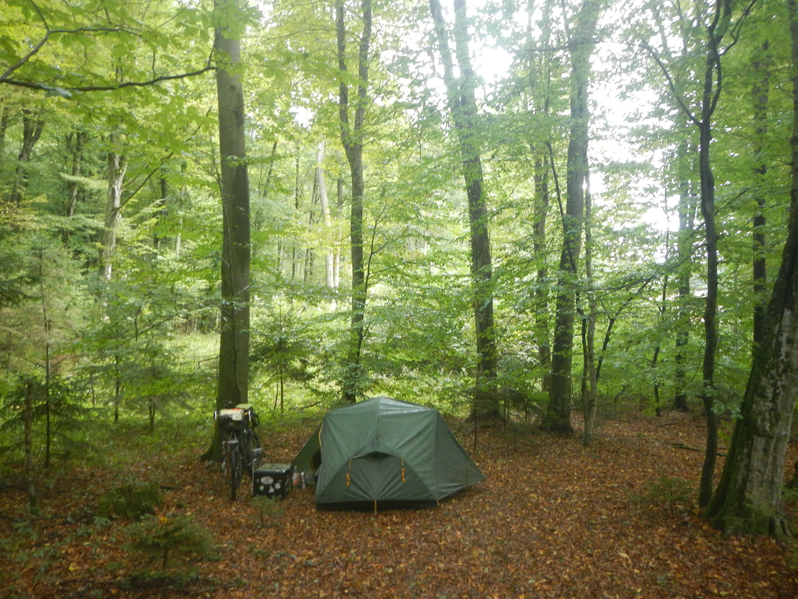 結局あまり気持ちよく野営できそうな場所がないと判断し、町を抜けた先にある森林地帯の奥まった場所に入り込み改めてテント設営。森の奥だと風もほとんど吹いてこない。