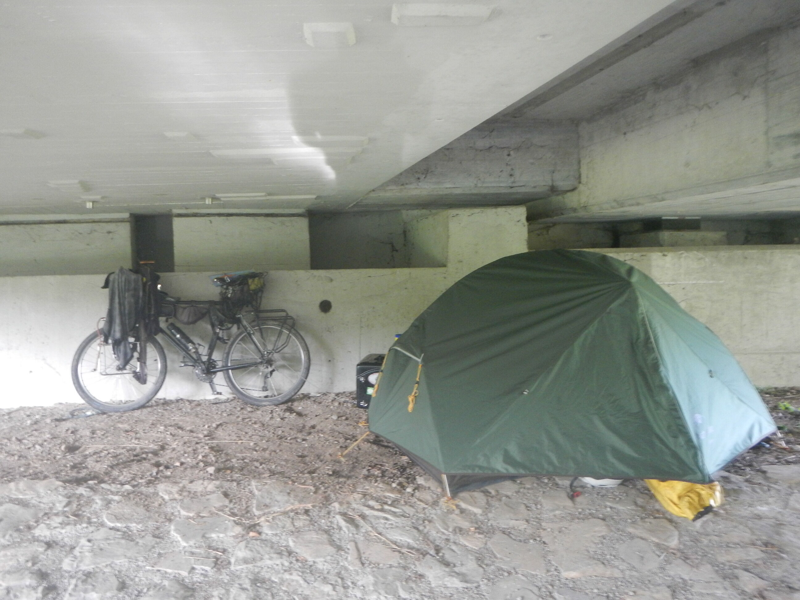 町から南下しDravinjaという川沿いの道を進みながら出てくる橋の下をチェックして回る。3本目で良い感じにテント張れそうなスペースある橋が出てきたので、テント設営して本日終了と思ったのだが。