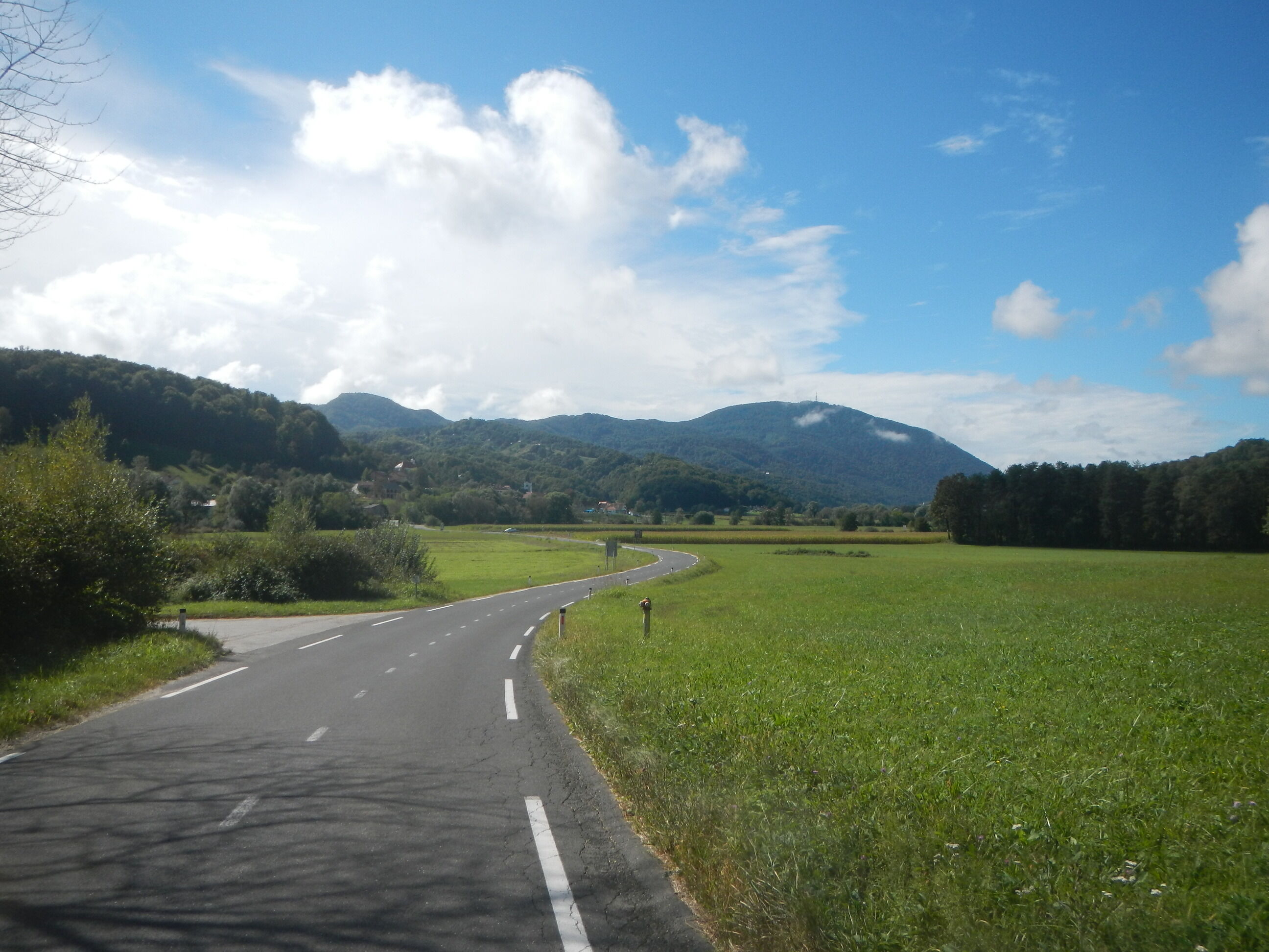 別にスロベニアは完全フラットな国というワケでもないようで、午後から徐々にアップダウンが入り混じる道へと変わっていく。まだその規模は数十メートル程度で小さなものなんだけどね。