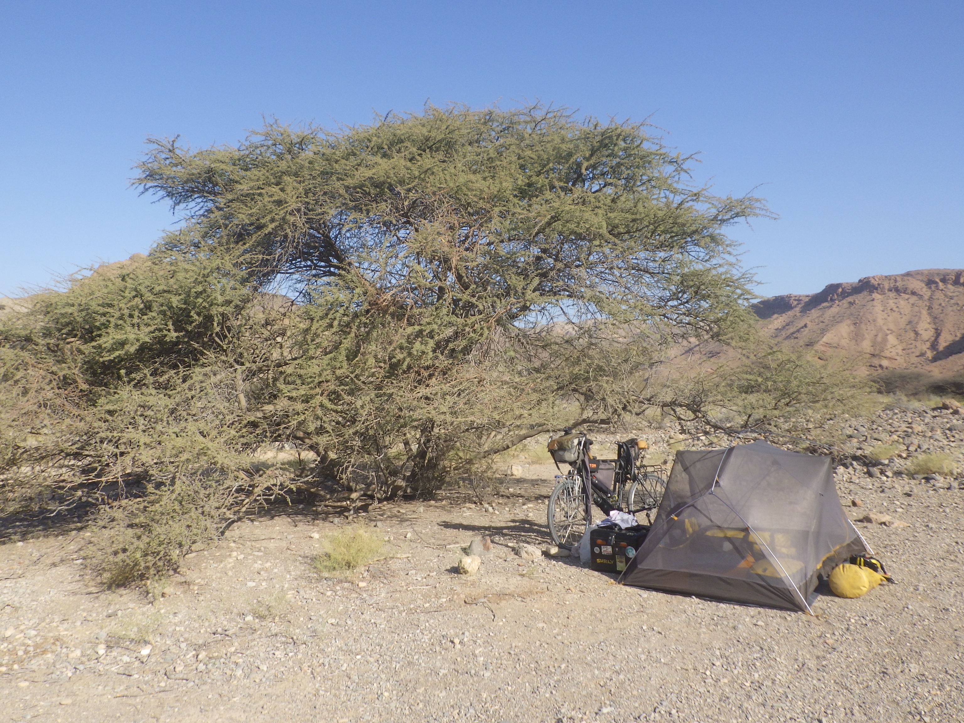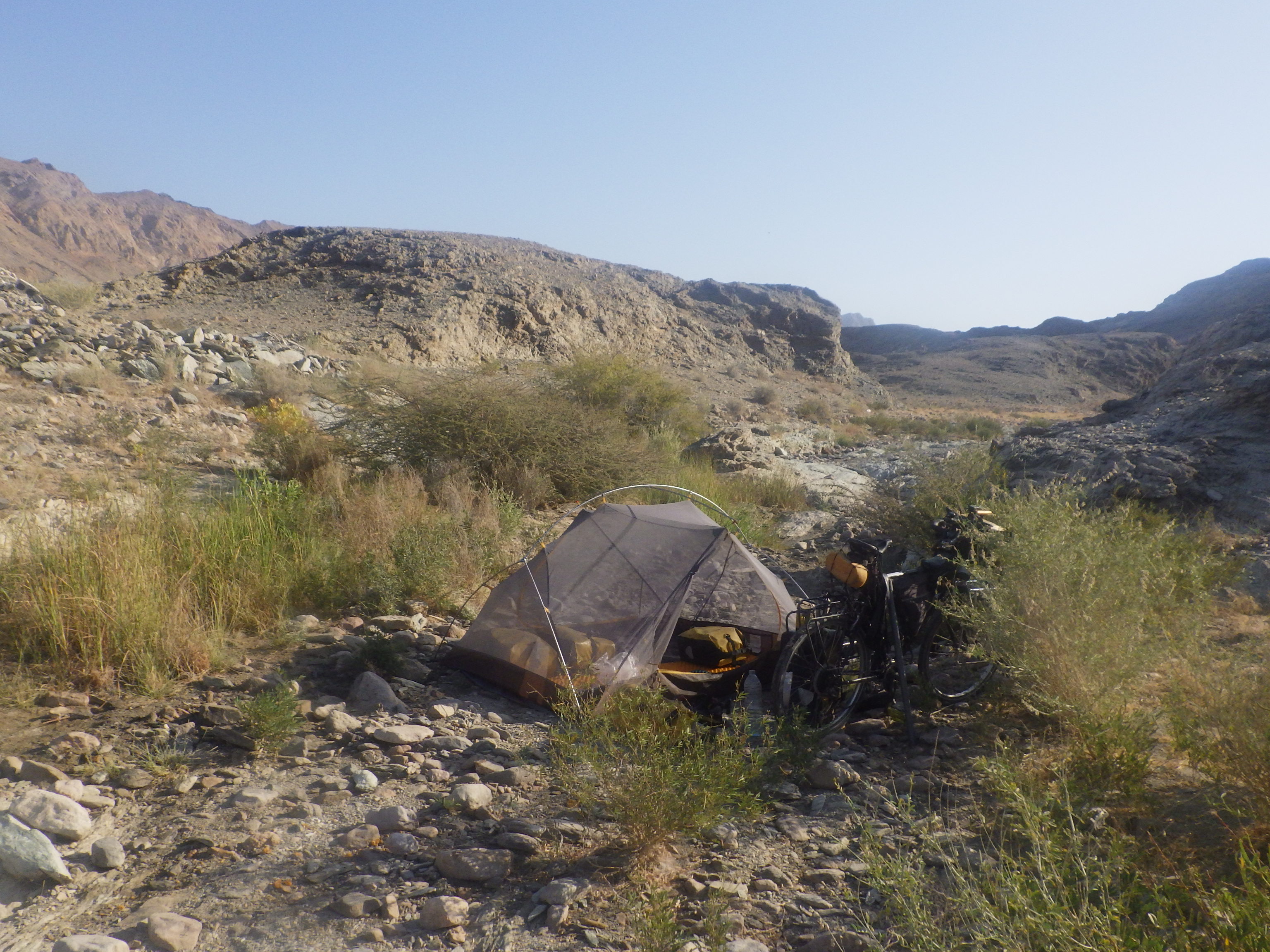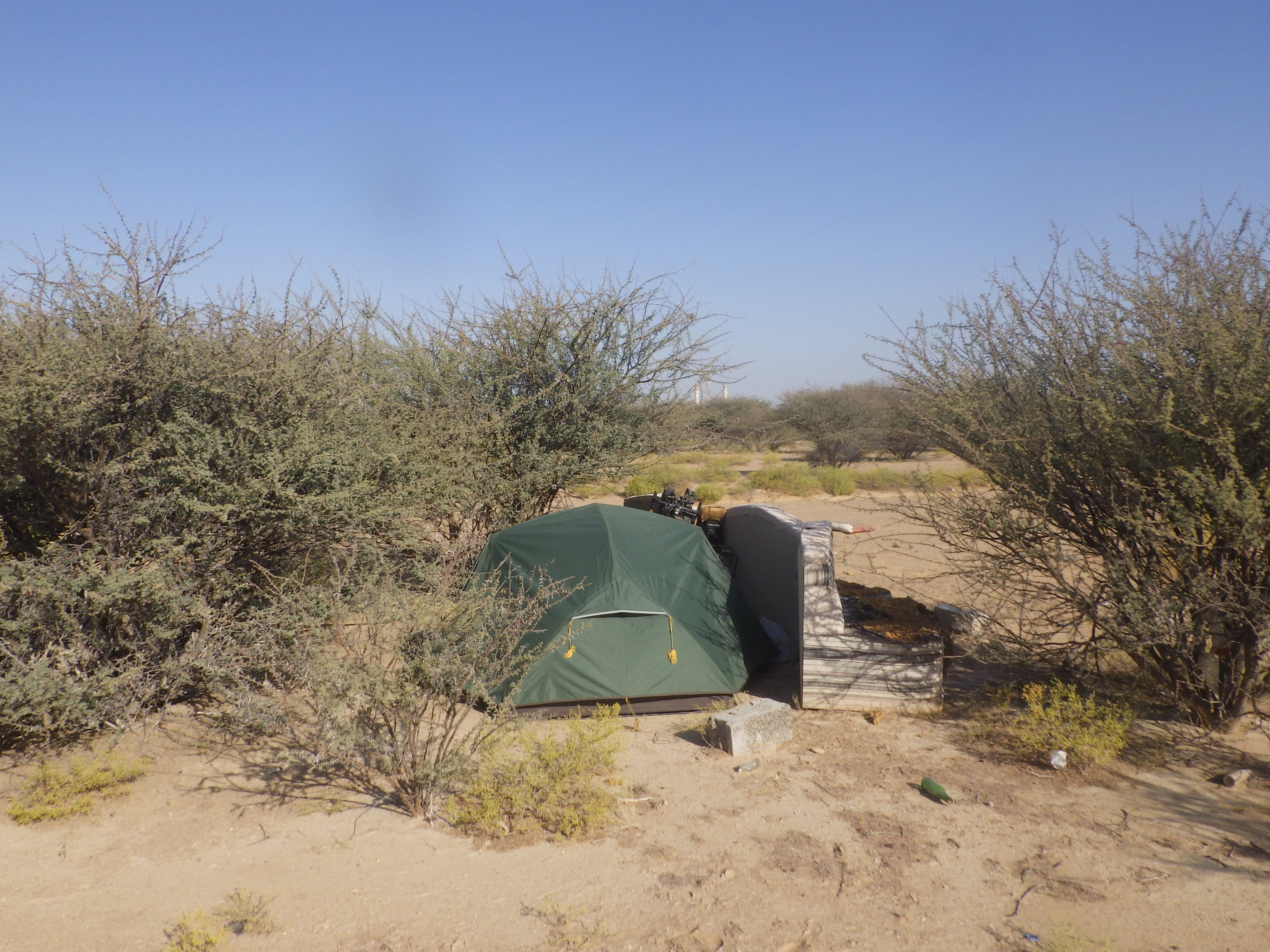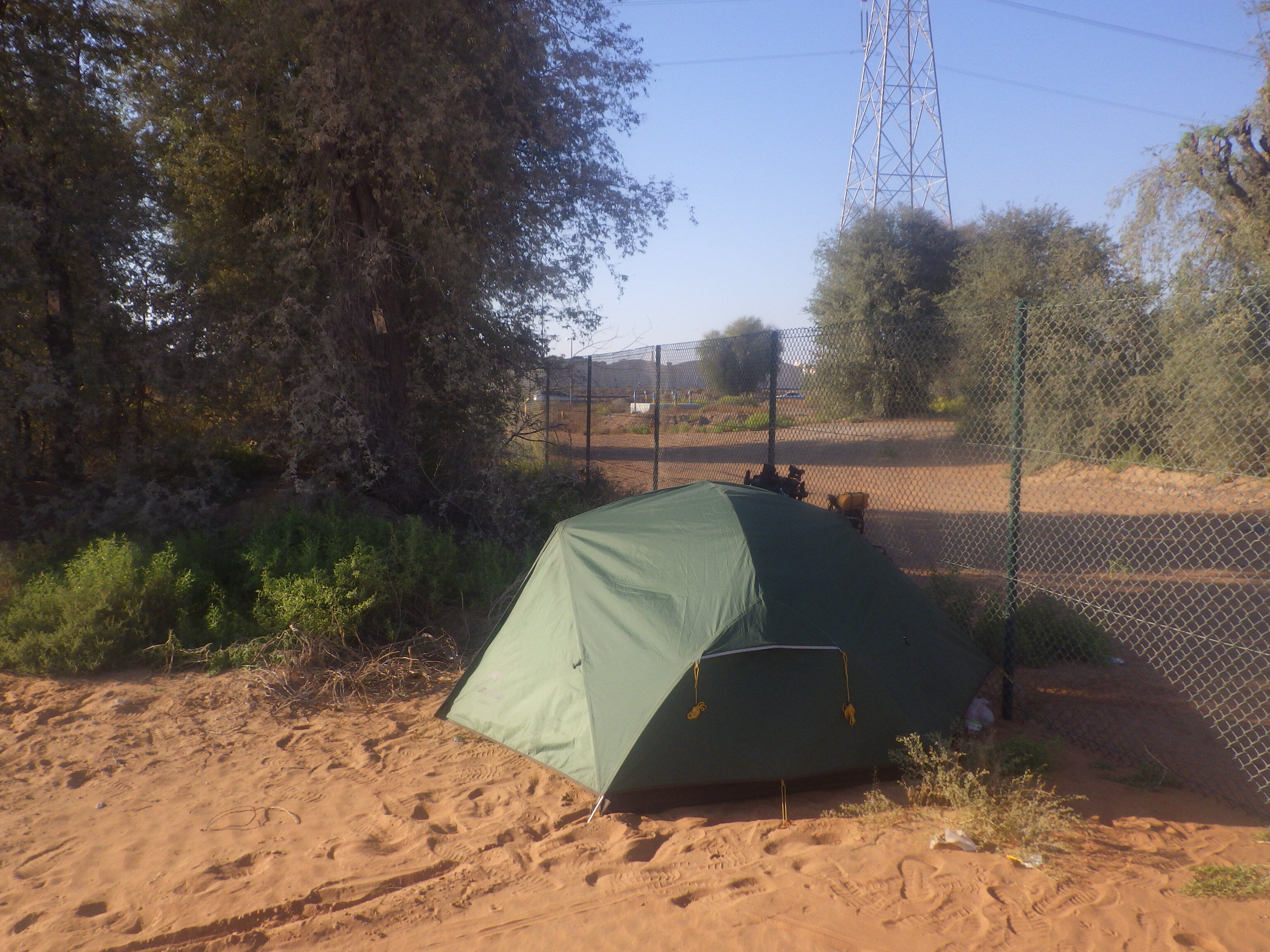 16時半の早いタイミングで出てきたモスクに寄って汗を流しそのまま集落の奥に広がってた棗椰子が立ち並ぶ林に突っ込み本日終了とした。17時ジャストにテント張るとその後のアレコレが余裕で気が楽だ。