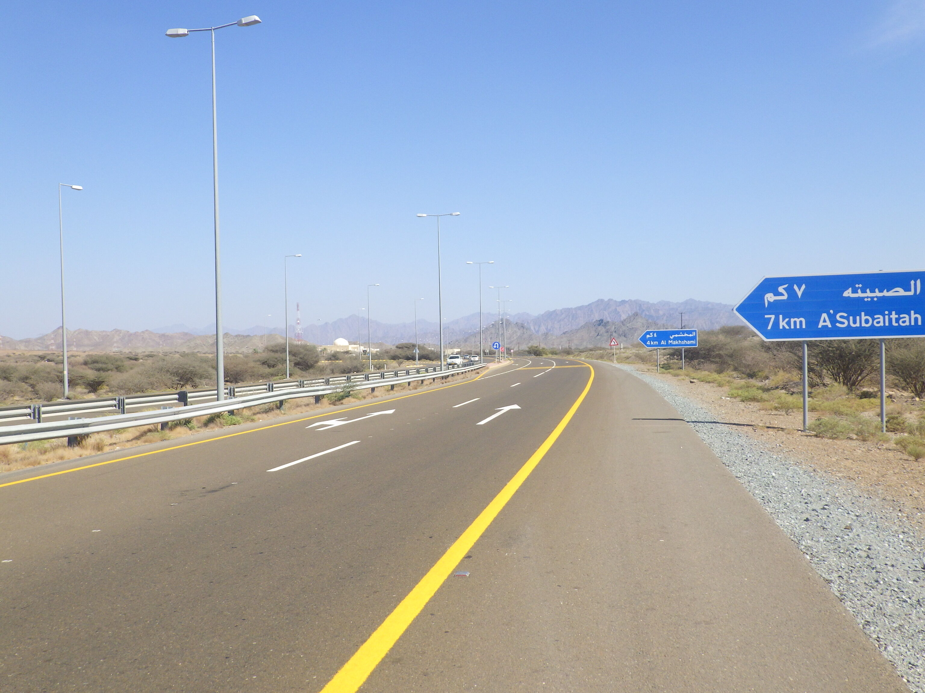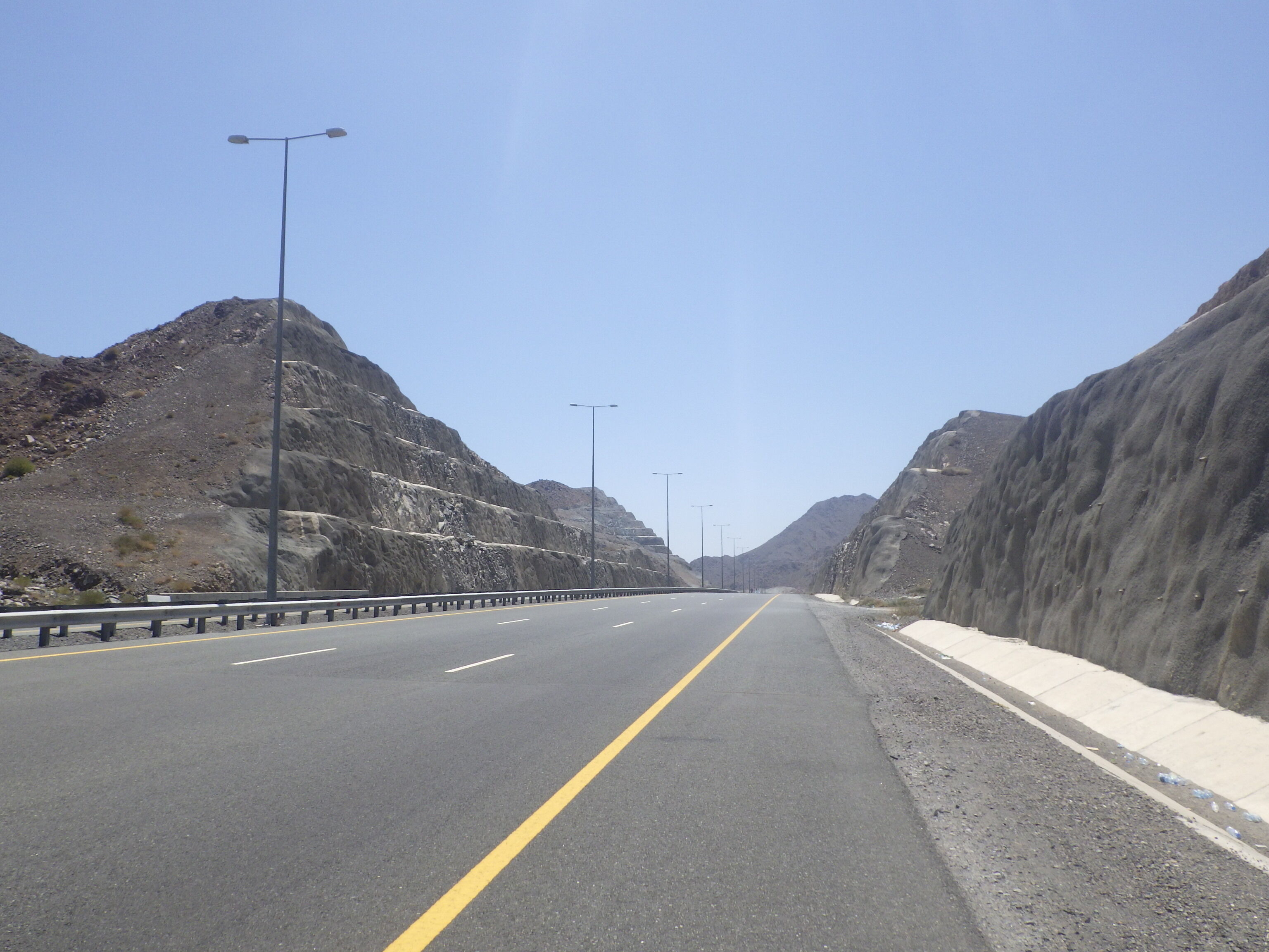 5kmほど走ってイミグレーションの職員に尋ねてみたが、予想通り「ここの国境は地元の人間しか通れないよ」と言われ「だから東端の国境に向かってね」と指示されるまでがワンセット。何でこんな面倒くさいルールにしたのだUAE&オマーンは。