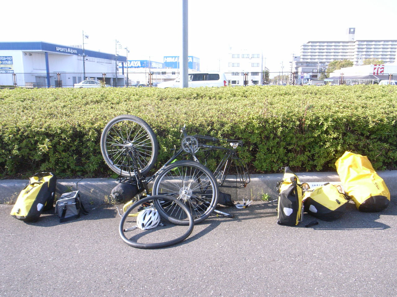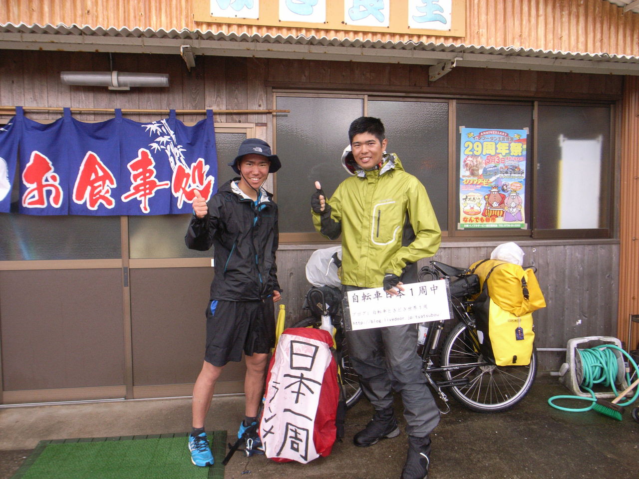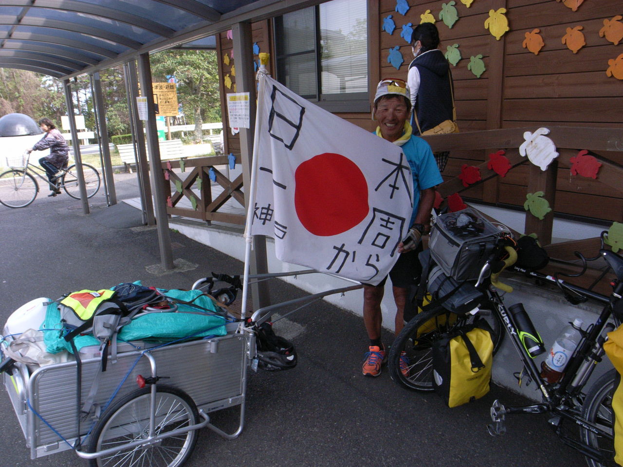 さて、どうにか駅に到着して待ち合わせの最中である。駅前の公園でバカでかい荷物背負った自転車なうえに「日本1周中」と看板背負ってるだけあって注目の的となったりする私であり、大変気持ちいいぞ。
