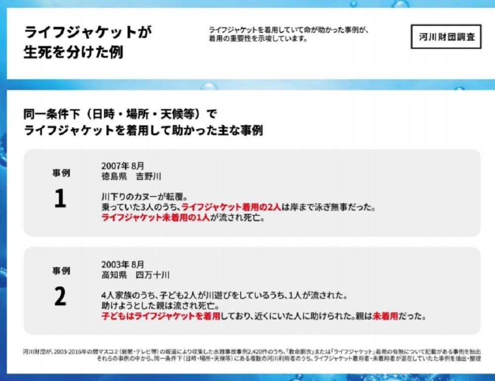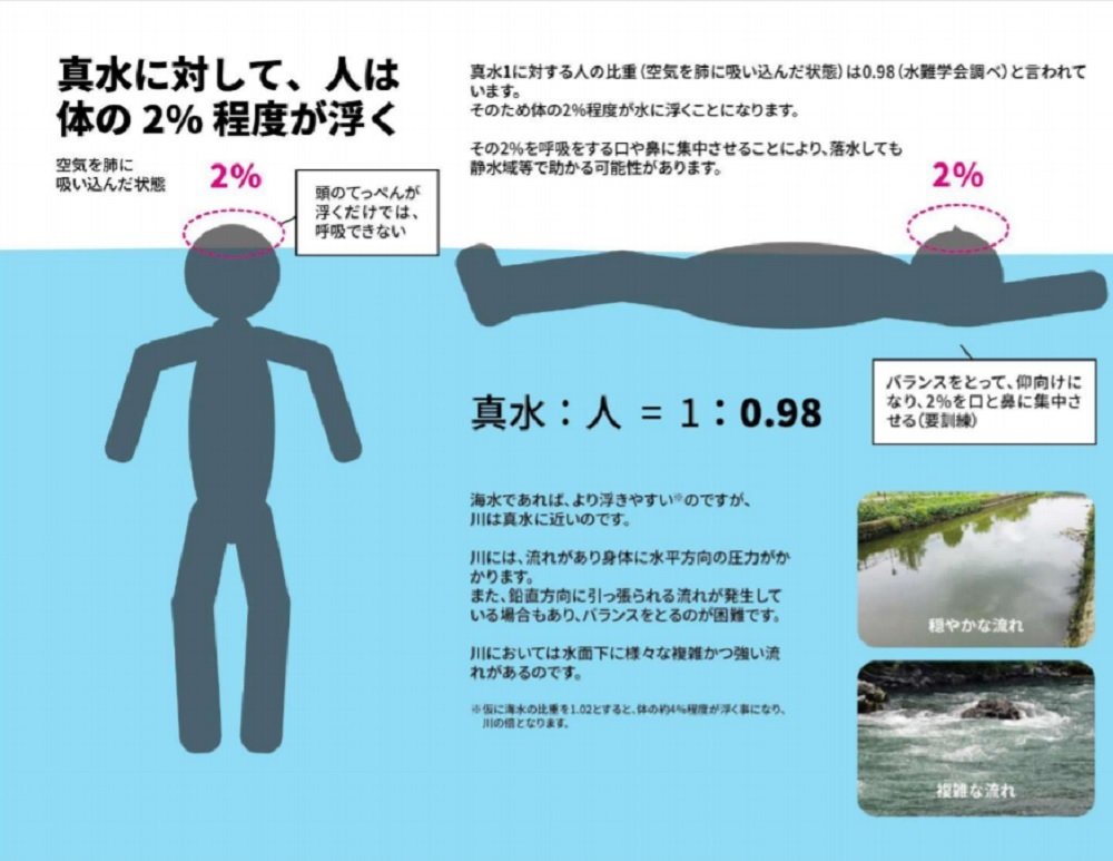 資料提供:河川財団人は真水に対して、体の2%程度しか浮かない