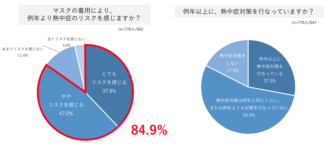 さらに「マスクの着用によって例年より熱中症のリスクを感じる」という人も84.9%と多くなっているが…