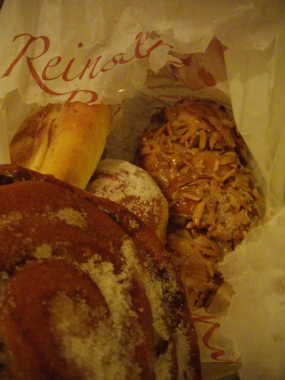 パン4つ(おいしい) 濡れたので包装紙が破れてしまった。破れない包装紙に入れたほうがよいとは思わないと、一応書いておく。同室の方に、好きなものを食べてくださいと伝えた。