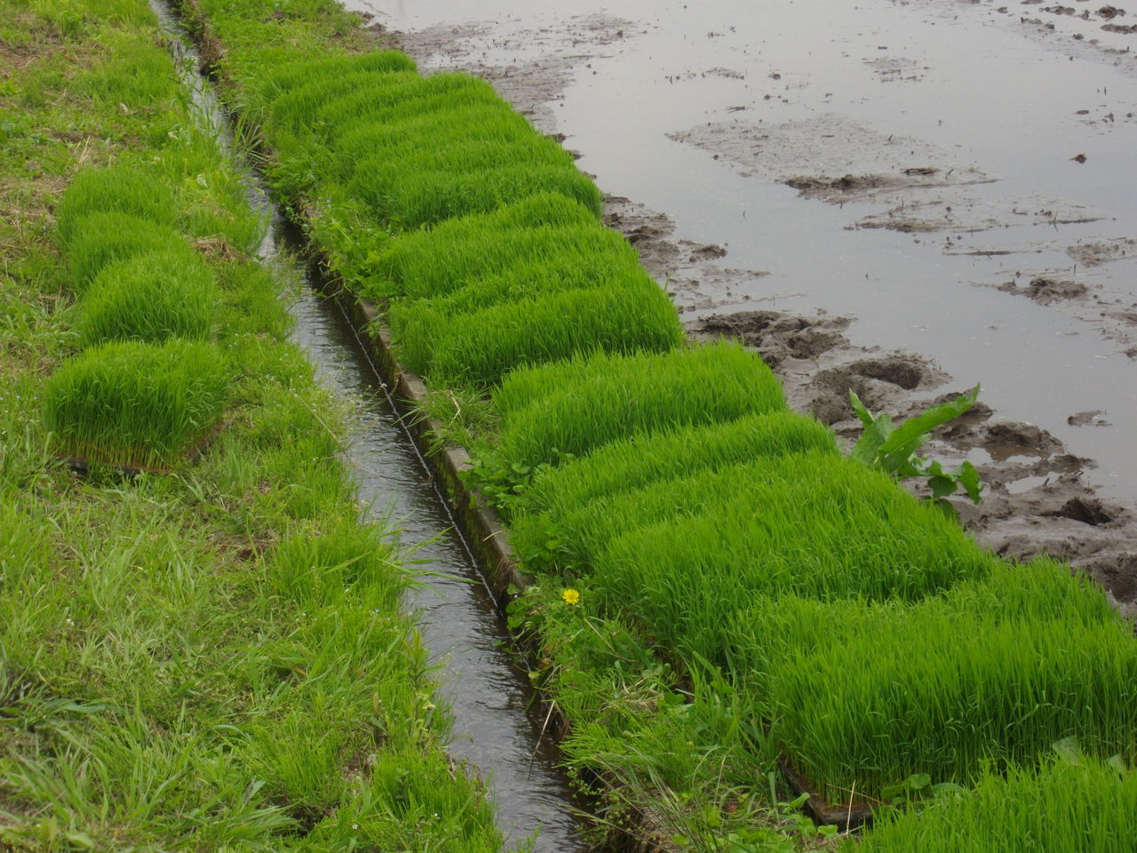 ・指でつまんで田植えをした稲が、手でつかめないほど成長していた。