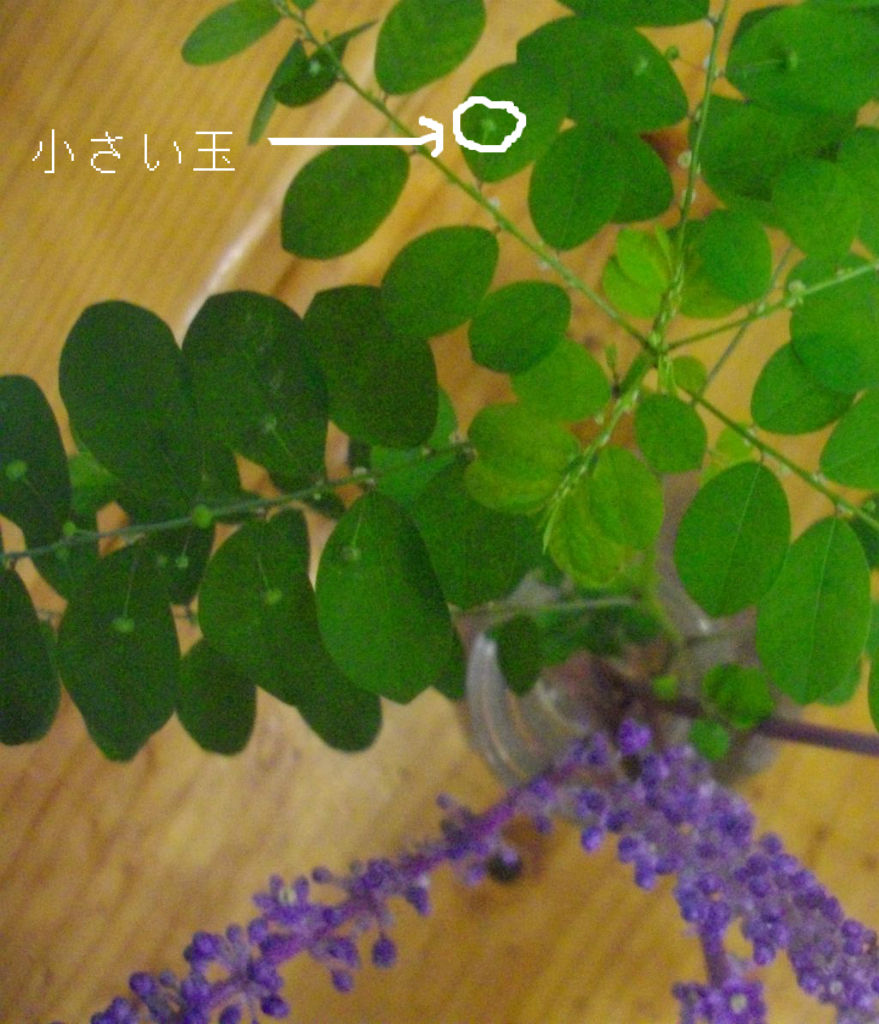 ろ の茎(くき)に小さい玉のようなものがついている。