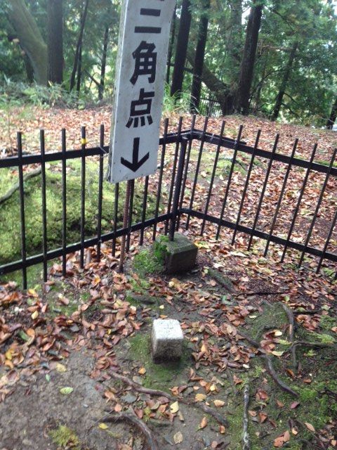 ↑三角点は境内の広場の角にあります