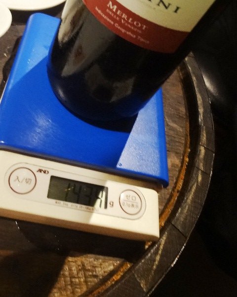どうやって飲んだ量を測るのかな、と思っていたら、なるほど。測りでボトルごと体重測定。開ける前のボトルの重さとの差分が飲んだ量ってことですね。