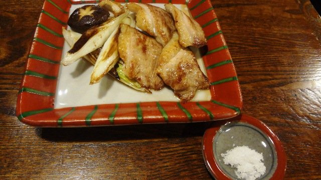 メニューにあいやきと鴨煮があって激しく悩みましたが、今回はあいやきを頂くことに。しっかりと焼いてあるのに柔らかい。お塩を少しだけ付けて頂くと噛むごとに鴨の旨味がじゅわっ、と口中に広がります。鴨好きにはたまりません。鴨煮は出汁ベースのたれで煮てあるのかな、そちらも気になる。今度は食べ比べもいいかも。
