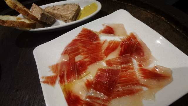 パエリアや、スペインのピザであるコカも種類豊富。パエリア焼きおにぎり!なんていうメニューもあったけれど、私達はお蕎麦屋帰りだったので控えめに生ハムとパテのみ注文。