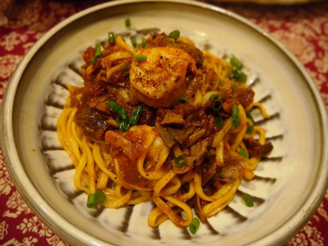 天使海老の頭をトマトソースと一緒にソテーして香りを移し、さらにポルチーニも入れて。食べる直前に天使海老のボディーもプラス。ぷりっぷりの海老っぷりに母もご満悦。美味しいを連発してくれました。