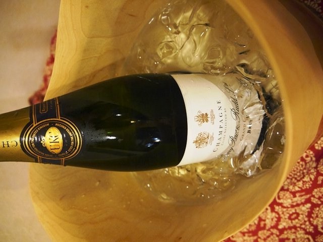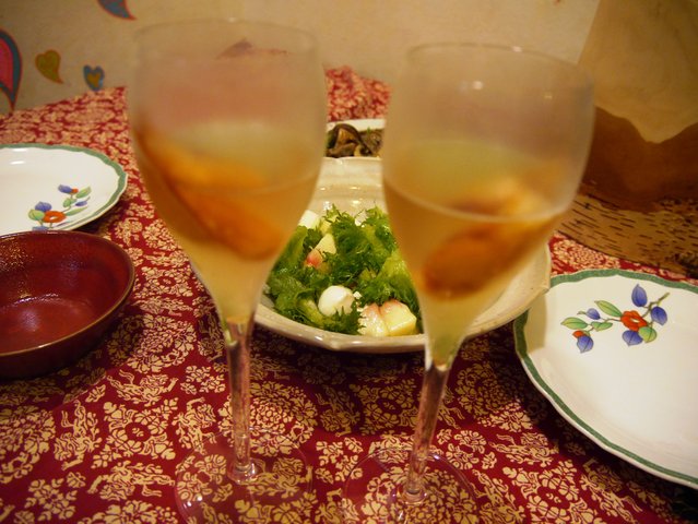 乾杯は安心院で買ったスパークリング♪同じ場所で母が買ったワイングラスもさっそく活躍。