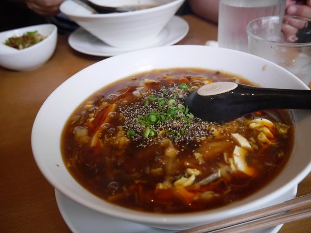 私は黒酢胡椒酸辣湯麺を頂きました。濃厚で黒胡椒が効いています。飲みたくなる味だけど車なので我慢。