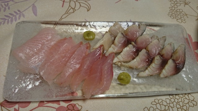素直にカンパチのお刺身と〆鯖。〆鯖はだいぶ酢が回ってしまっていたが、カンパチはぷりっぷり♪美味しい!と思わず声の出る、程よい脂の乗りと食感と甘味。