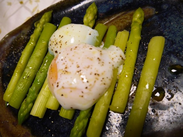 茹でアスパラの温玉乗せ。