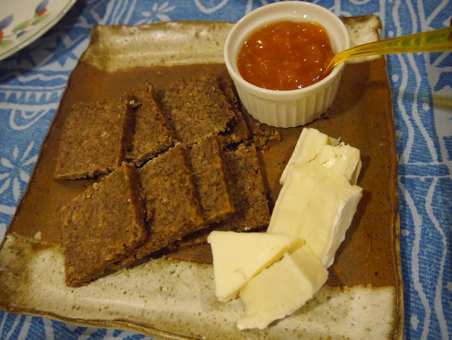 友人夫妻の奥様、mayugebaさんが持ってきてくれた、カマンベールとドイツのグレインブレッドと、そして自家製の杏ジャム。これらをすべて一緒に食べるととっても美味しいチーズケーキの味に。