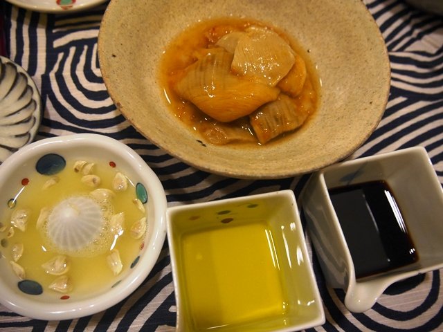 母の大好きなホヤ!10年ぶり以上らしく、感激してくれました。良かった。やっぱりオリーブオイルとかぼすが合う。