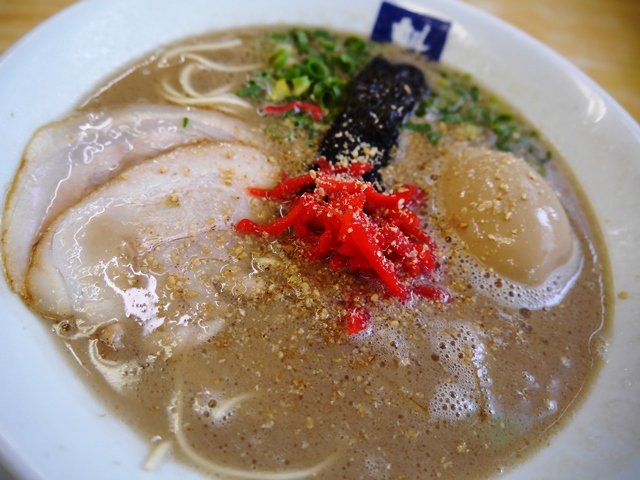 私はどちらかというと白い、長浜の豚骨の方が好きなのですが、福岡空港の豚骨ラーメン屋さんは好みに合わん!のです。ここは久留米スタイルなのかな、しっかり豚骨ですが旨みもフレグランスも(笑)濃い。心していただきました。